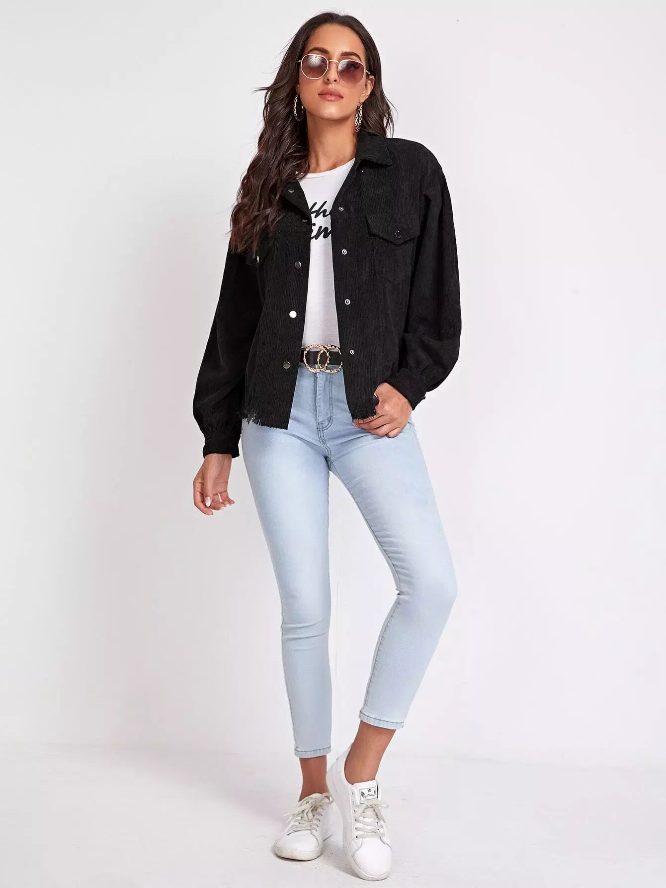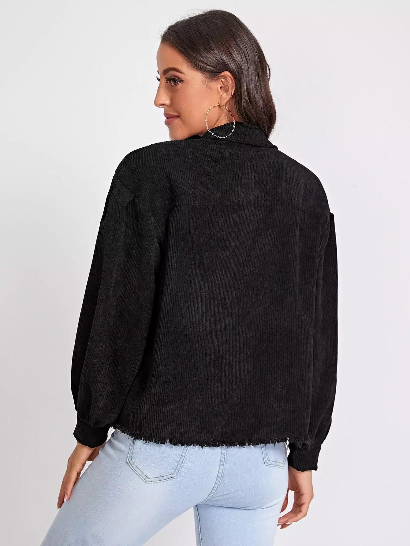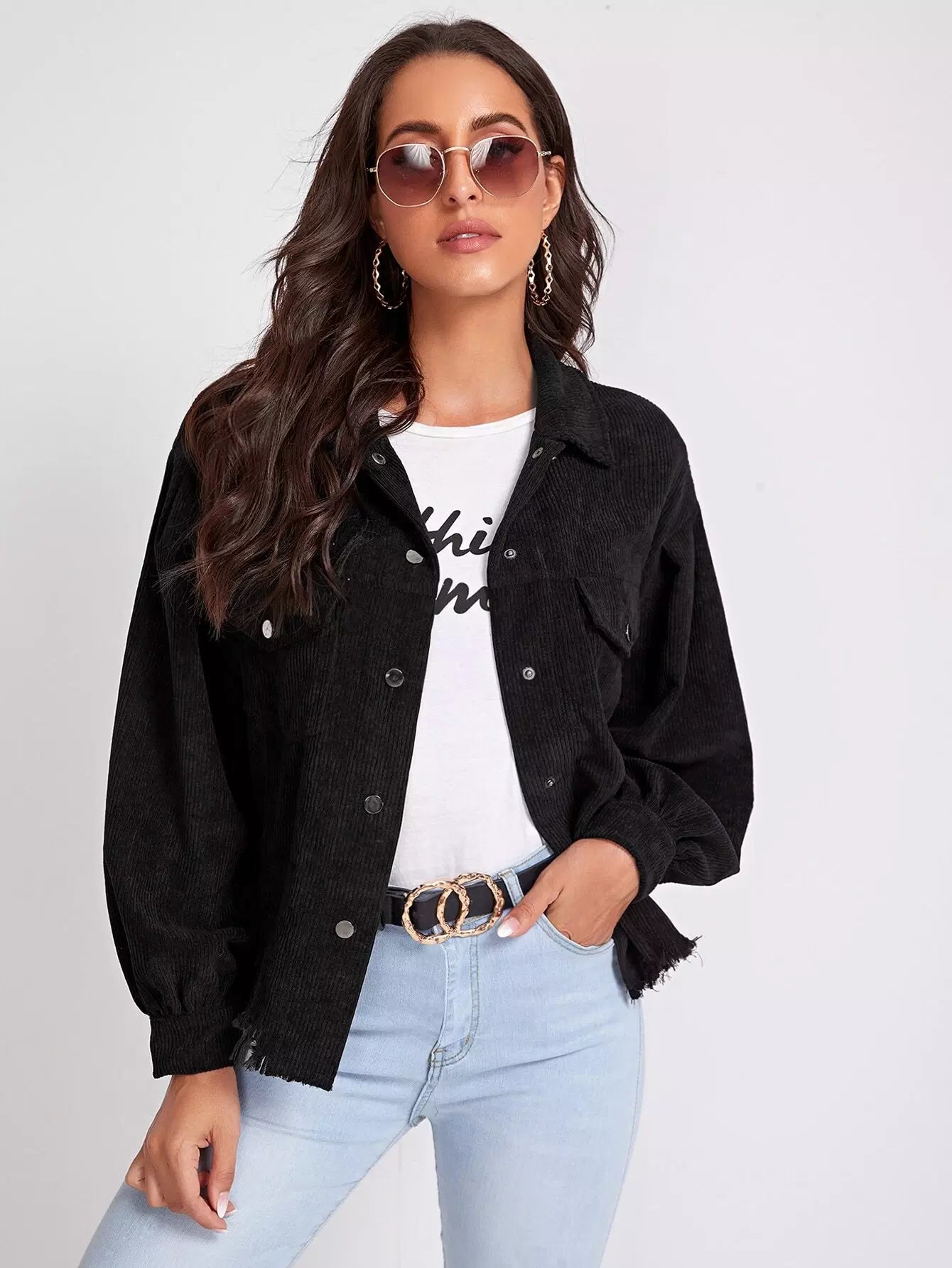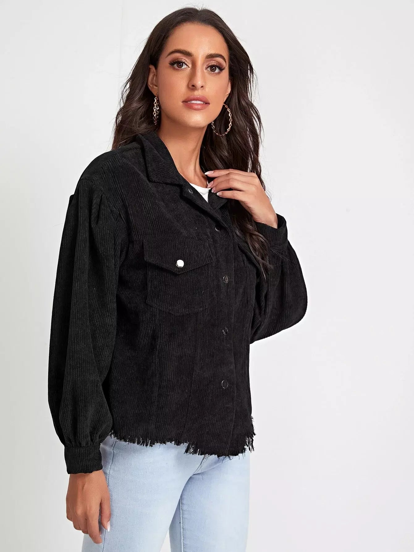 جاكيت كوردري بحواف مهدبة بجيب أمامي بغطاء من الأمام