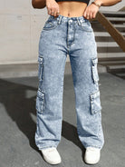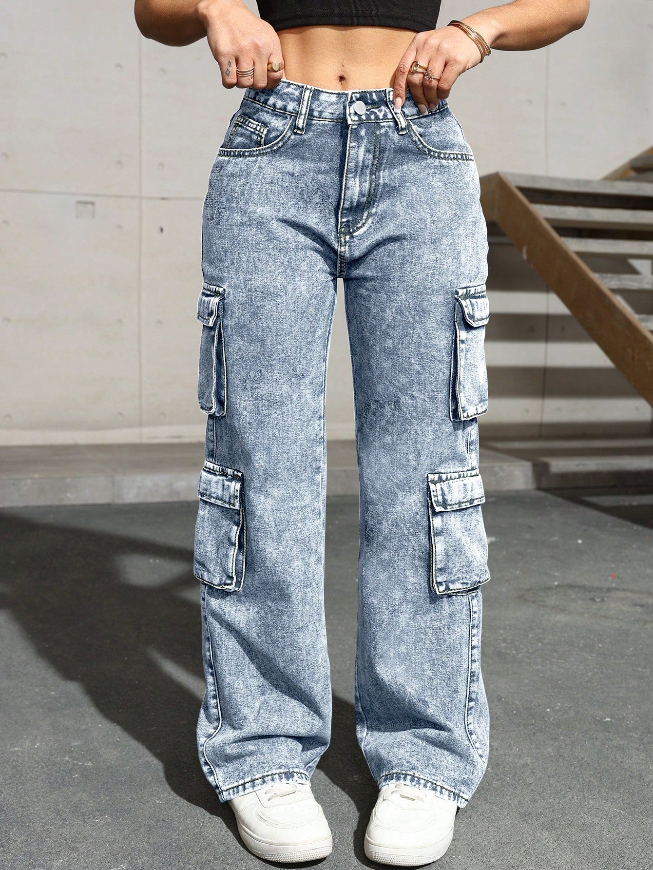 بنطال جينز كارغو جانبي بجيب قلاب، تصميم بسيط وعصري مناسب للإطلالات اليومية غير الرسمية