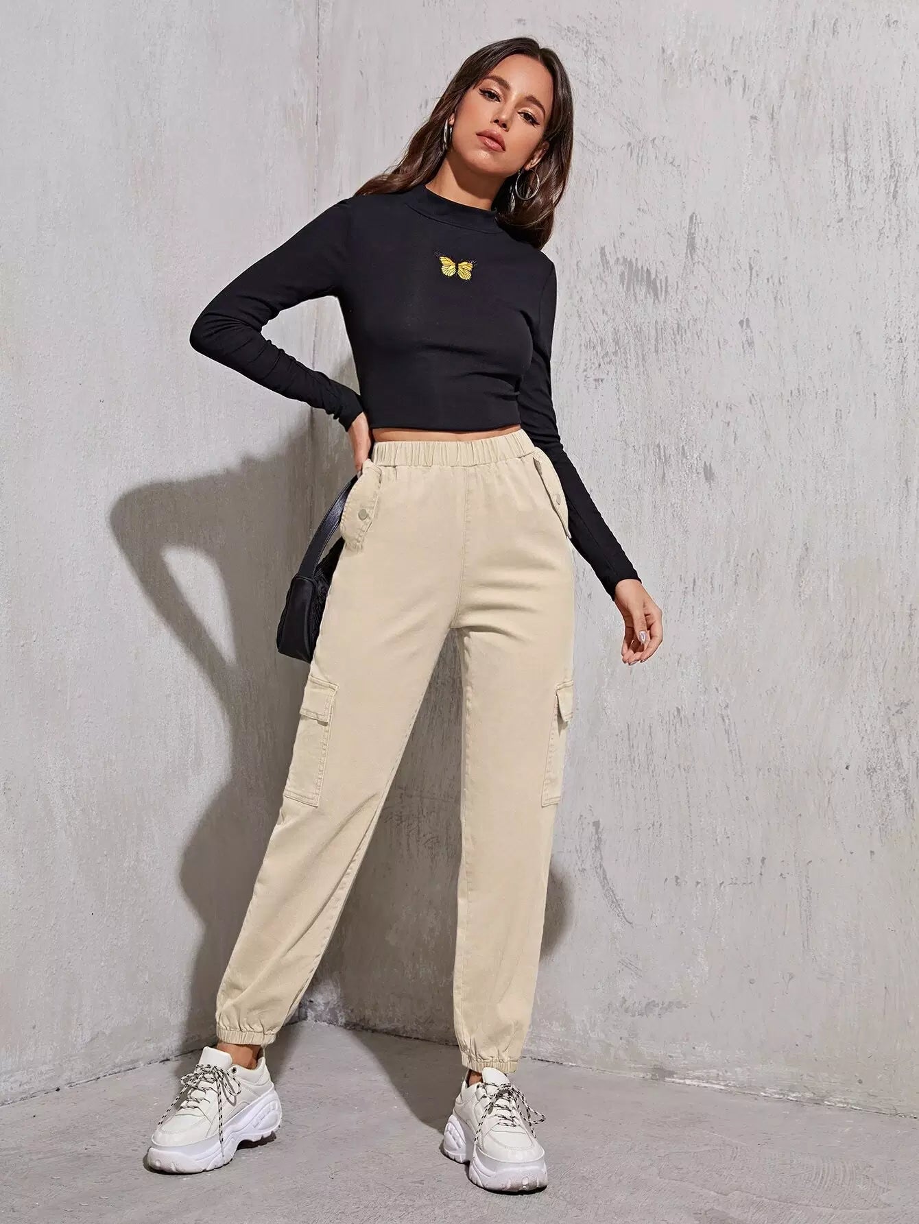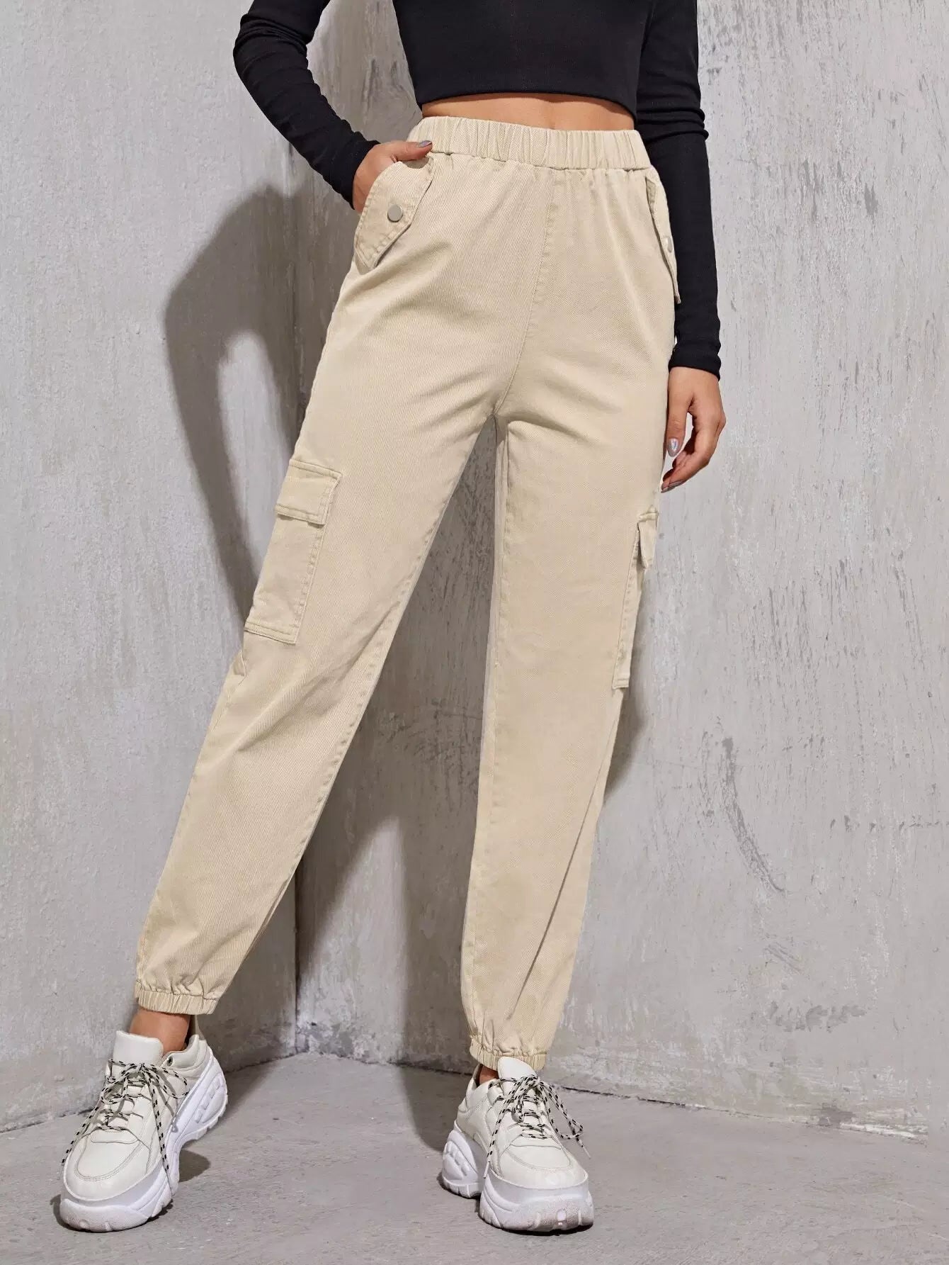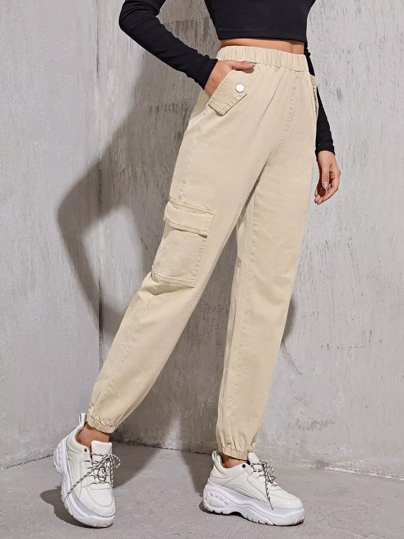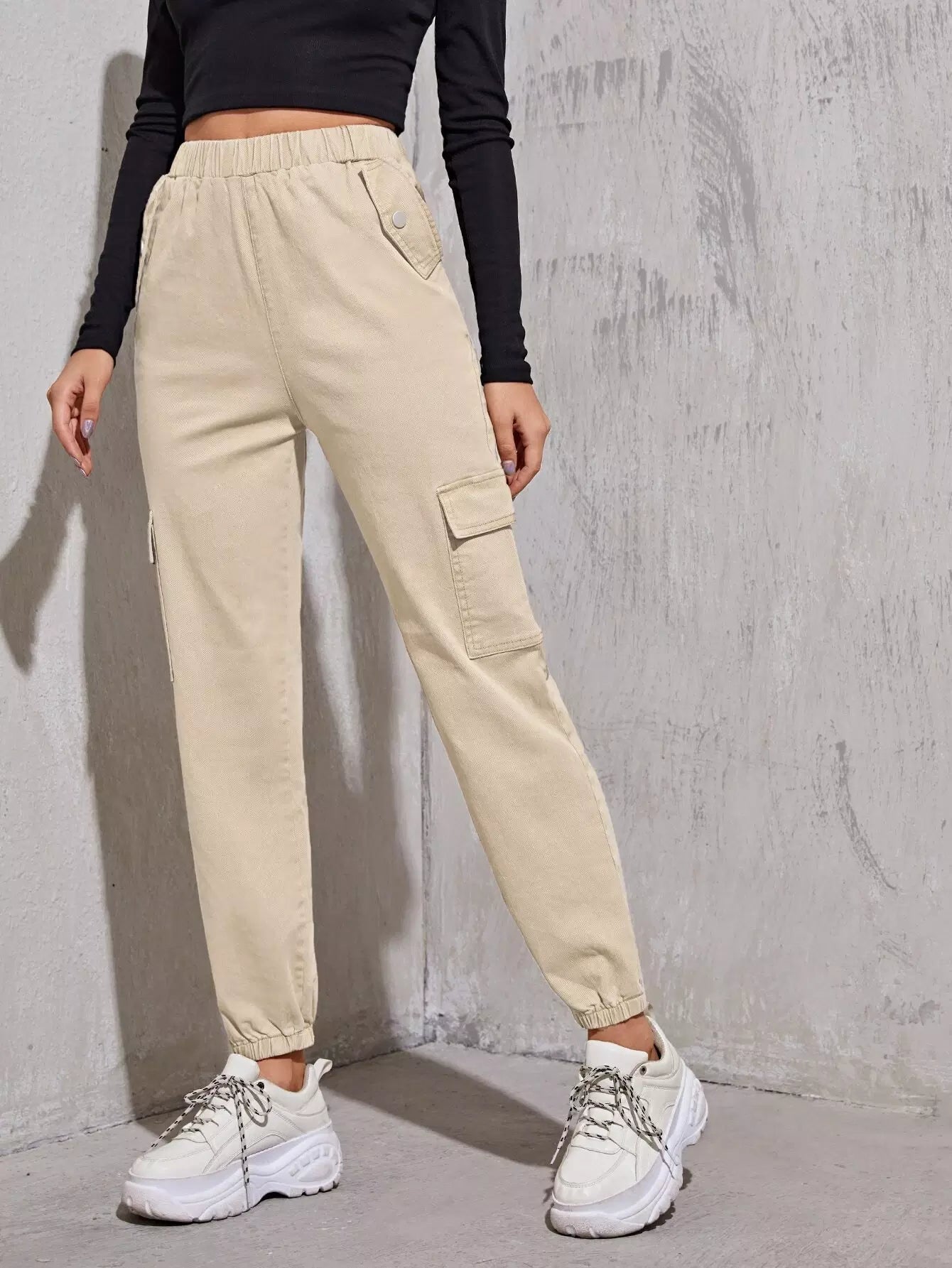 بنطال جينز جينز سادة بجيب بغطاء قلاب سادة