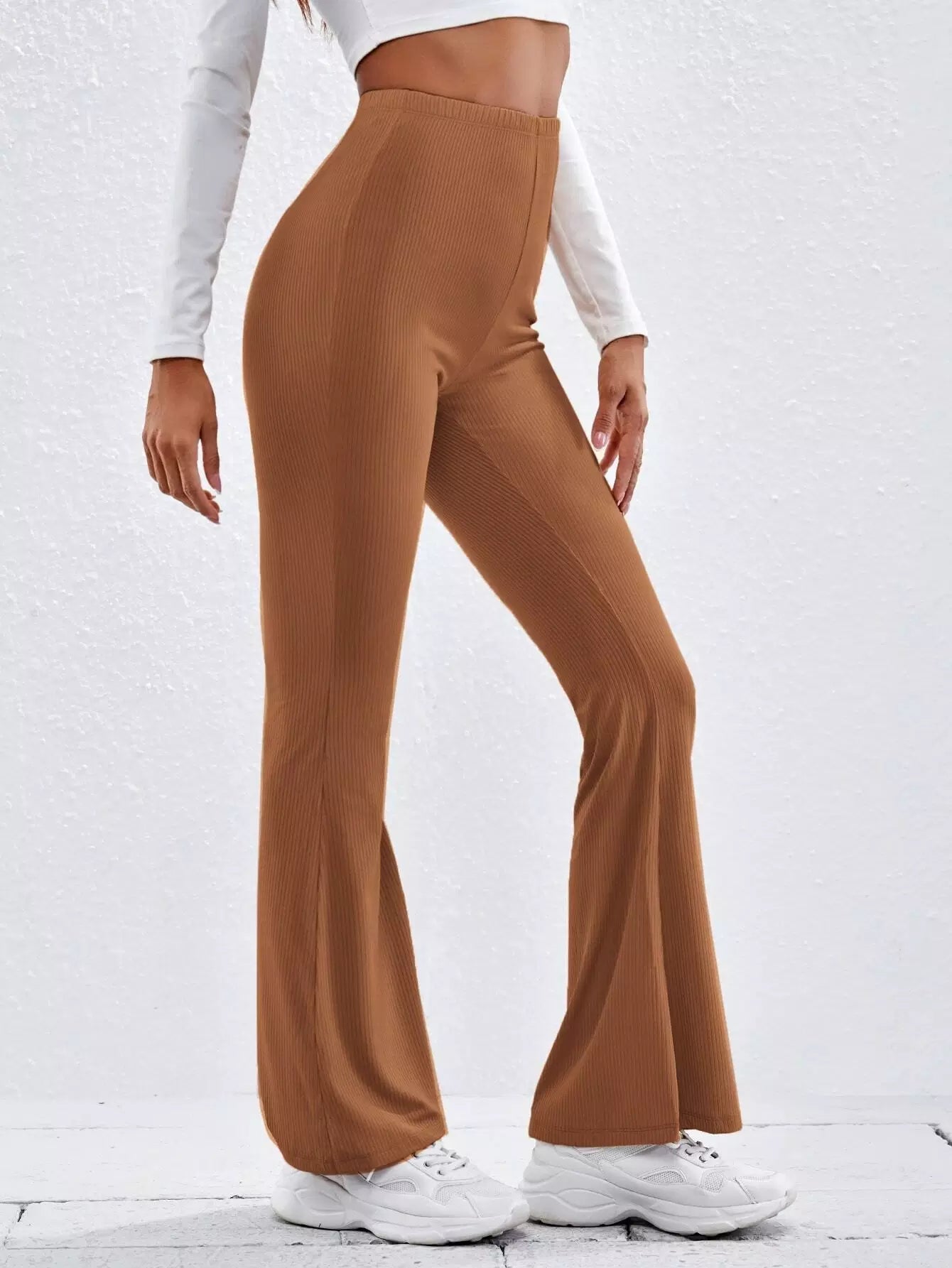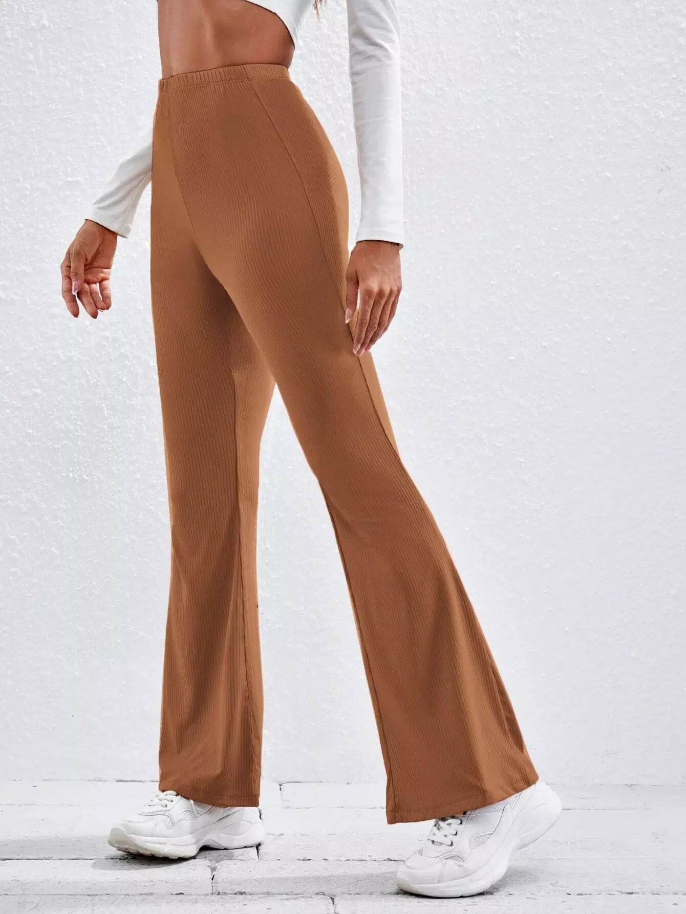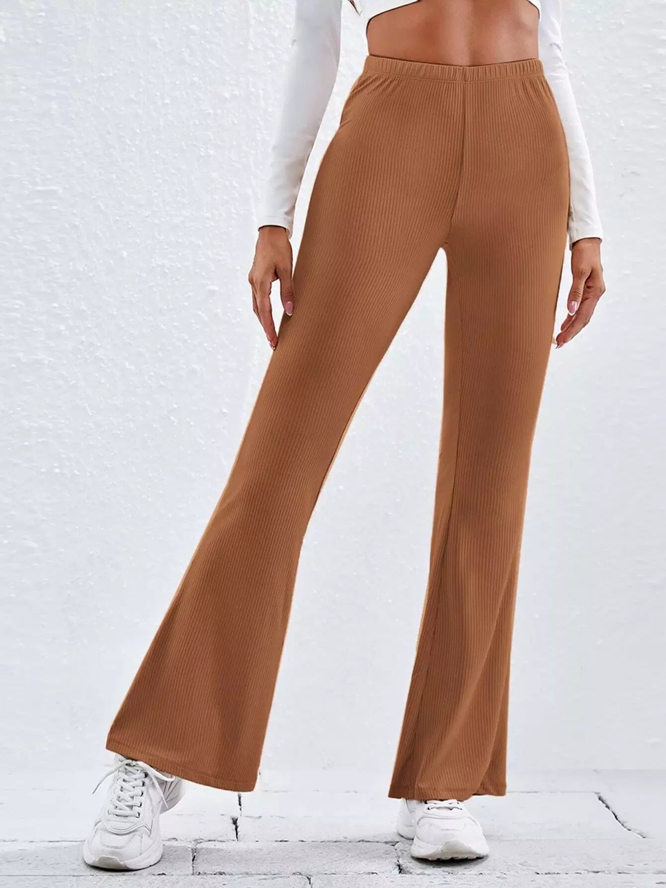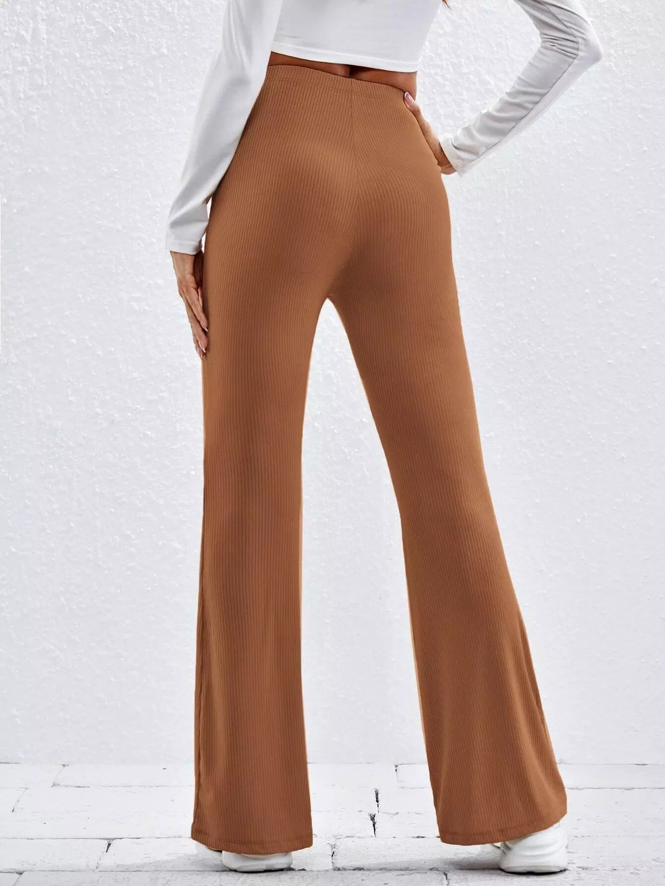 بنطلون واسع الساقين محبوك على شكل ضلع محبوك