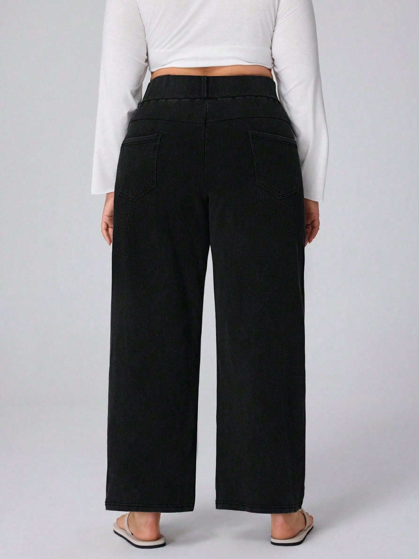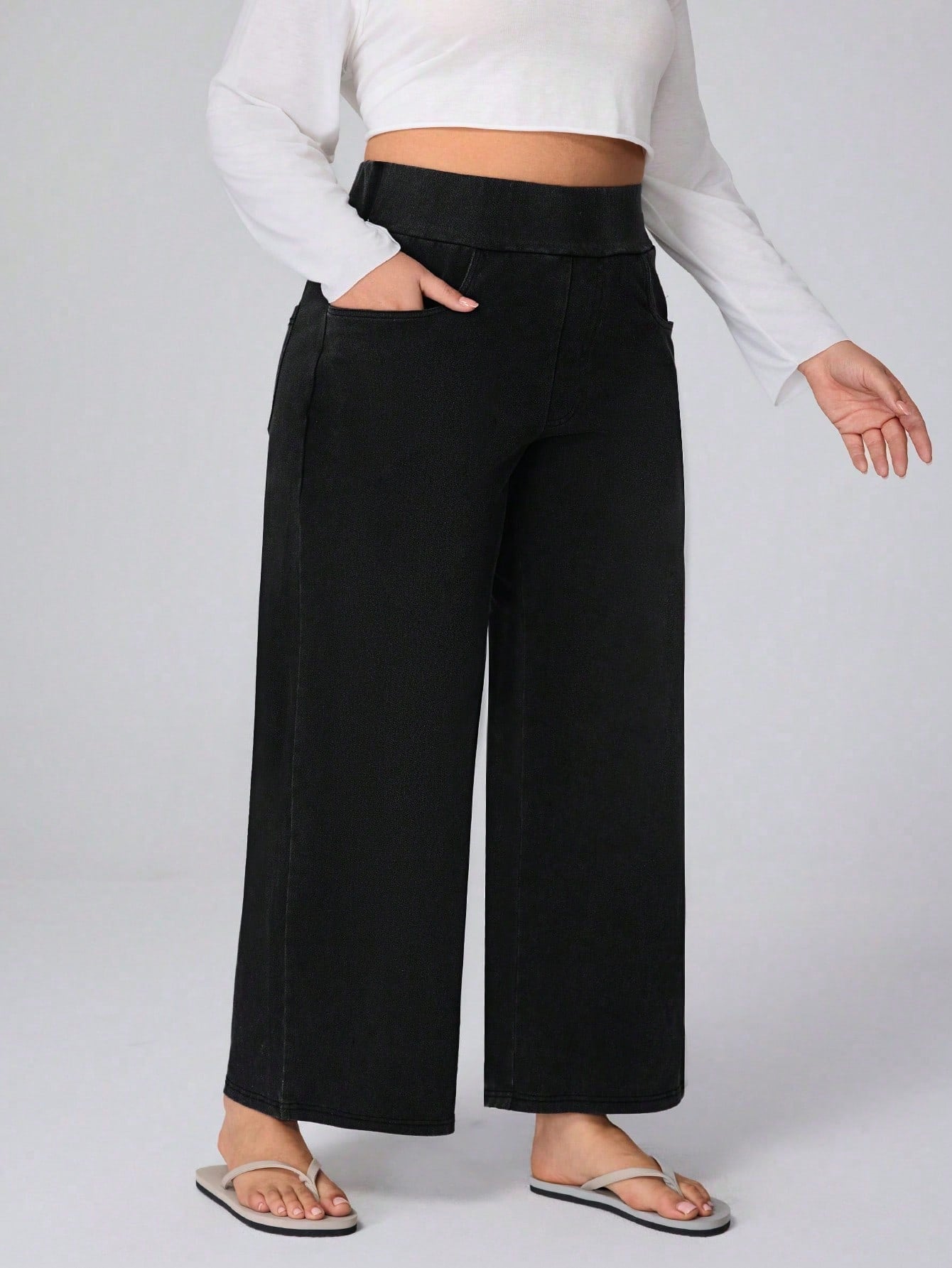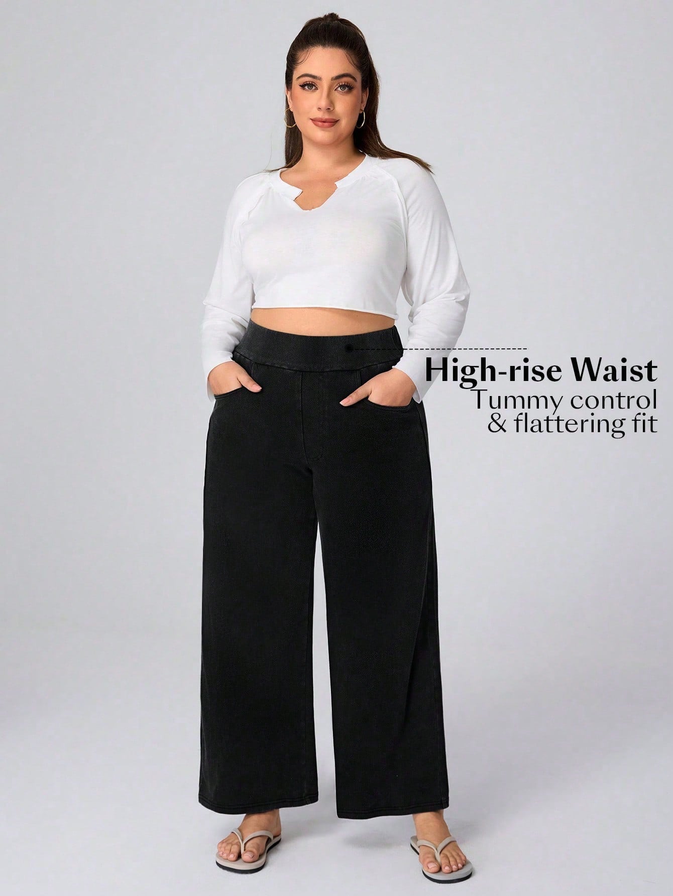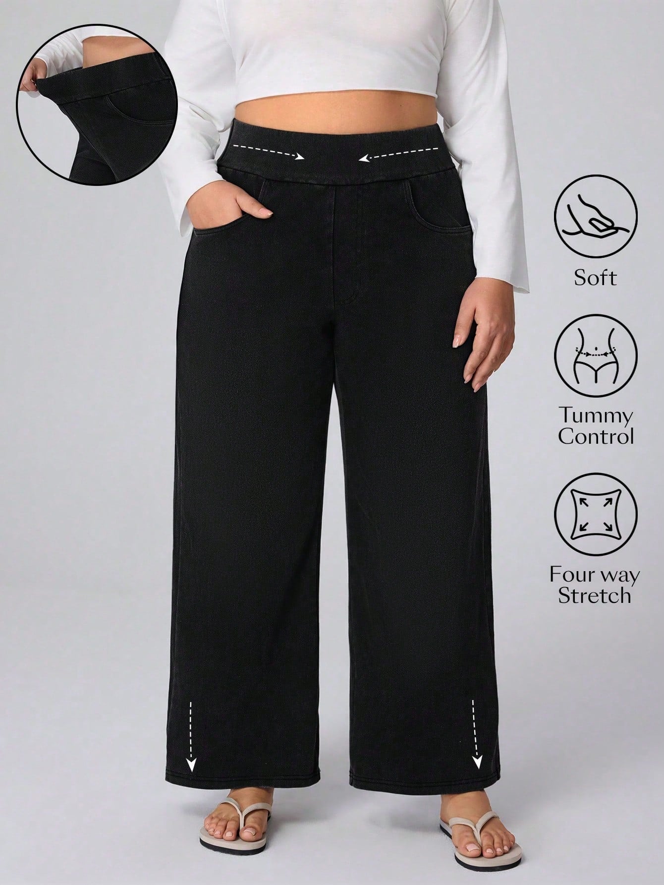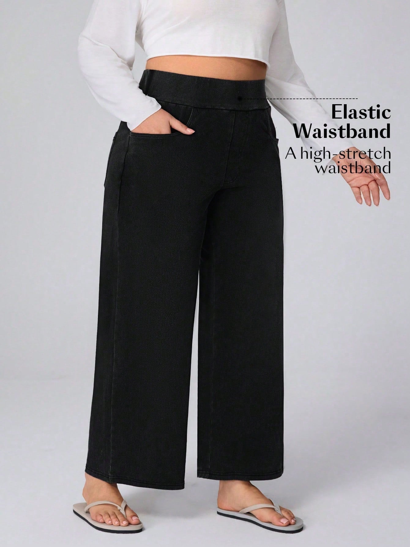 بنطلون جينز واسع الساق من قماش التريكو عالي المرونة من Flexra Plus Size، بنطلون بوي فريند من Cosy Joli Plus Size
