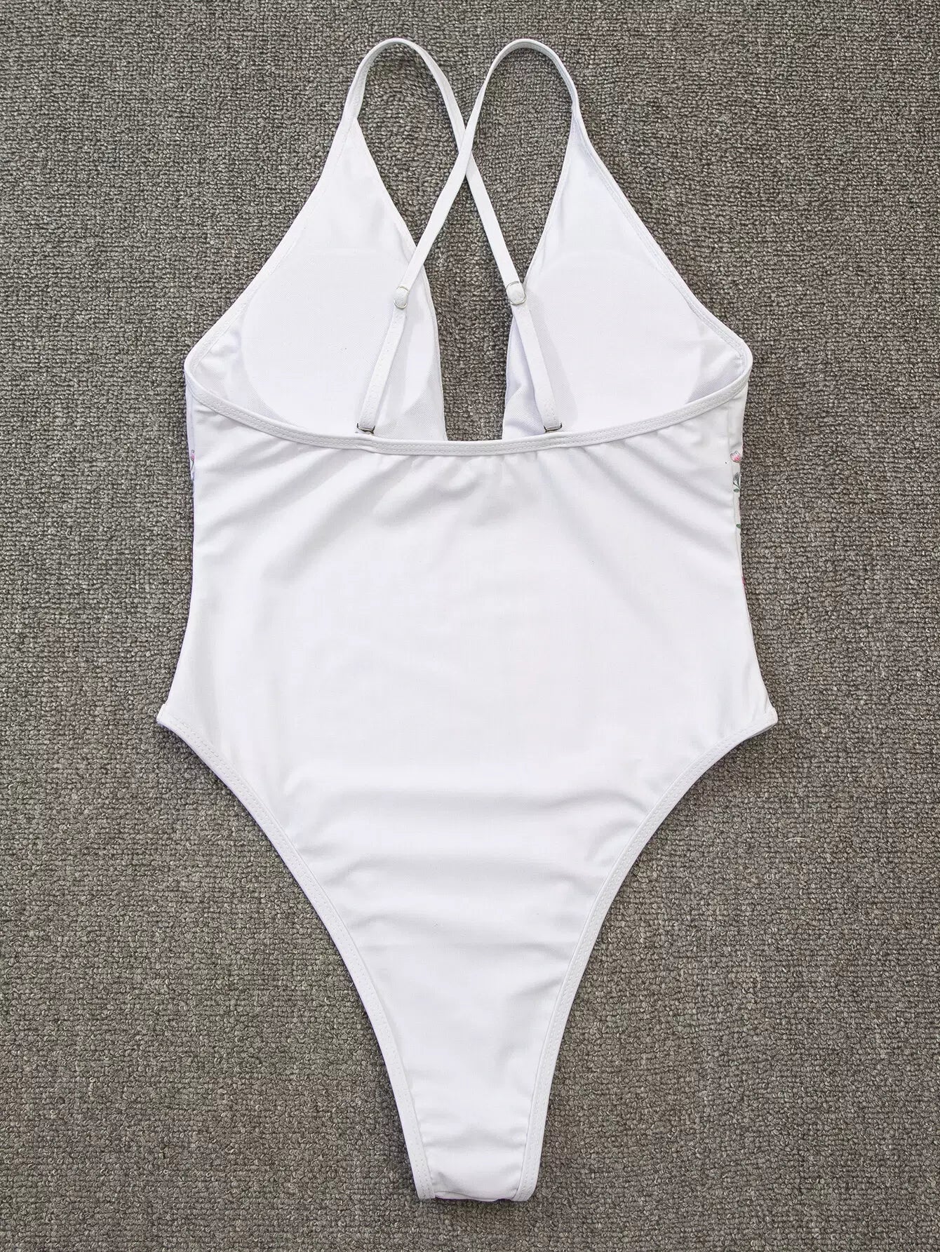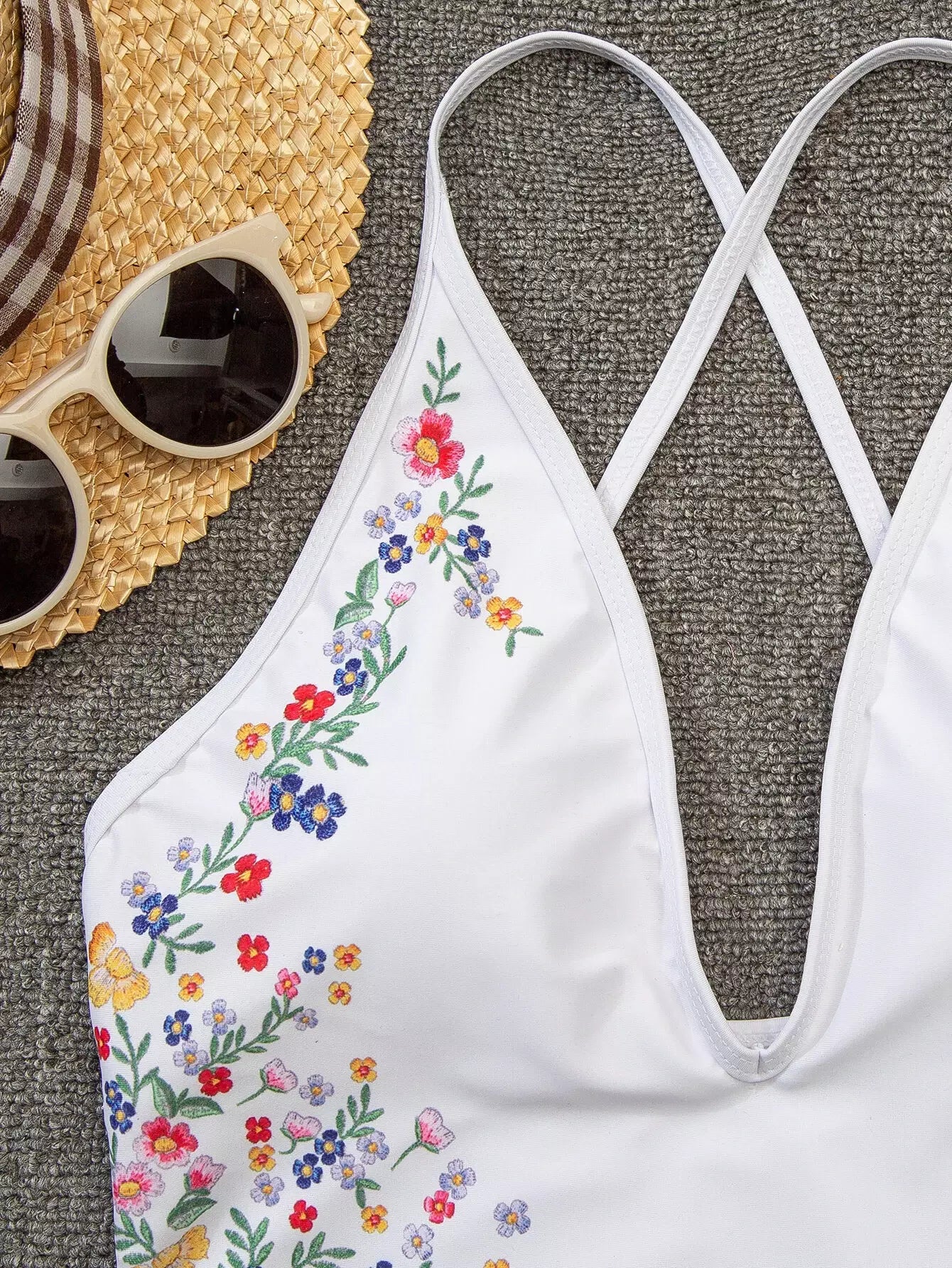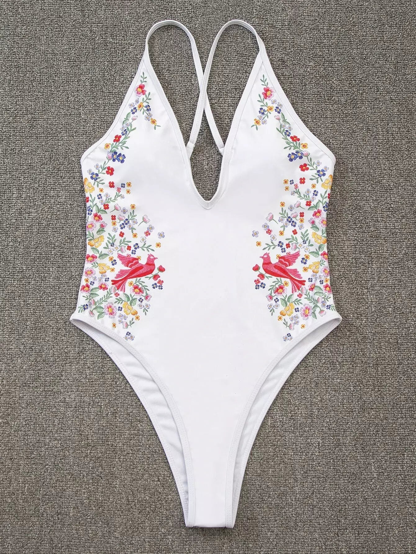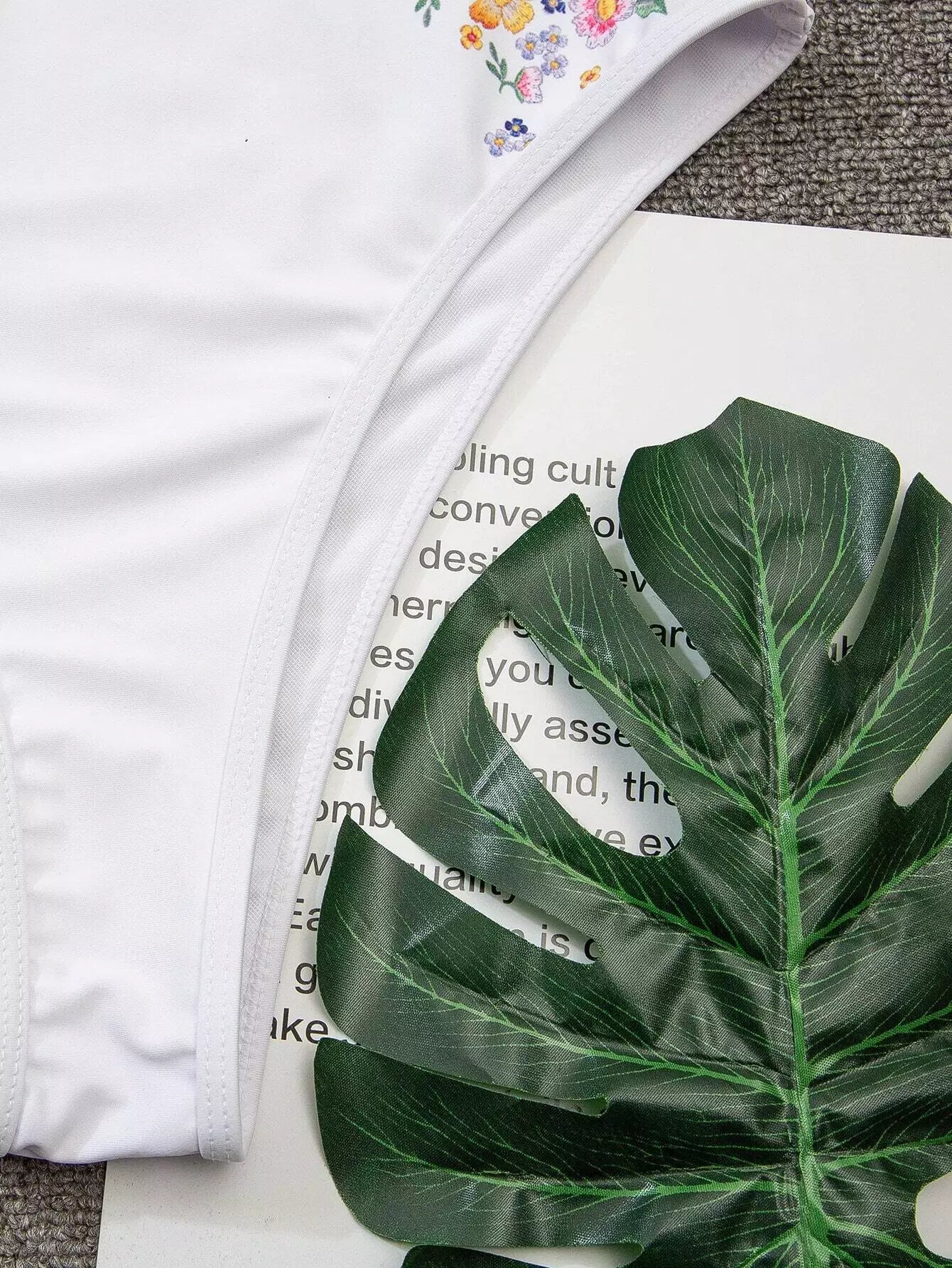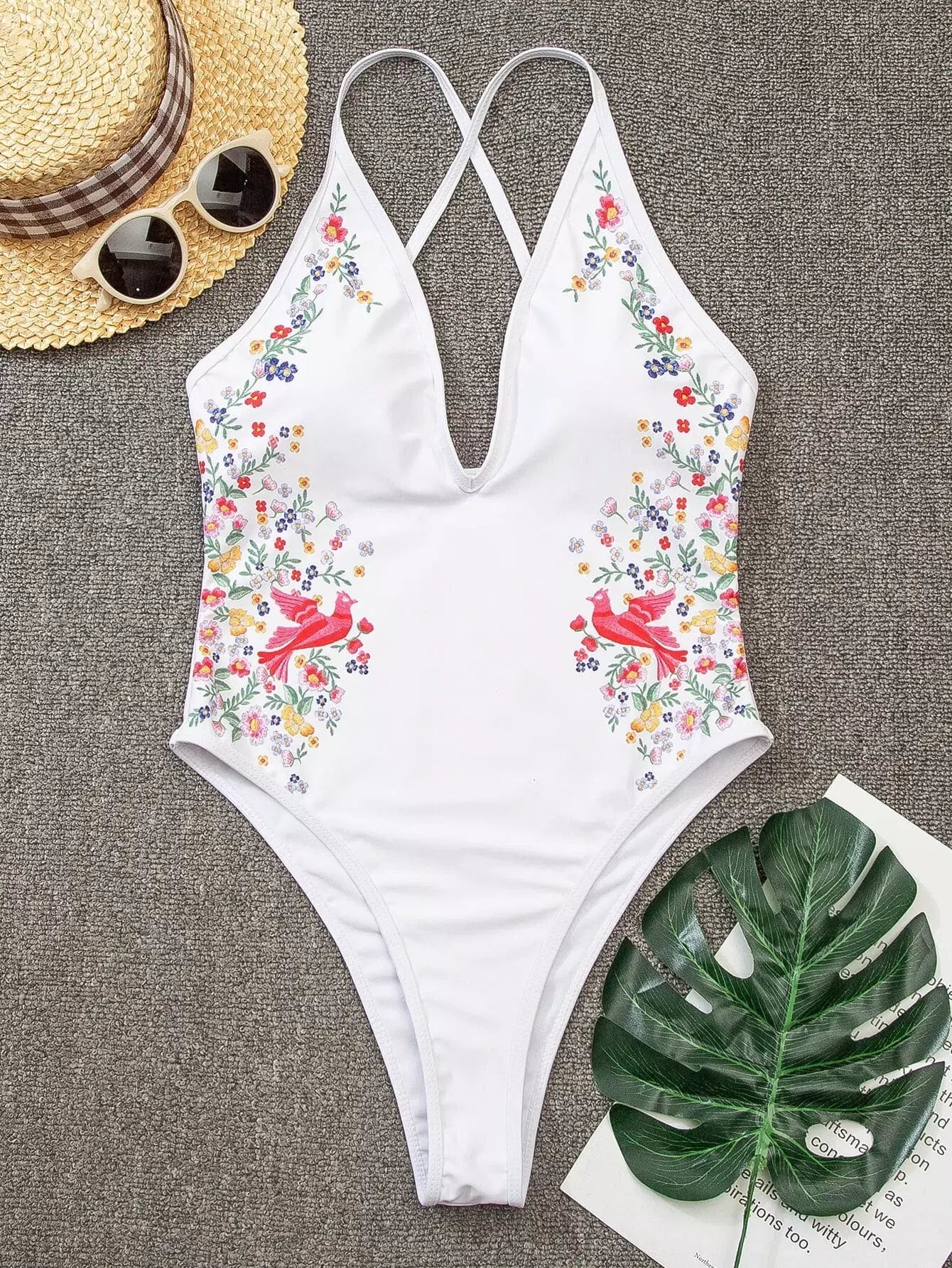 بدلة سباحة بقطعة واحدة بطبعة زهور وطيور متقاطعة