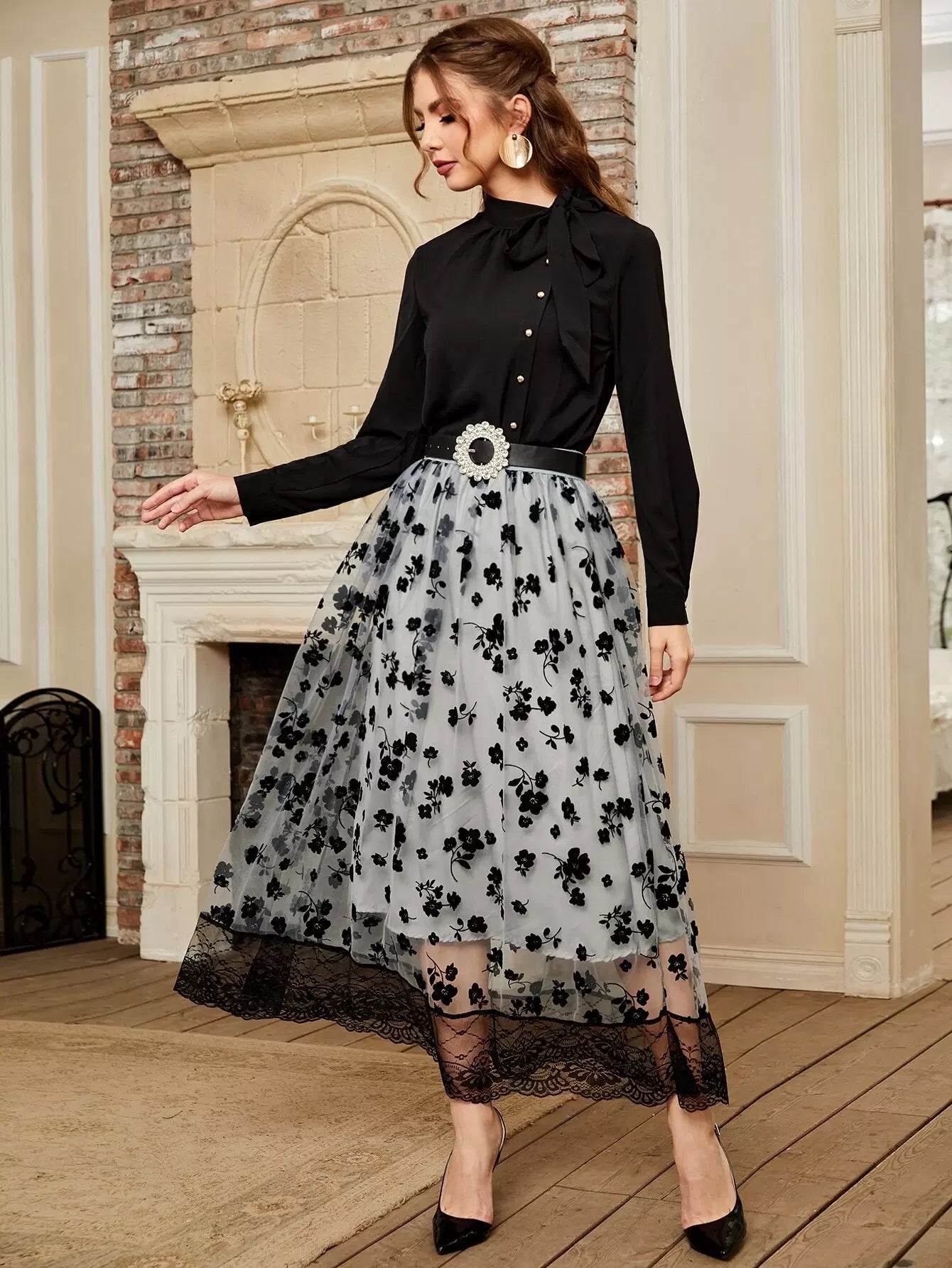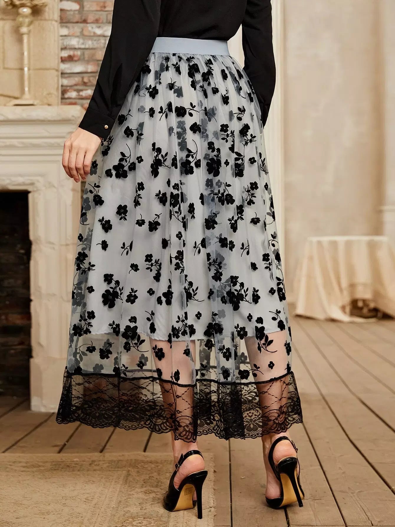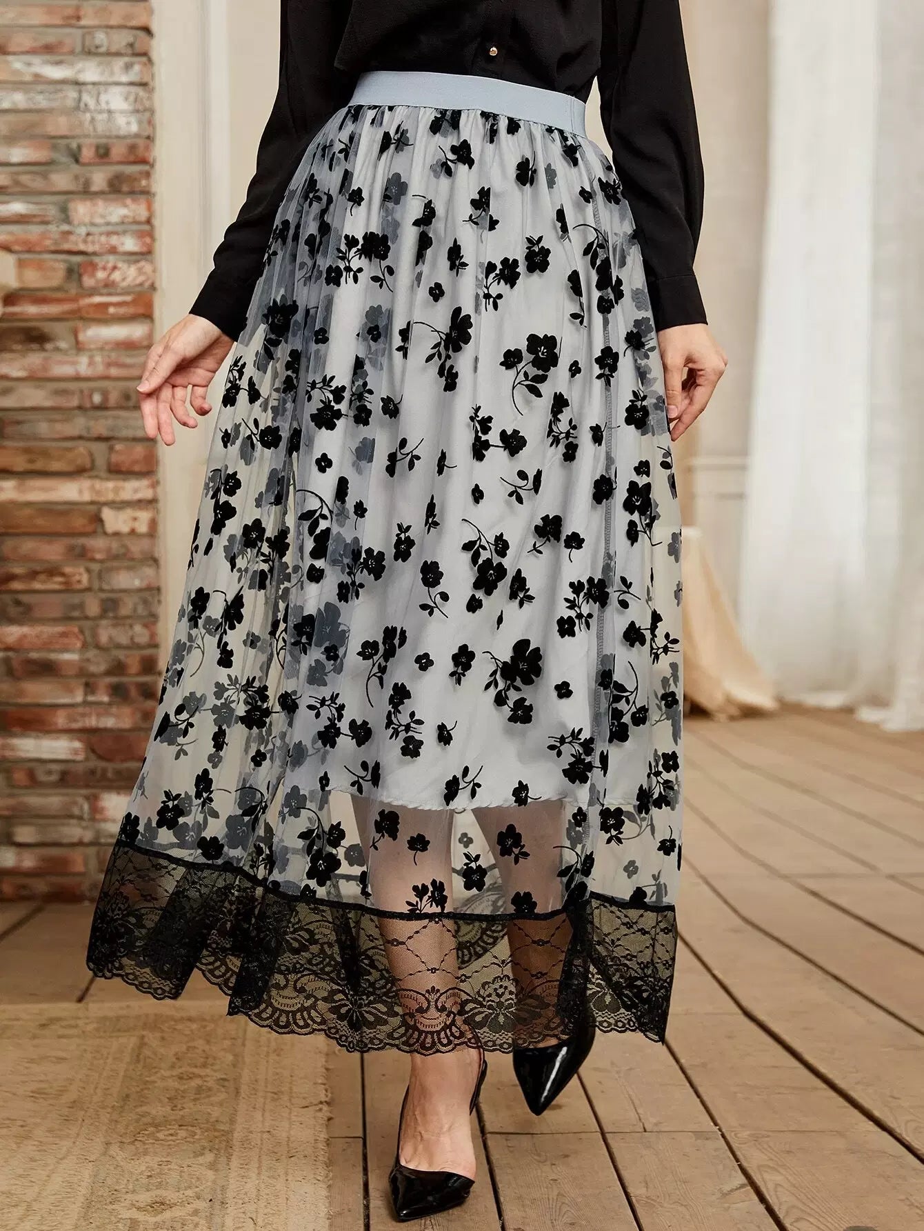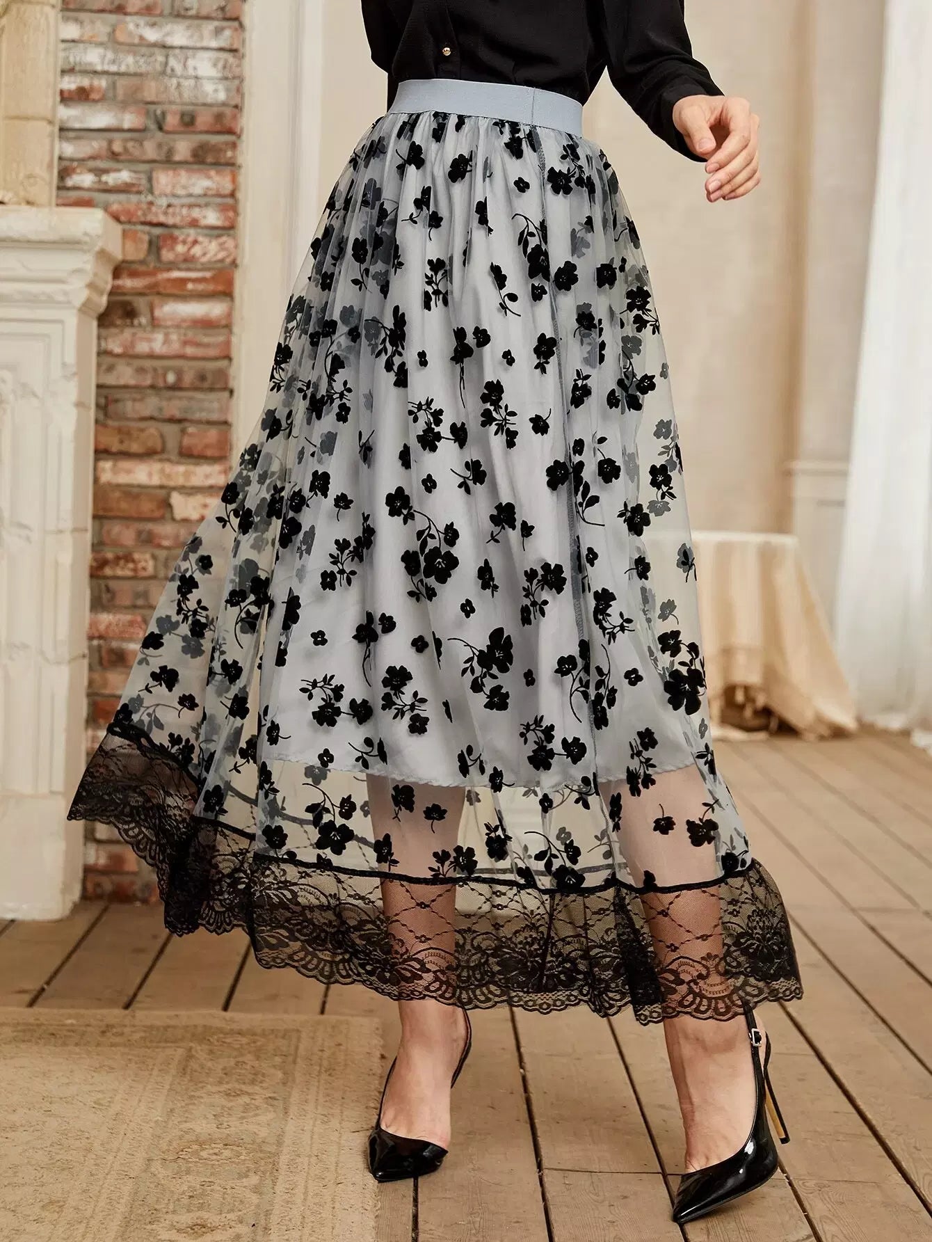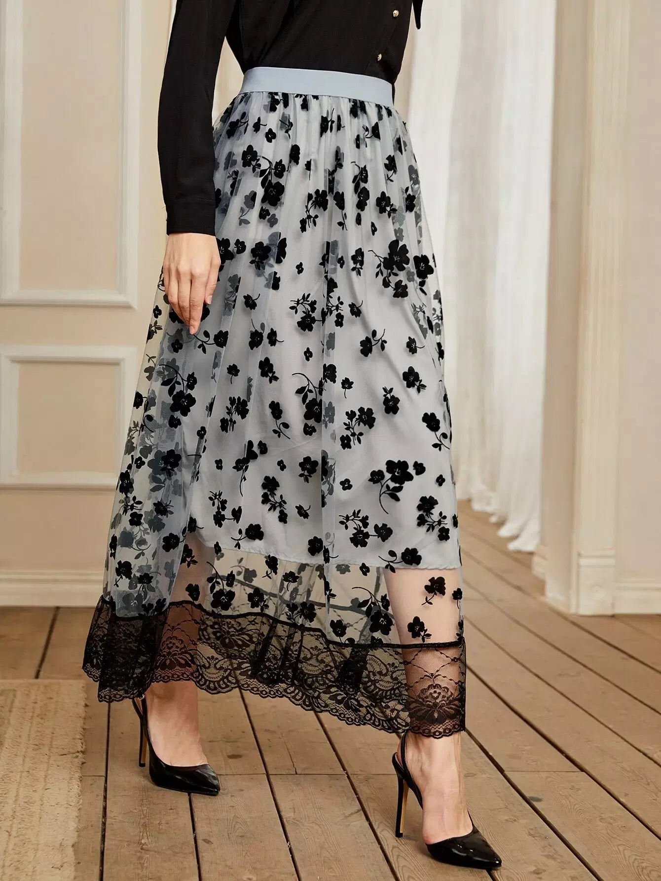 تنورة دانتيل بحاشية دانتيل على شكل حرف A متباين