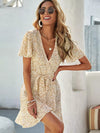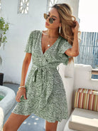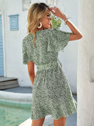فستان ملفوف بأكمام رفرفة مزهّرة بدون حزام