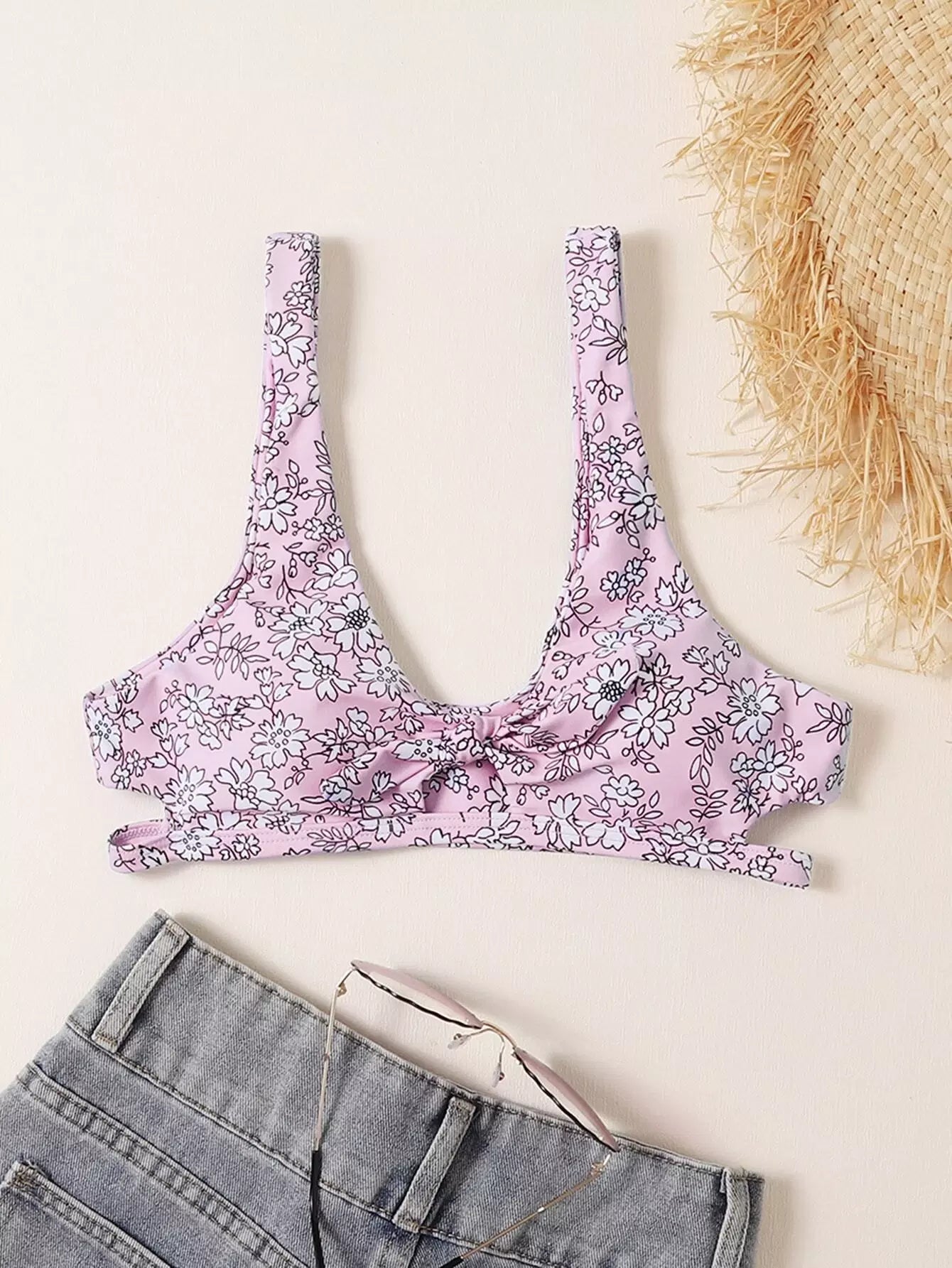 بلوزة بيكيني بعقدة أمامية زهرية