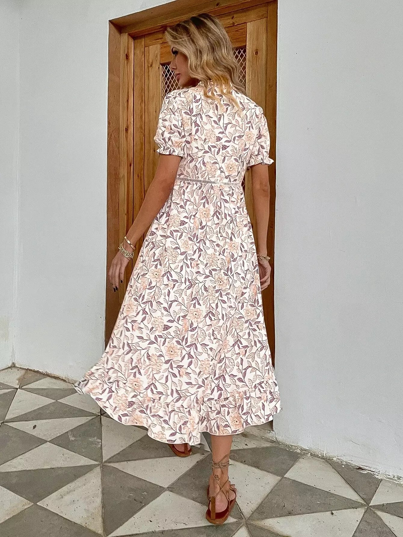فستان بحاشية من الدانتيل المزين بالأزهار على شكل توليب