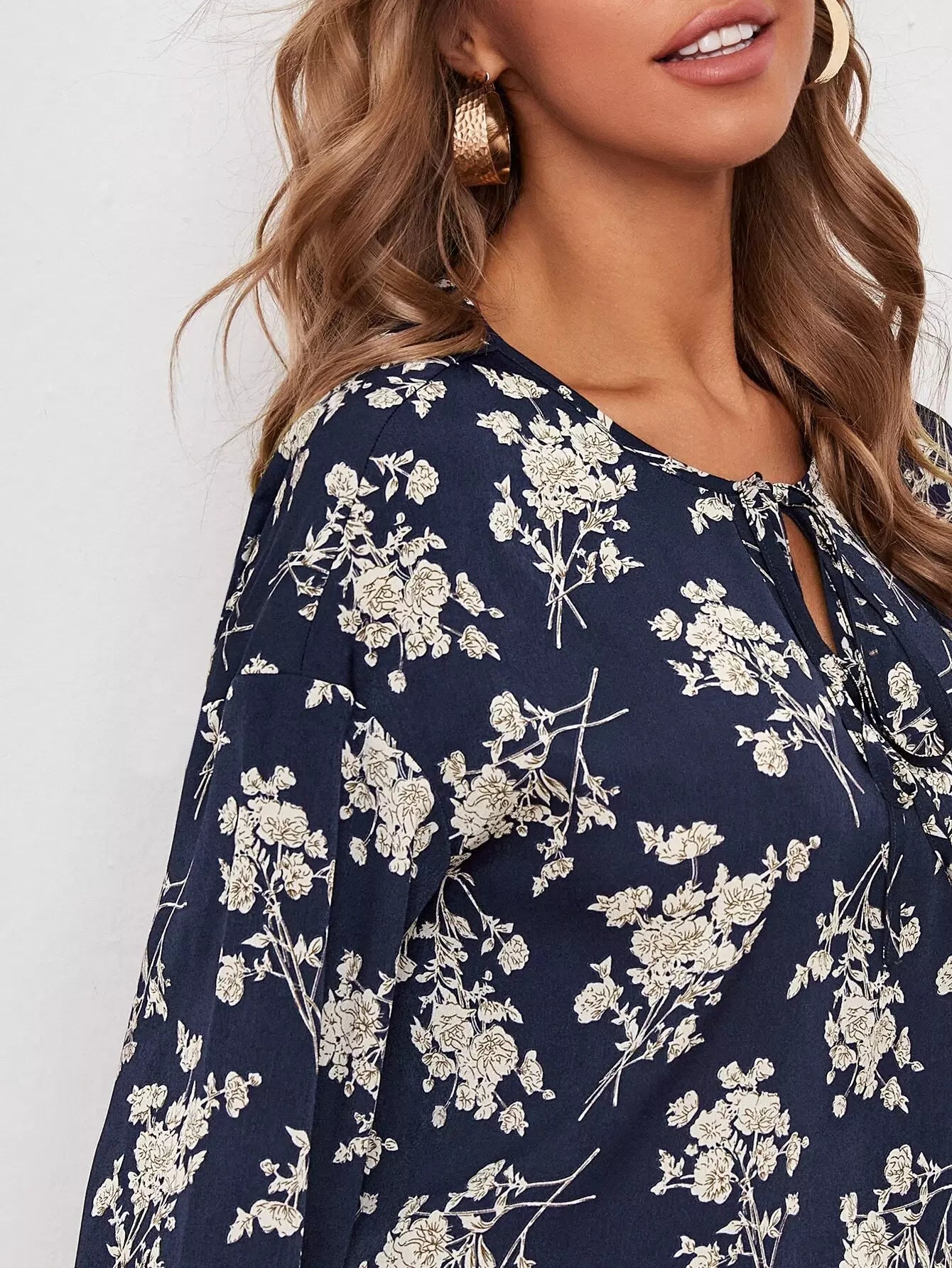 بلوزة بأكمام زهرية بأربطة أمامية معقودة من الأمام