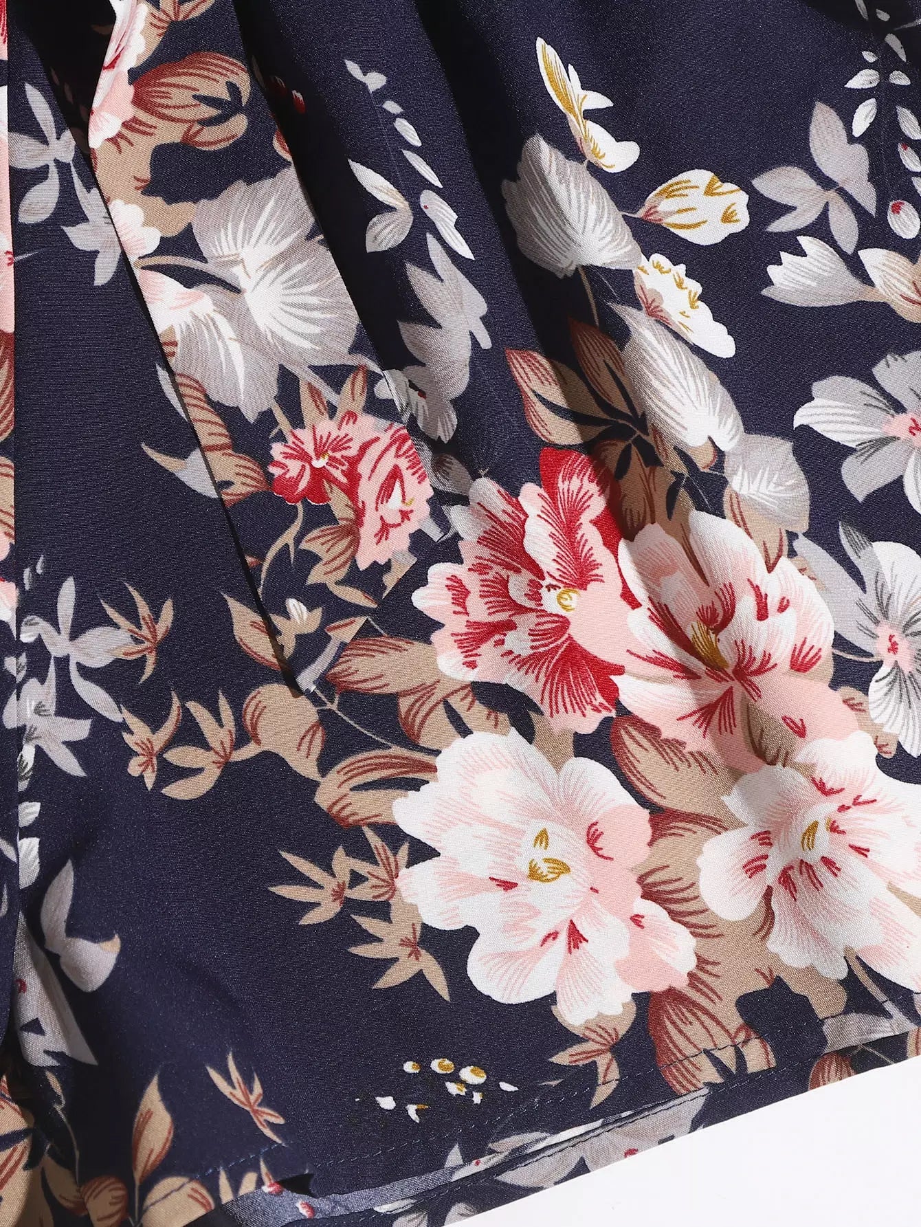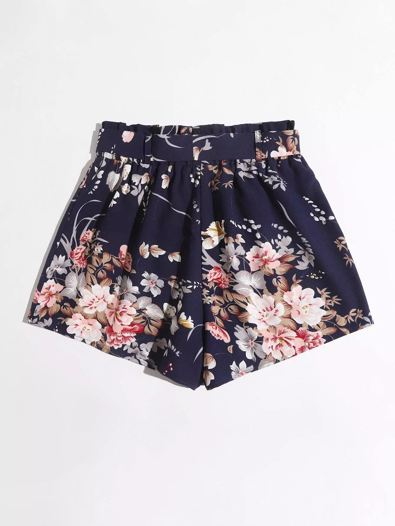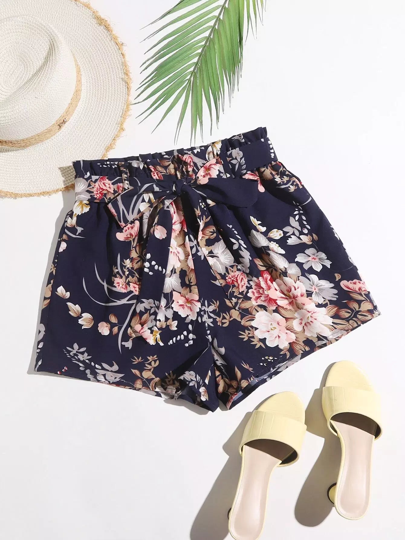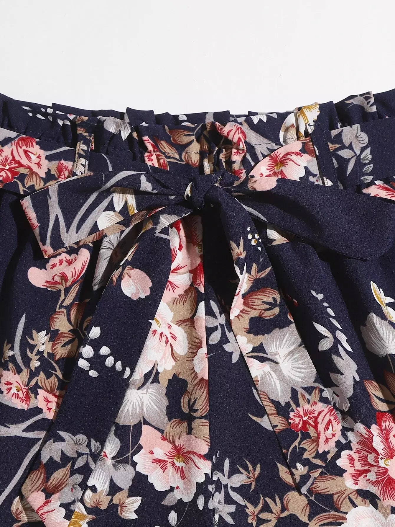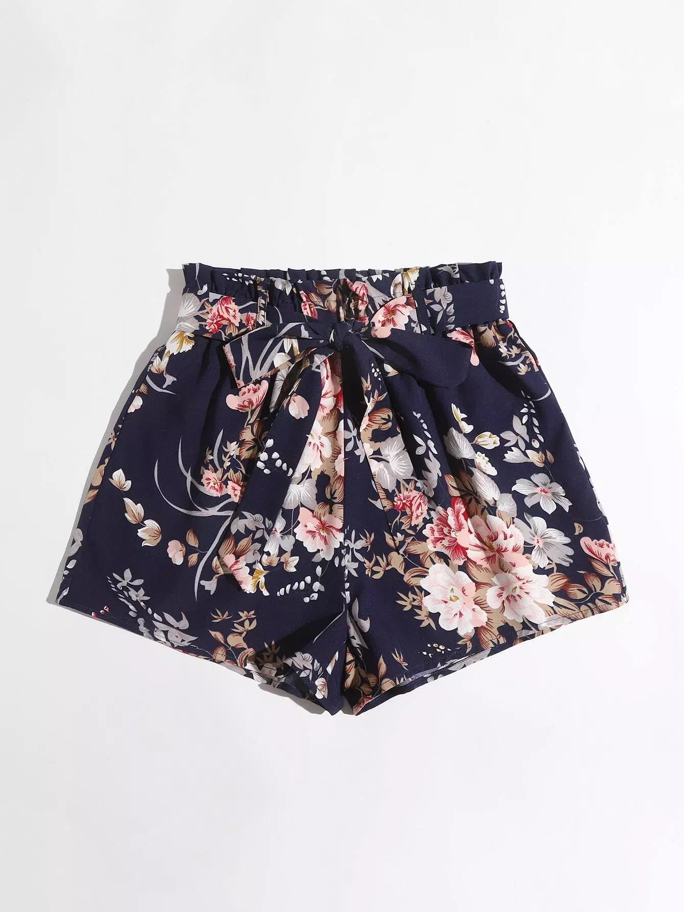 شورت خصر على شكل كيس ورقي مزين بالزهور بدون حزام