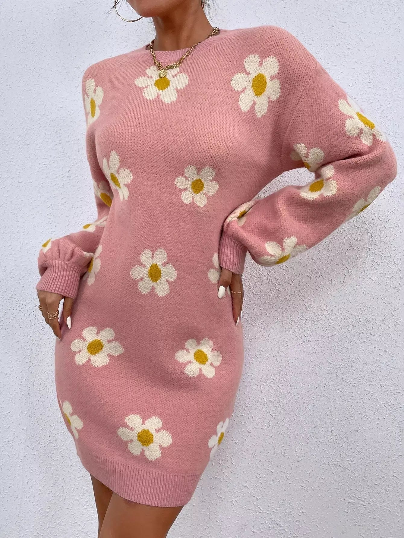 فستان بأكمام بنقشة زهور بأكمام فانوسية