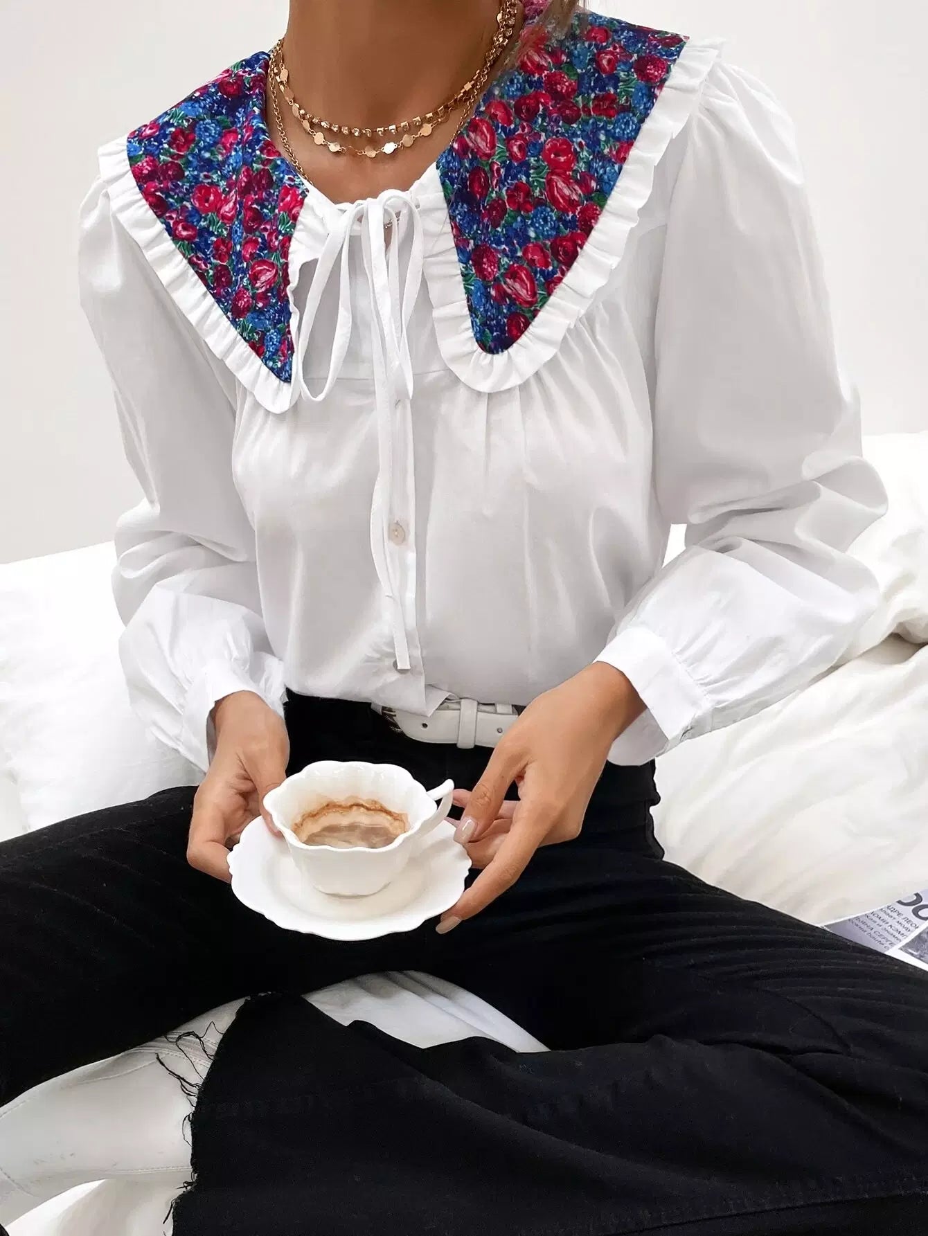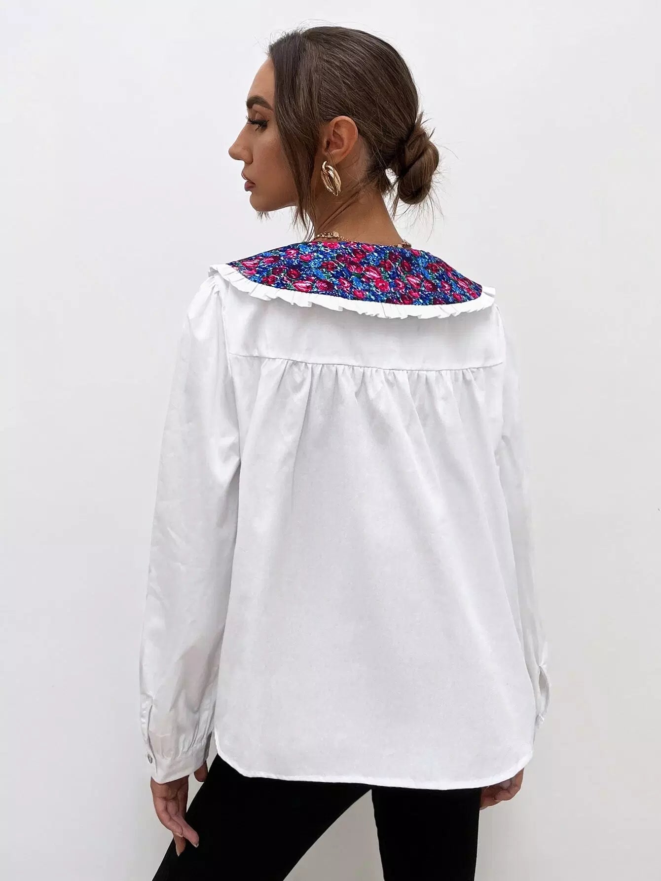 بلوزة بياقة بيتر بان مطبوع عليها أزرار بطبعة زهور