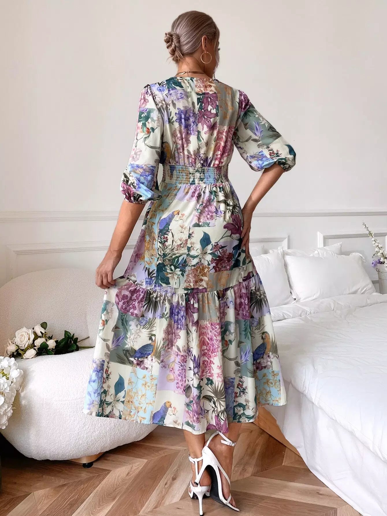 للنساء - فستان بحاشية مكشكشة وطبعات زهور