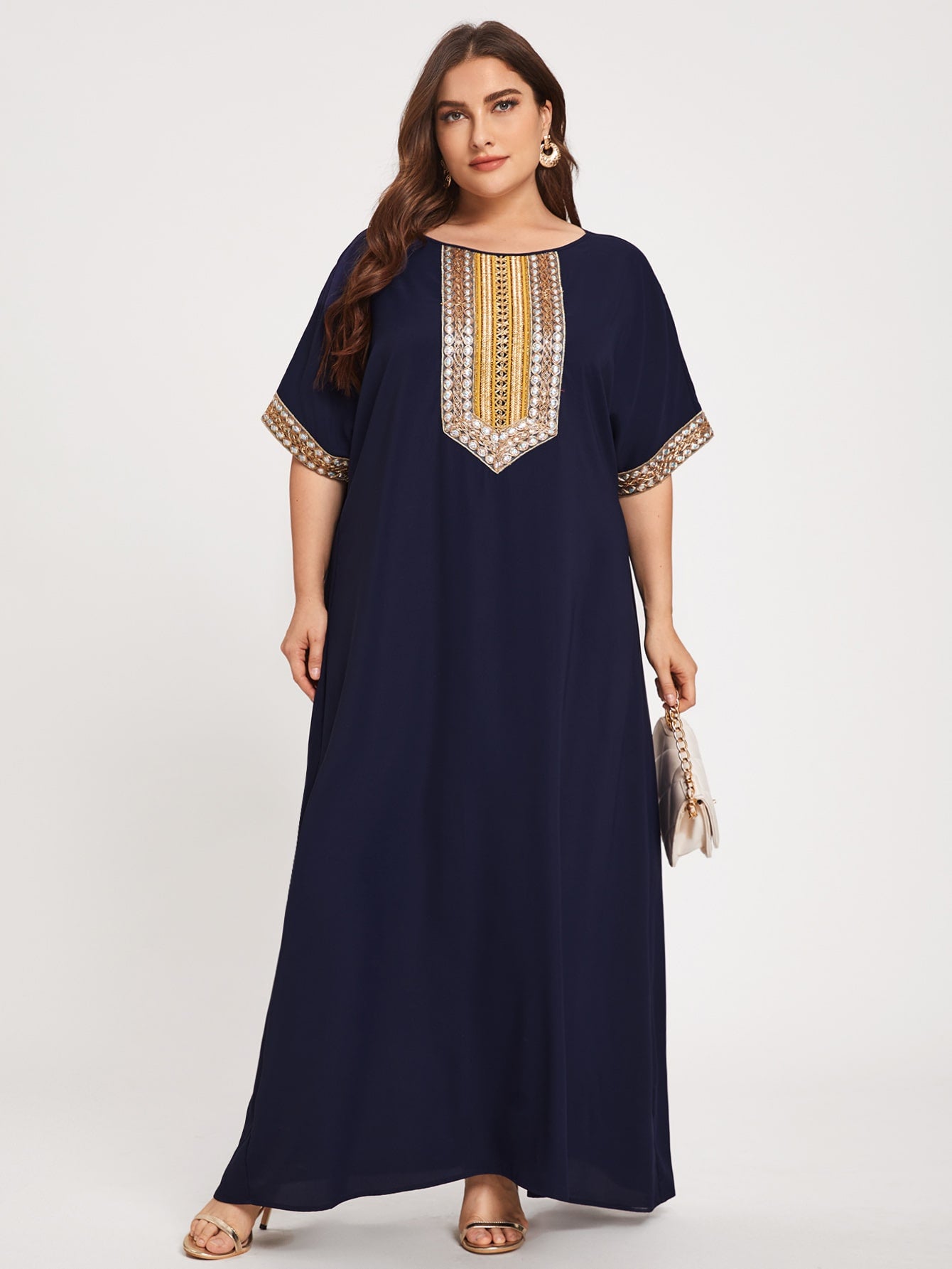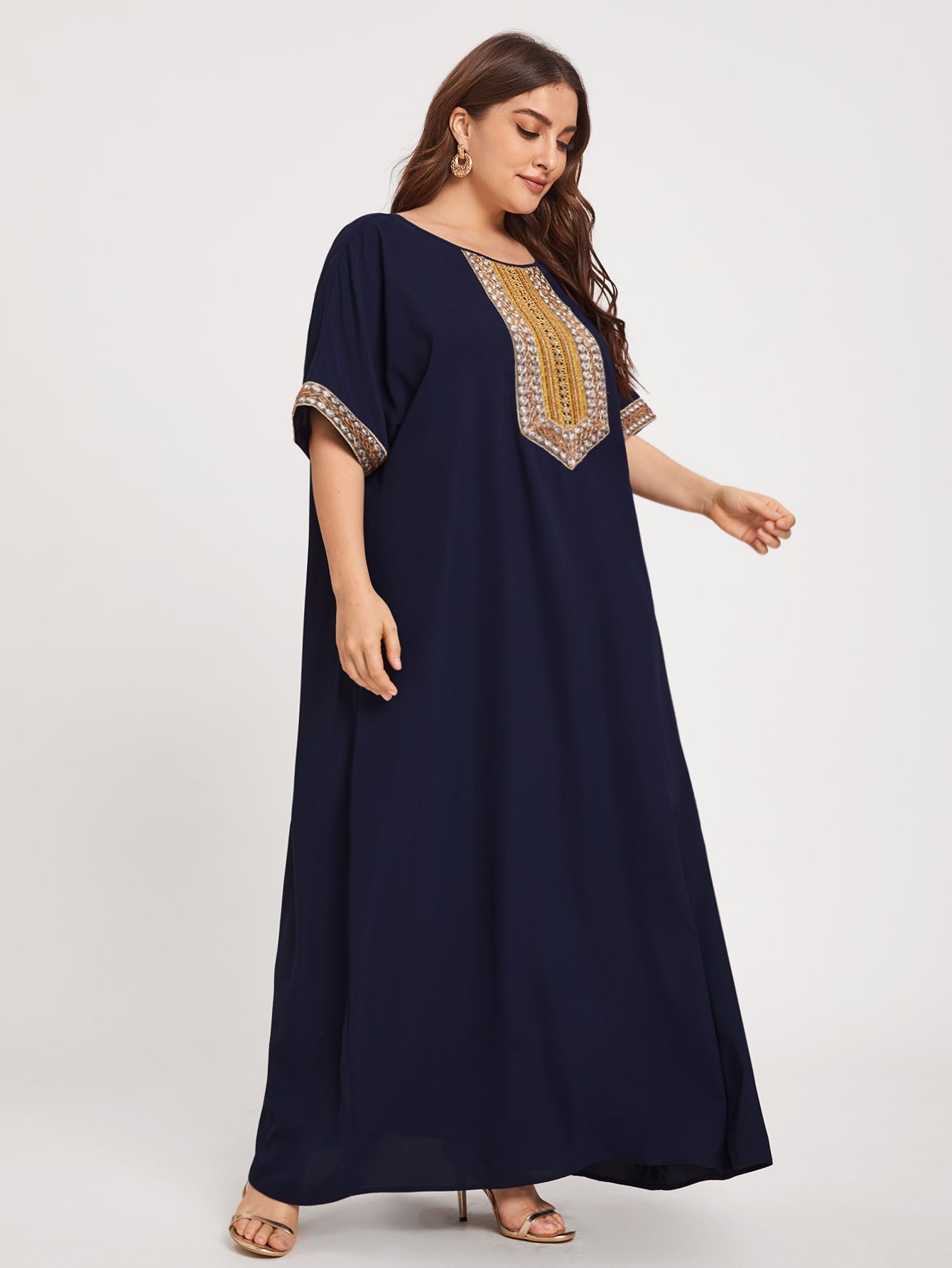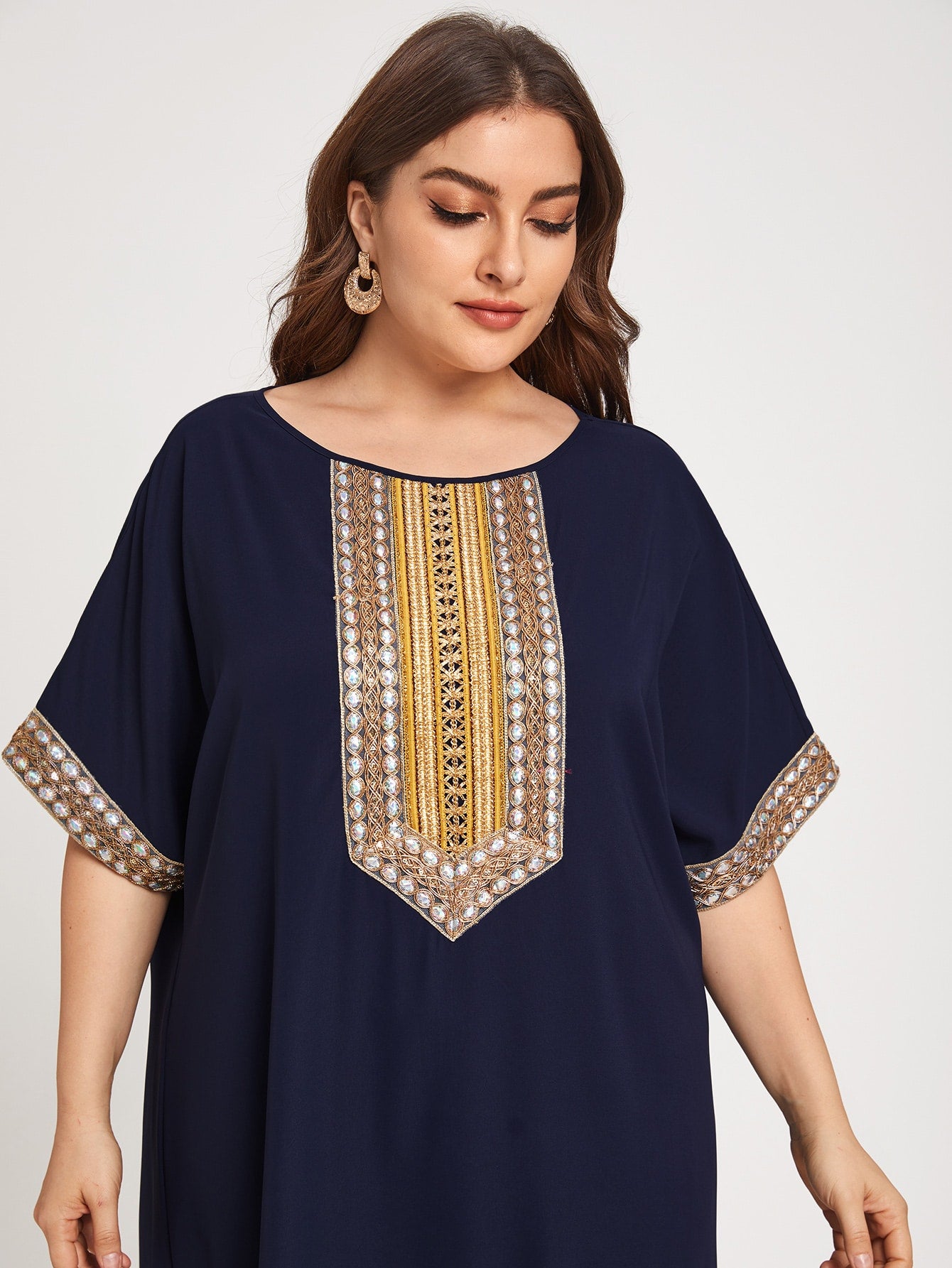 Plus Embroidery Taped Tunic Dress