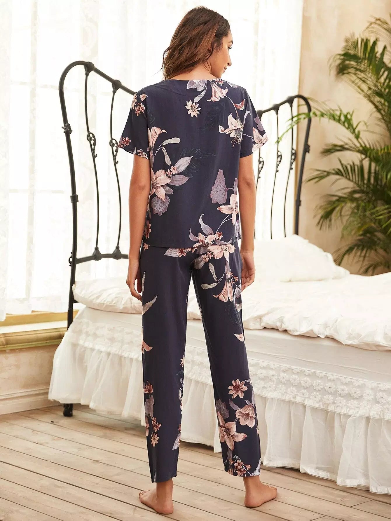 Floral Print Tie Front Pajama Set