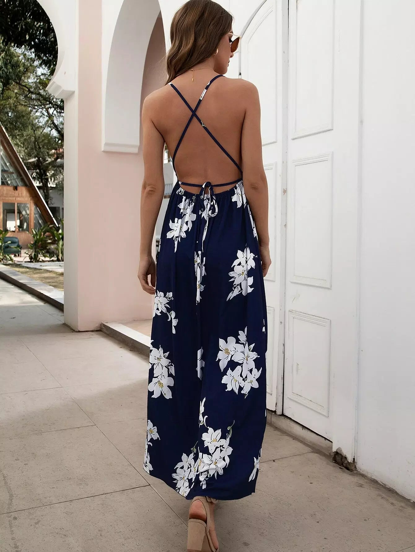 فستان زهري بفتحة منقسمة على الفخذين متقاطعة من الخلف