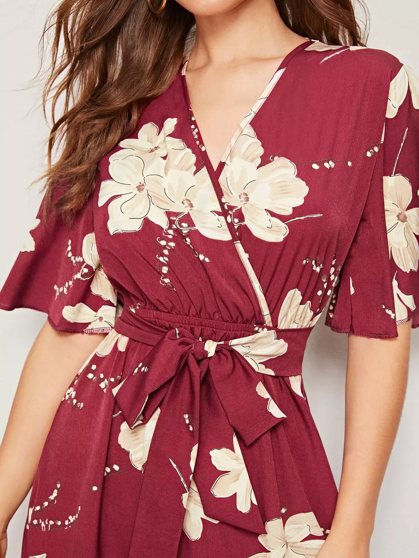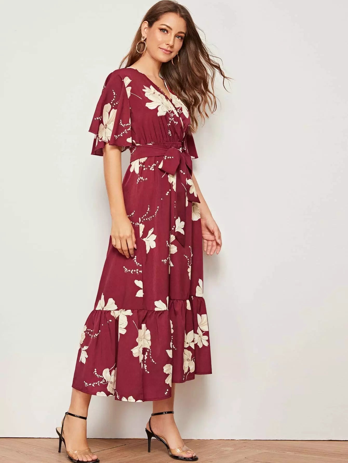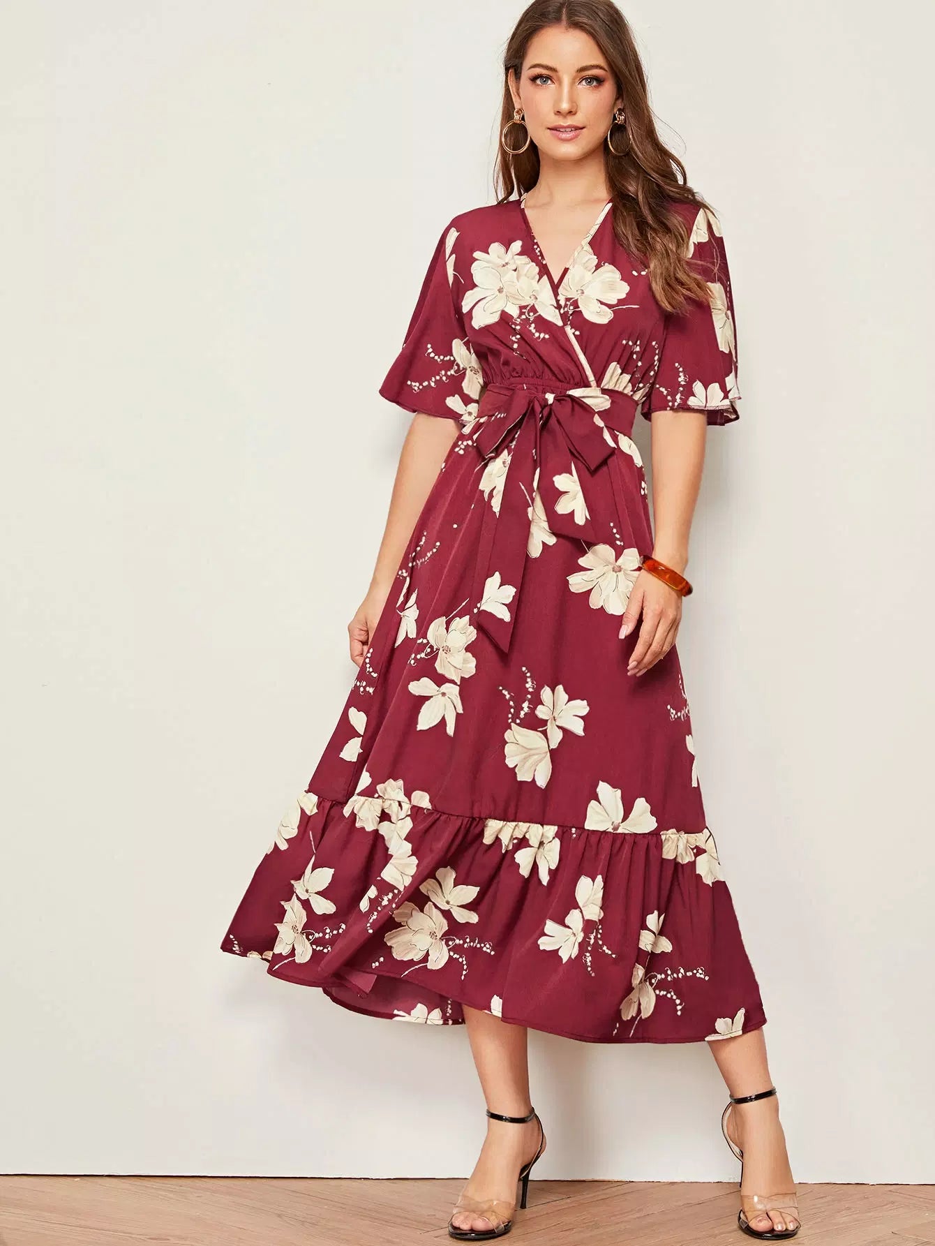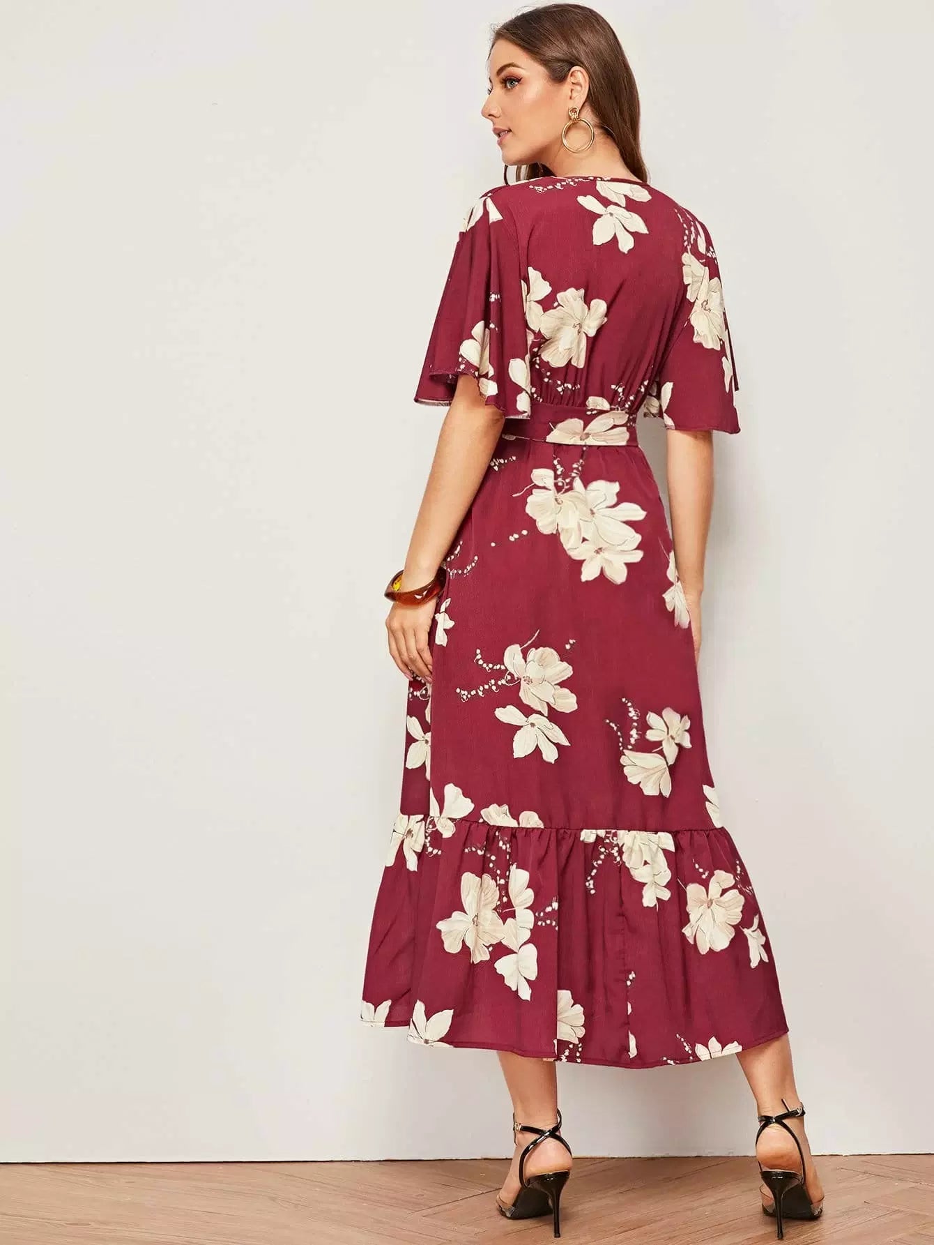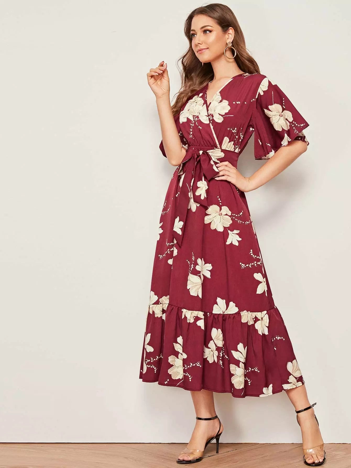 فستان بحاشية بيب أمامية مزهّرة بدون حزام