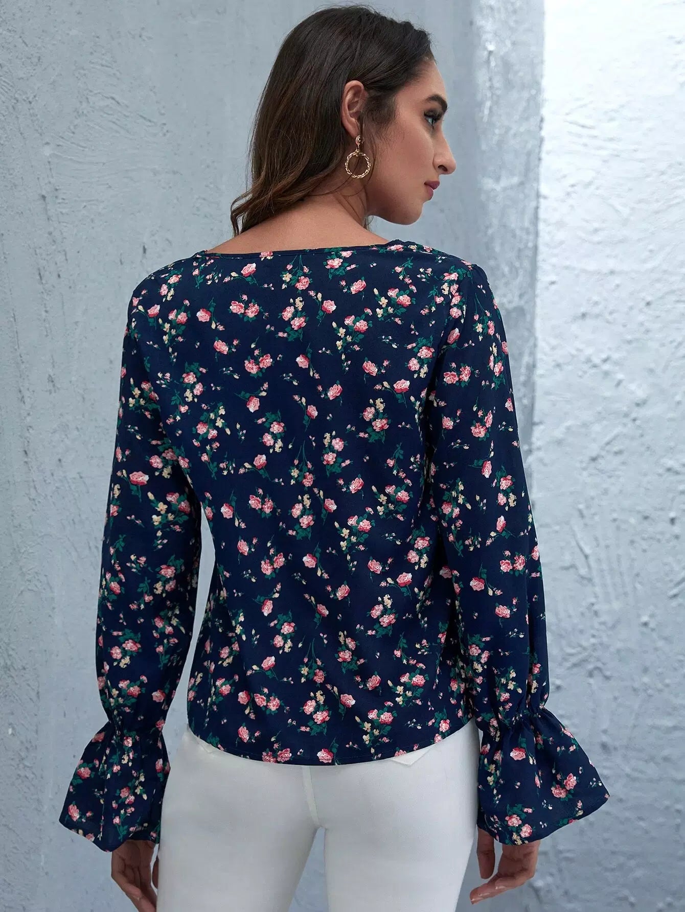 بلوزة بأزرار أمامية بأكمام منفوشة بأزرار من الأمام