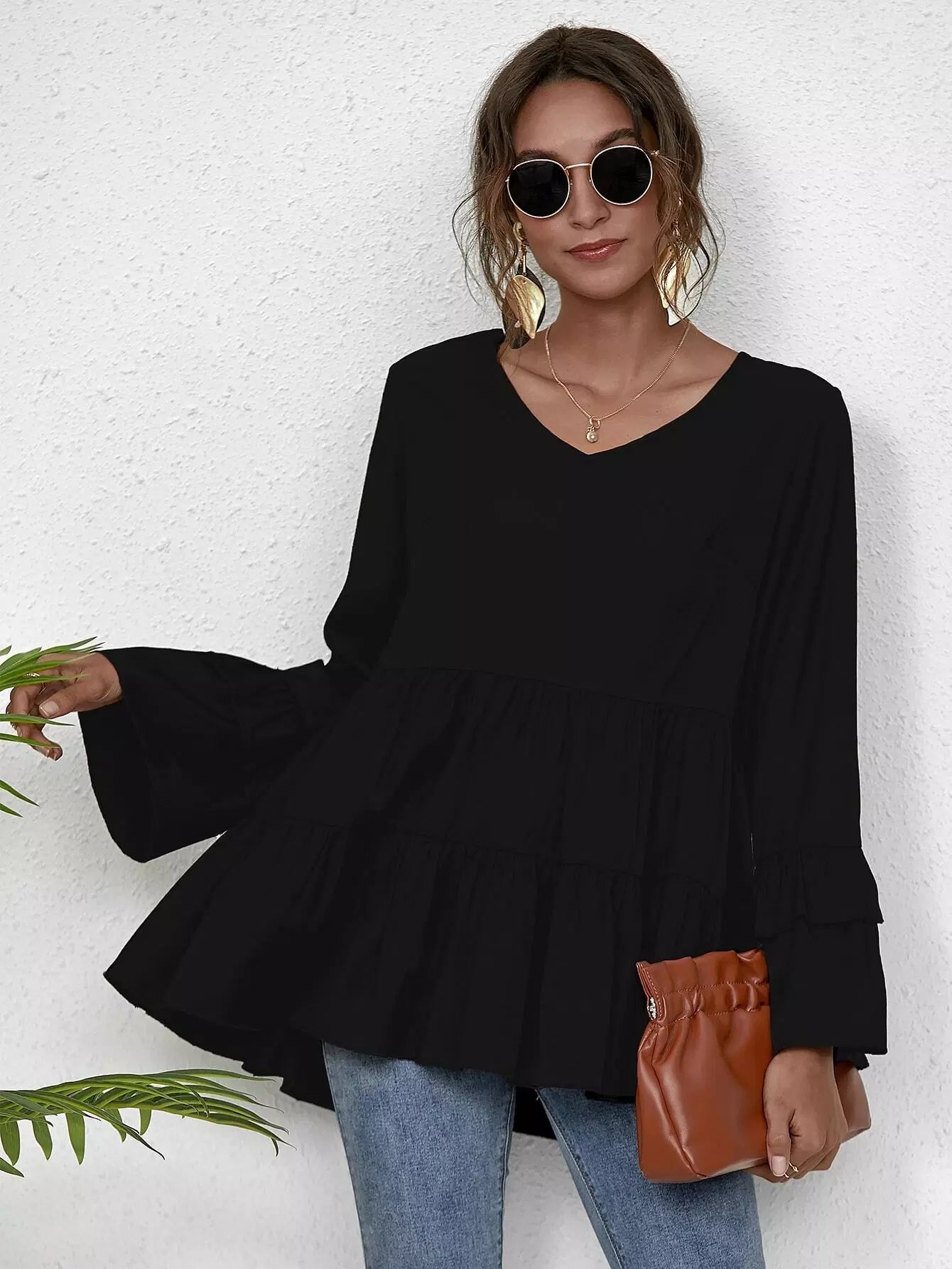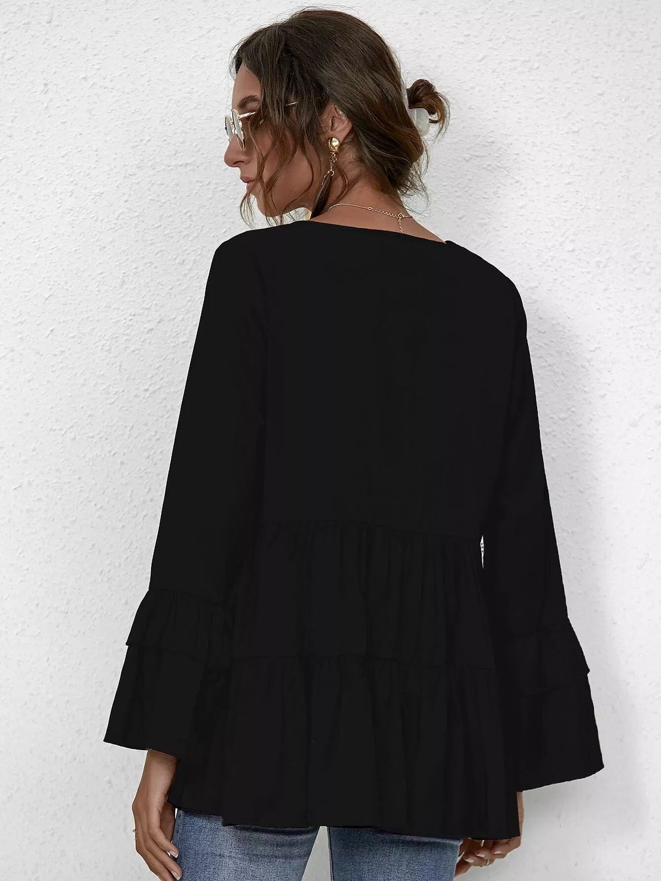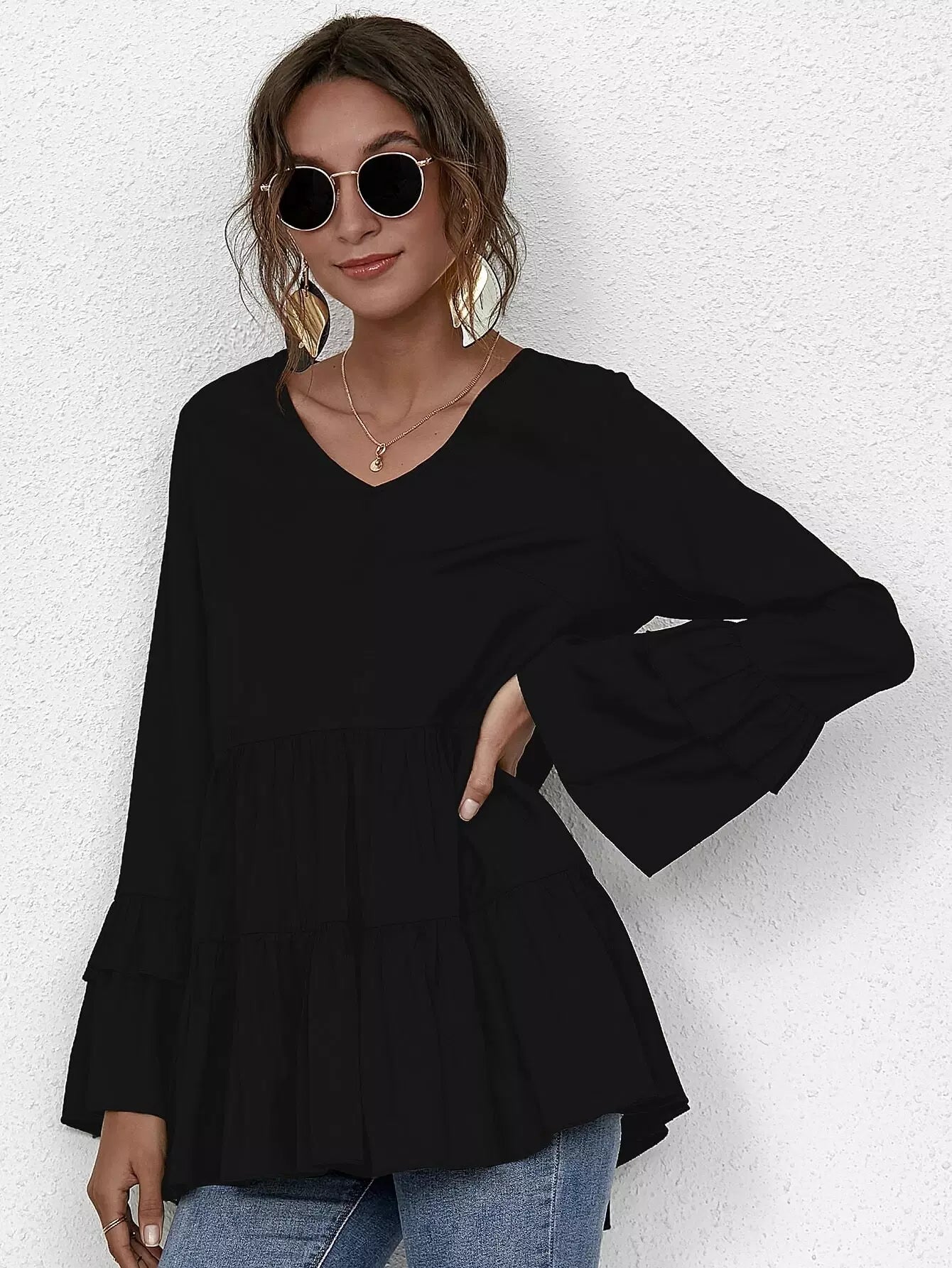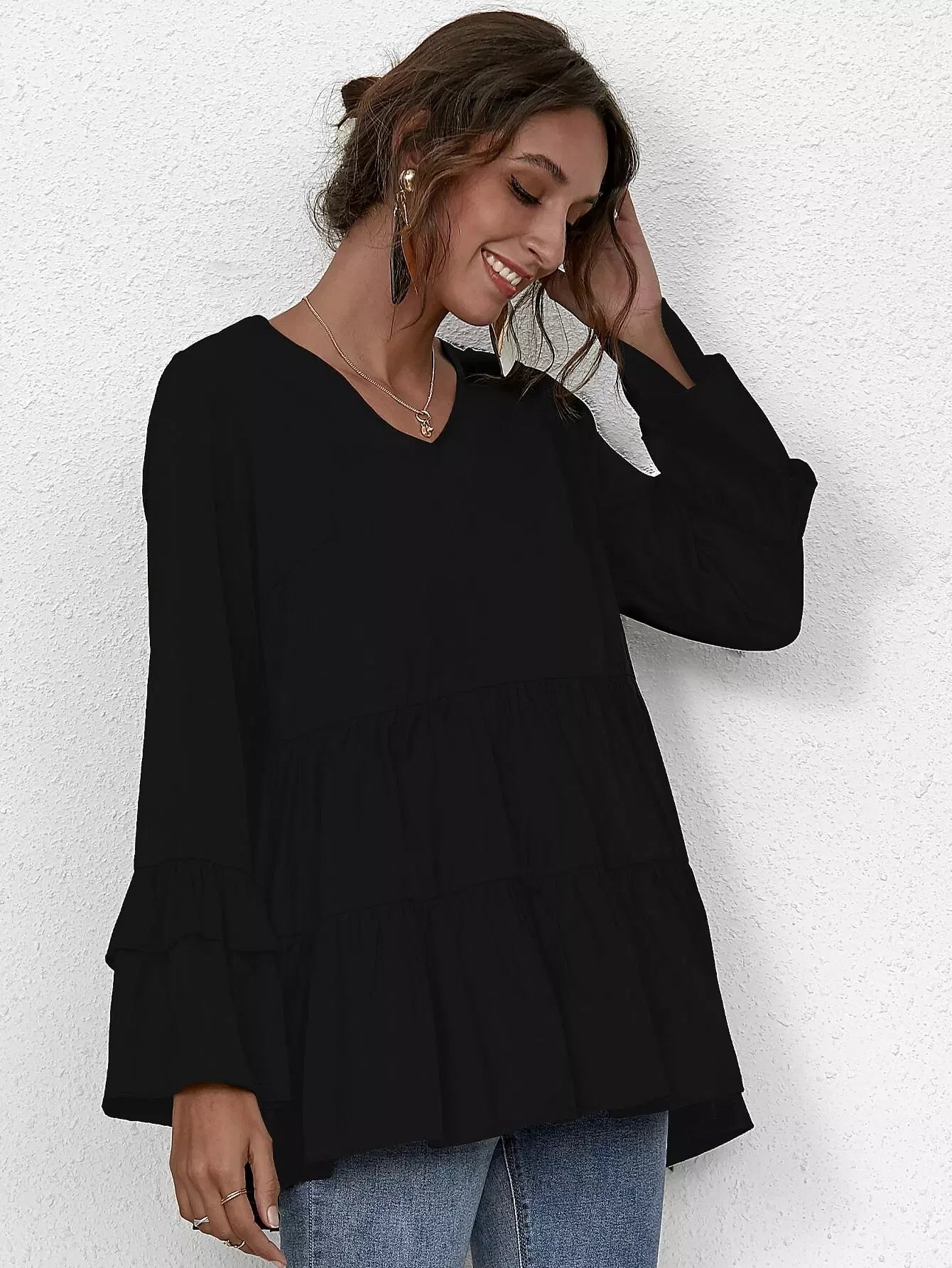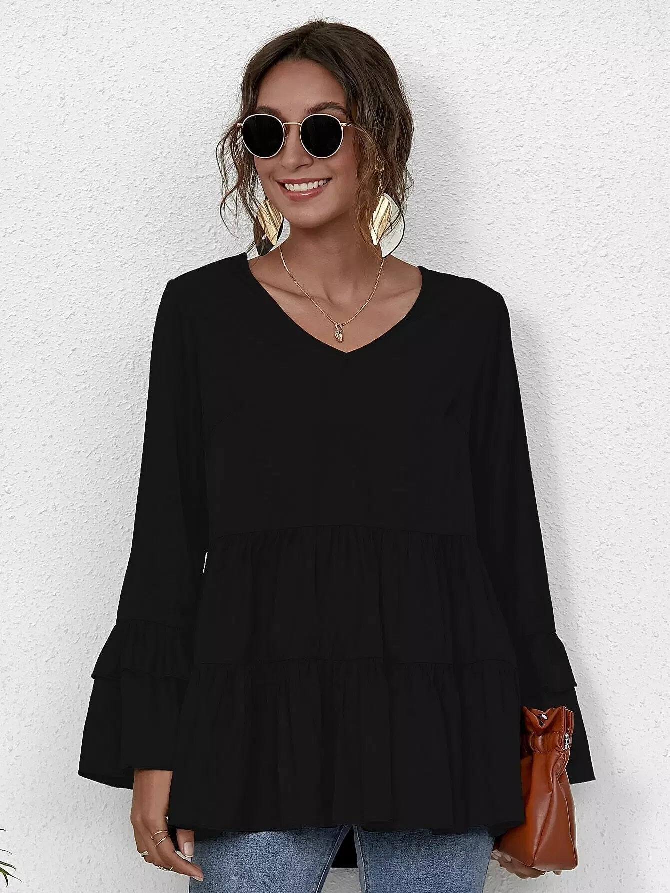 بلوزة بأكمام منفوشة بأكمام منفوشة
