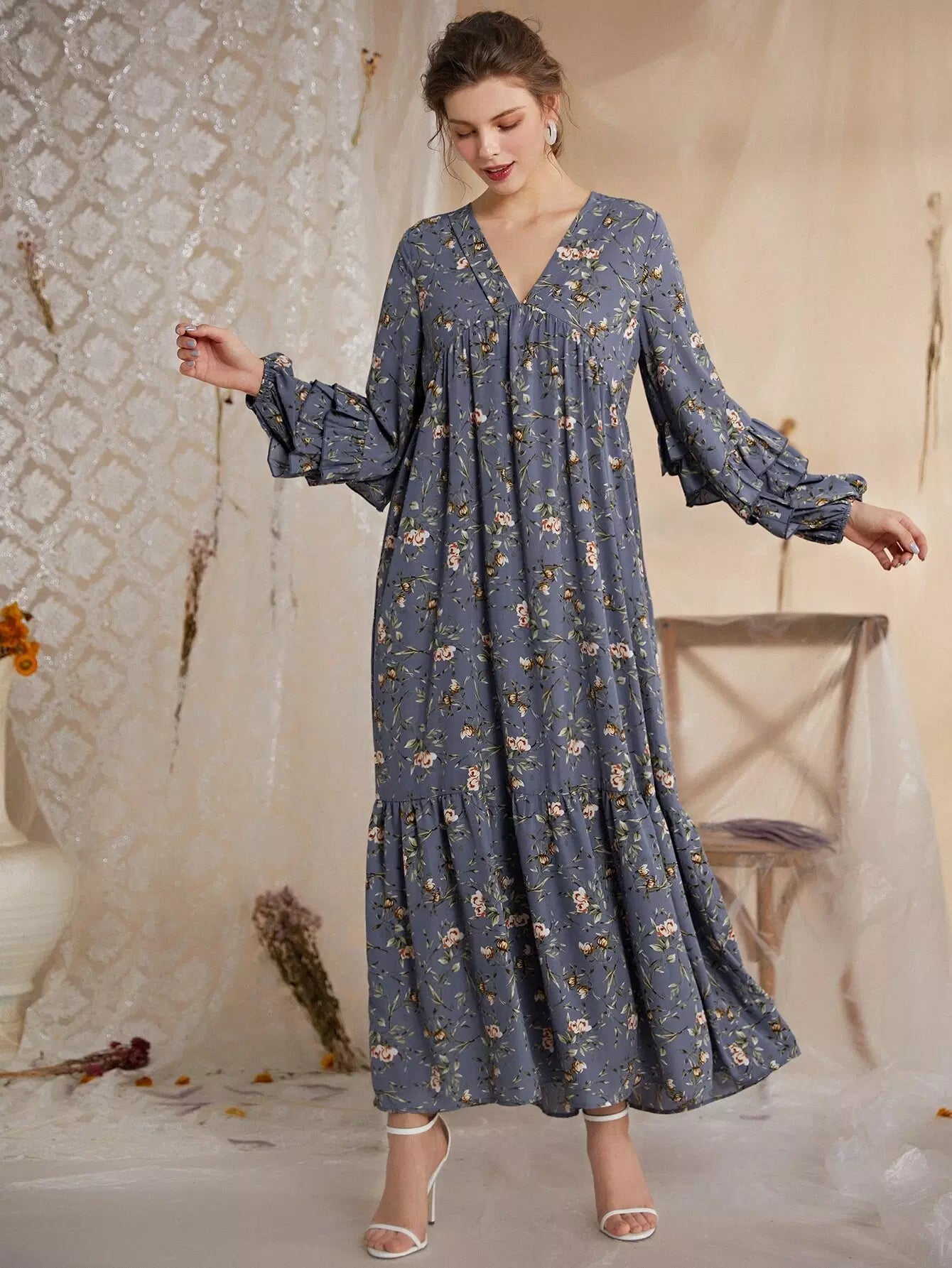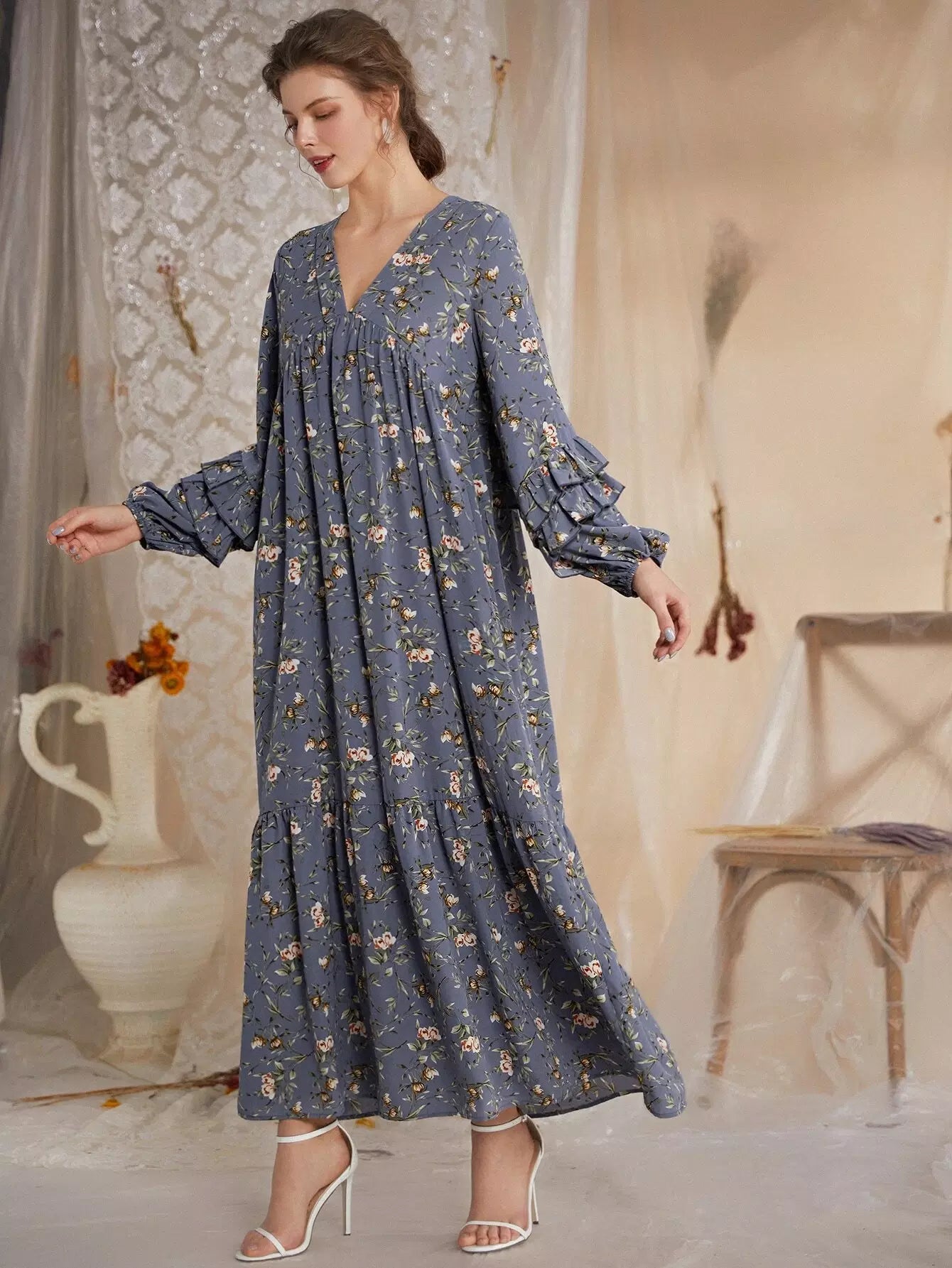 فستان بطباعة زهور بطبقات متدرجة بطبقات