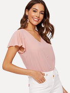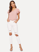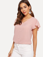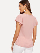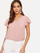 Flutter Sleeve Pearl Beaded Blouse