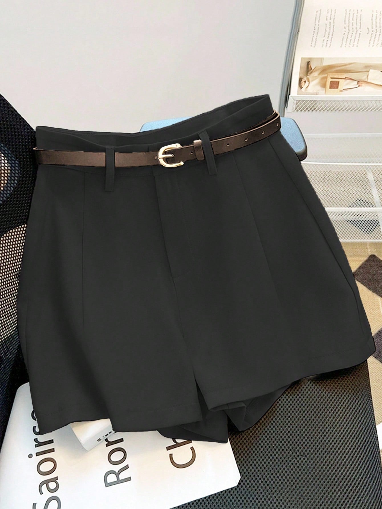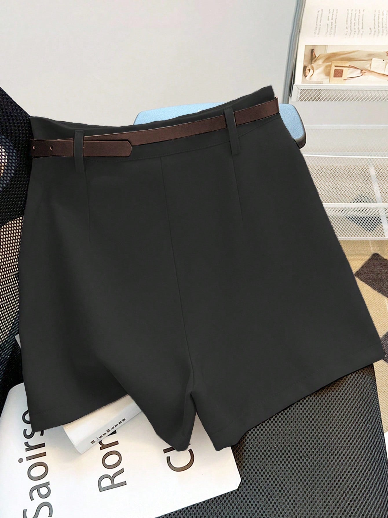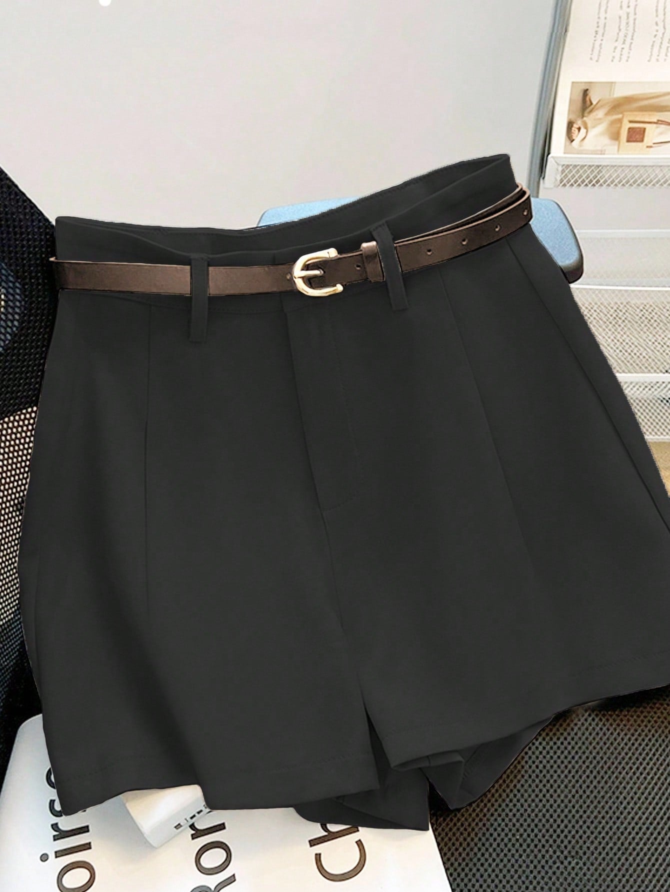 شورت فرانكليا كاجوال عالي الخصر بلون كاكي سادة بدون حزام