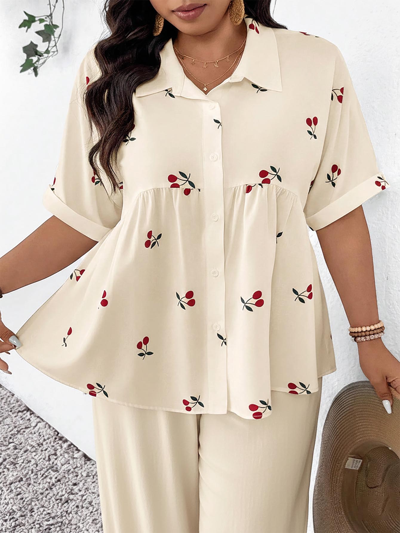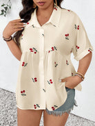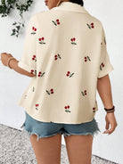 بلوزة فرينشي النسائية ذات المقاسات الكبيرة، بتصميم مفتوح من الأمام، مصنوعة من قماش منقوش، مريحة وعملية، بأكمام قصيرة