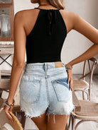 بلوزة نسائية من فرينشي، مناسبة لفصل الخريف، بلون موحد، مزينة بتطريز دانتيل، بياقة هالتر
