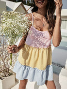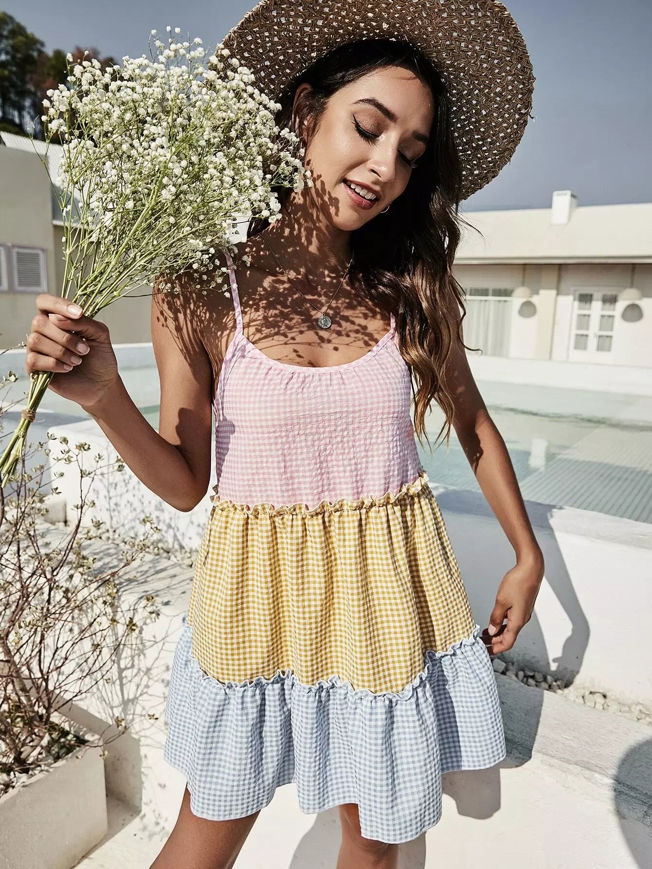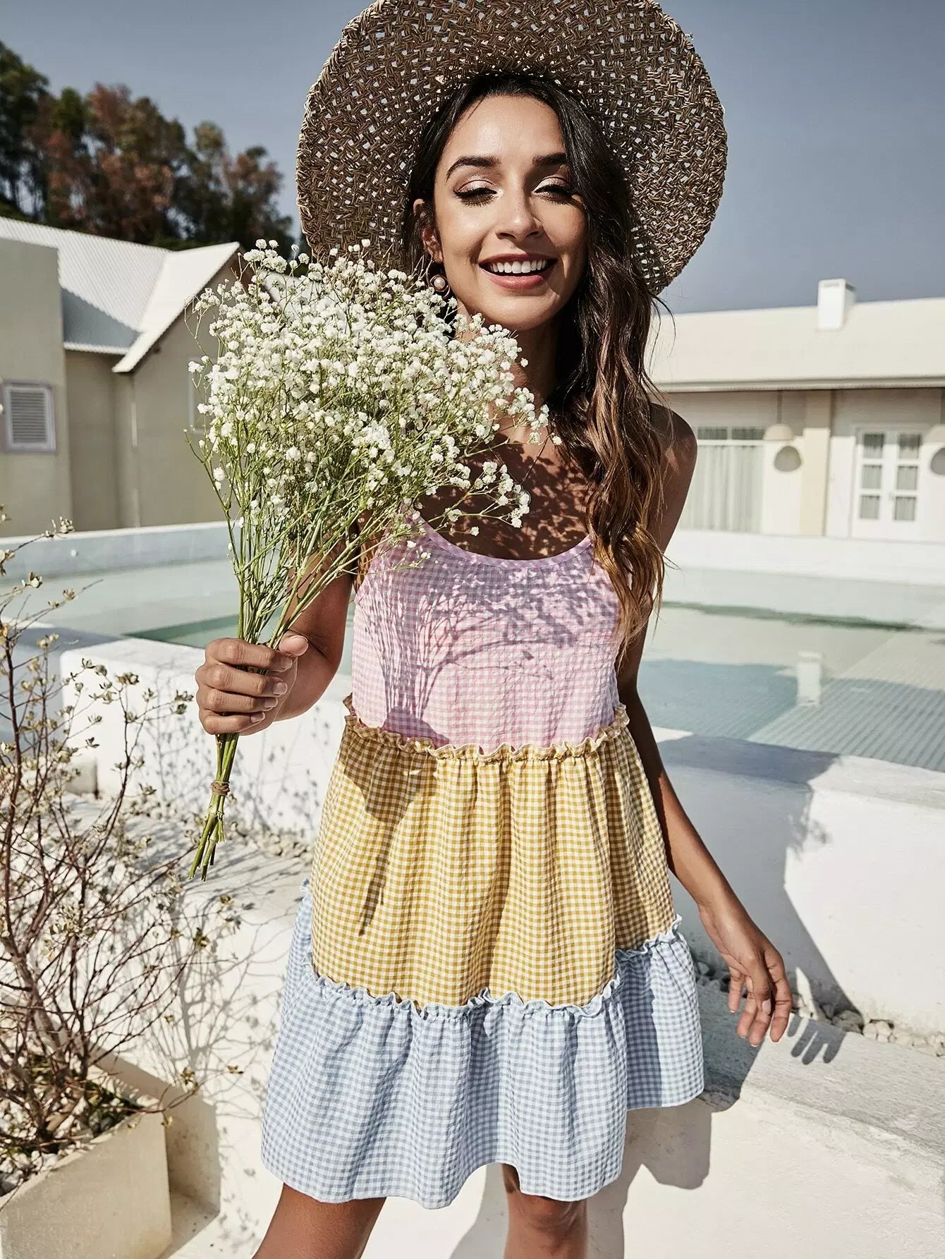 فستان كشكش مزين بكشكش من القماش القطني الملون