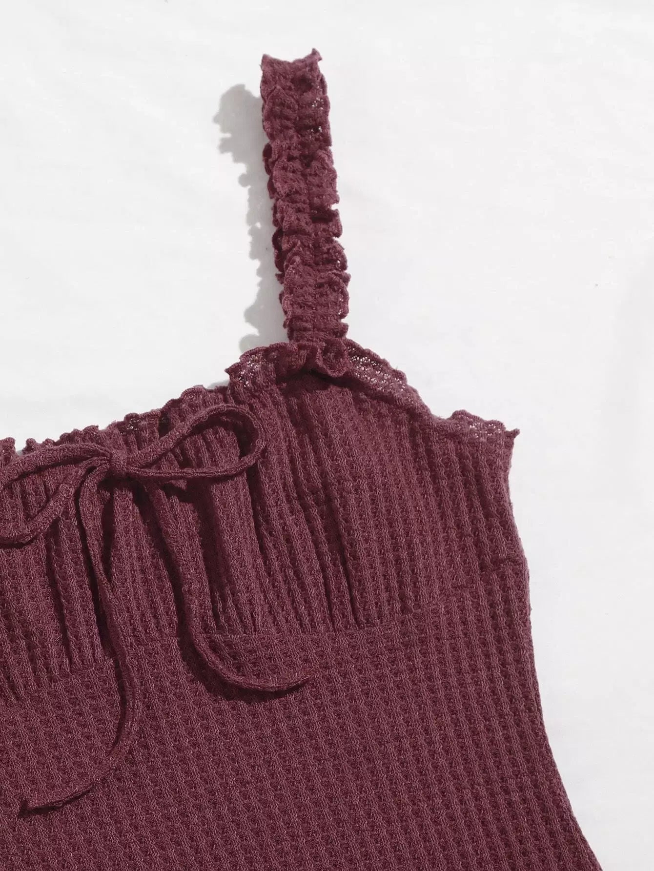 فستان بحزام كشكش بحزام كشكش بحزام عقدة أمامية مكشكشة عند الصدر