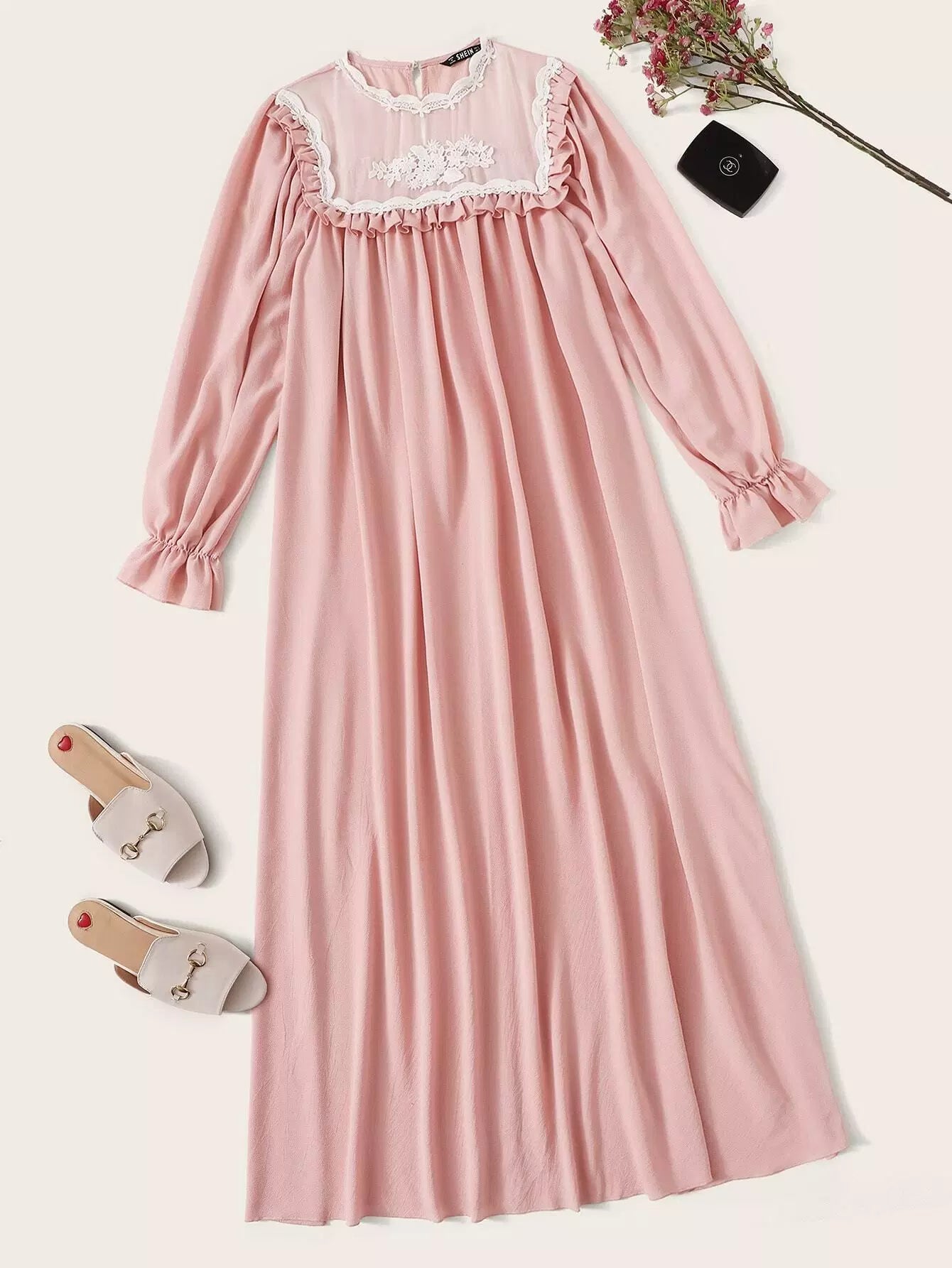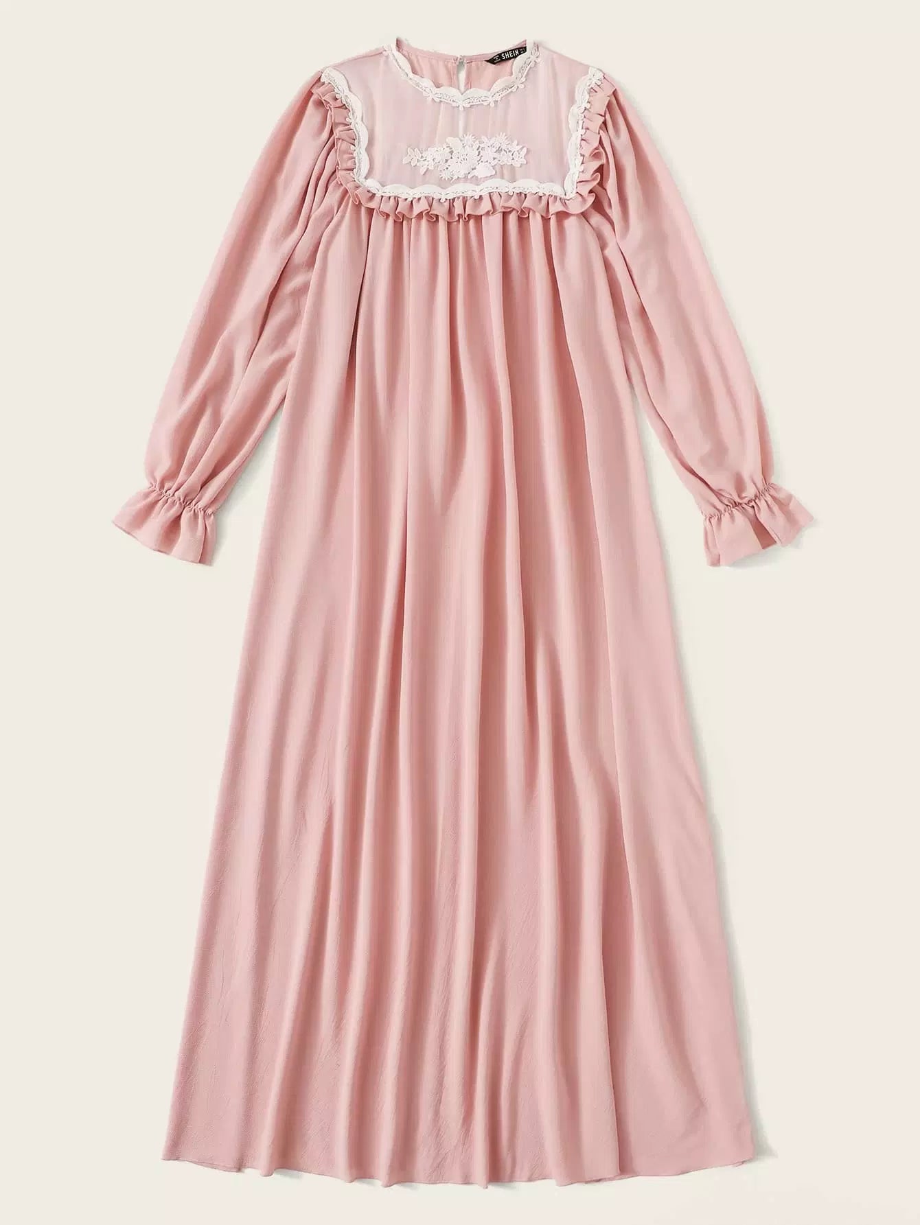 فستان نوم من الدانتيل المزركش المزركش المزركش