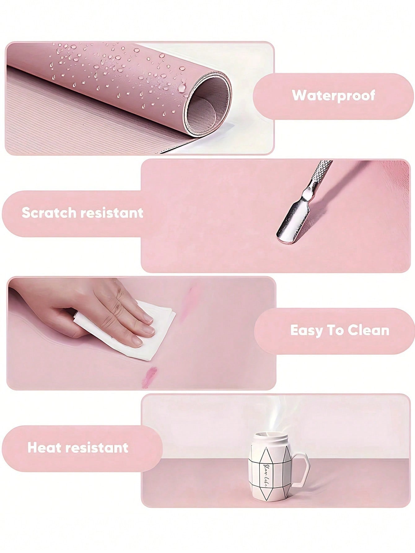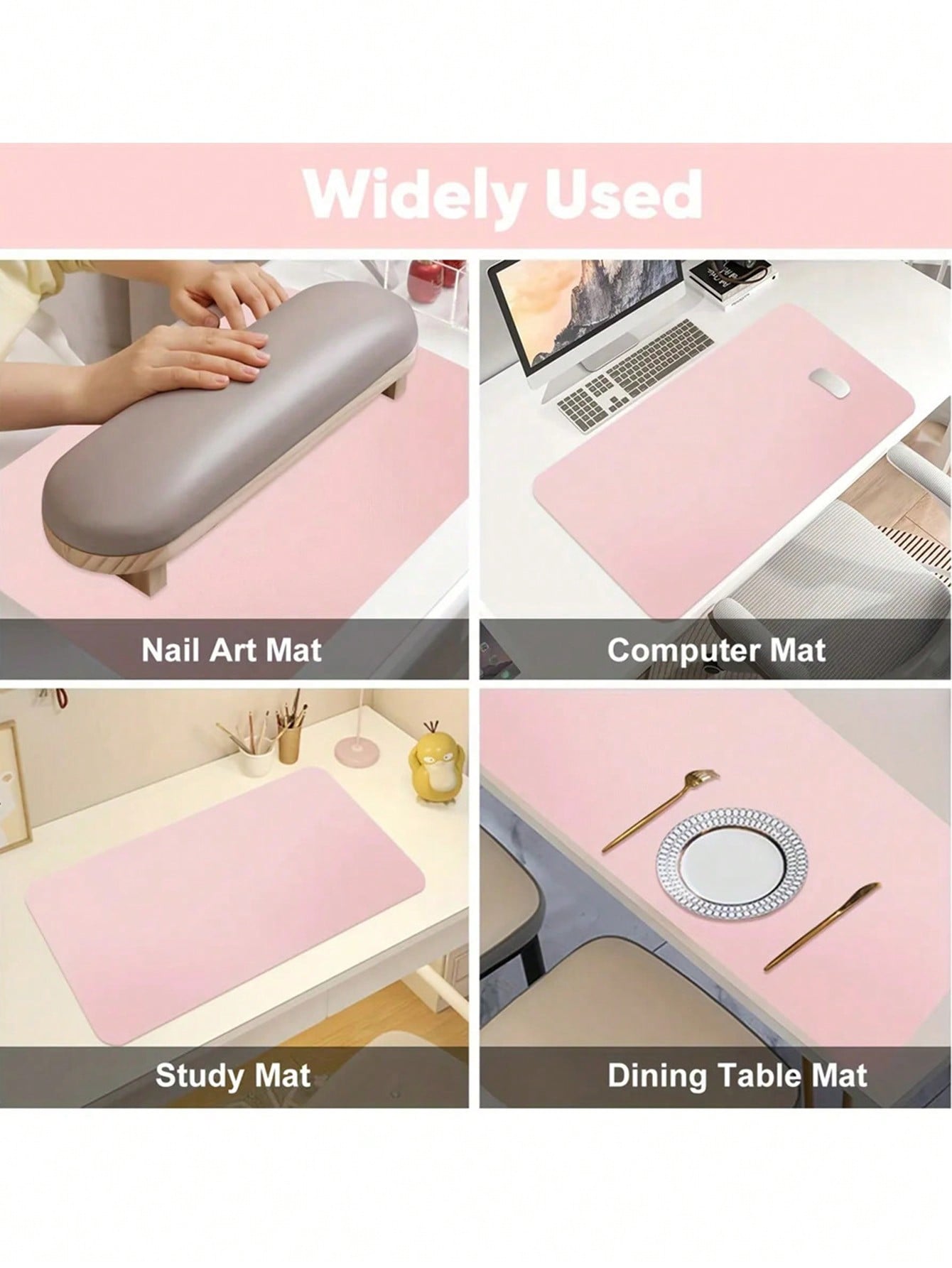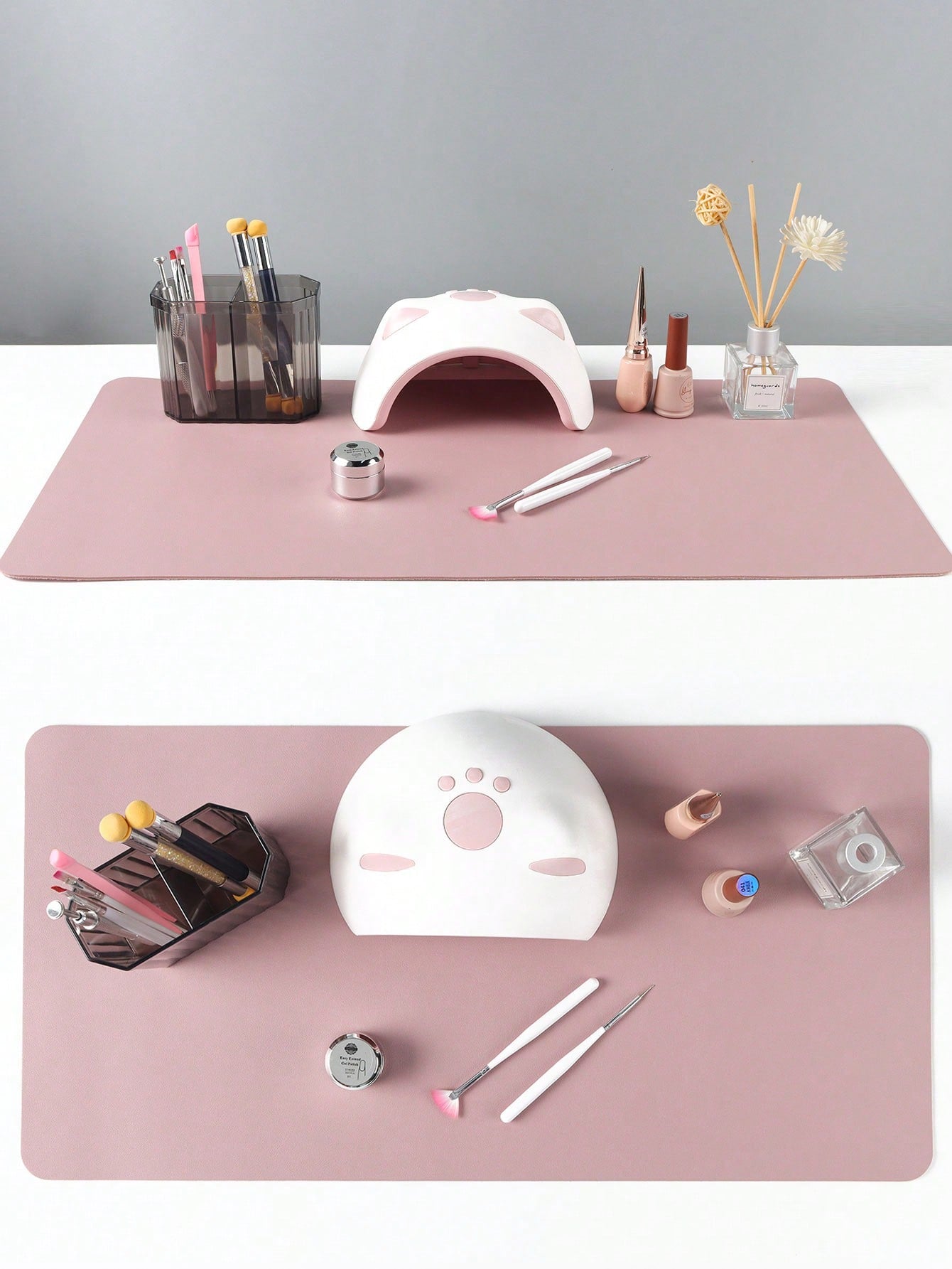 سجادة طاولة فن الأظافر من فول بيوتي، لون وردي باهت، مقاومة للماء، مصنوعة من جلد البولي يوريثان الناعم، قابلة للطي، مناسبة للاستخدام في الاستوديوهات ورسم الأظافر.