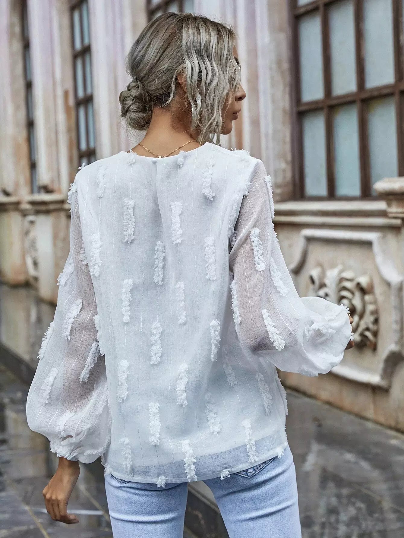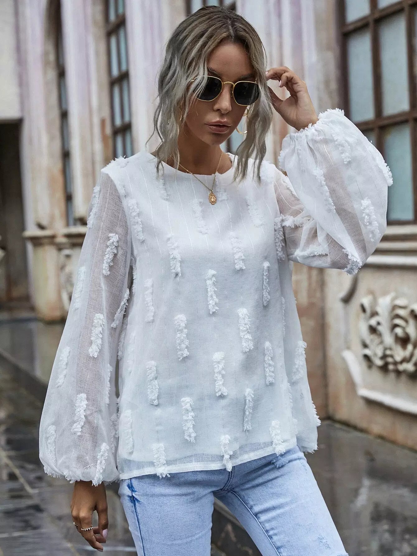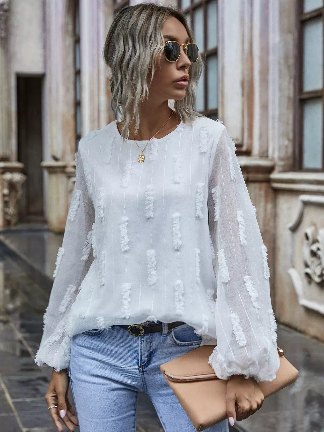 بلوزة ذات أكمام مزينة بتفاصيل ضبابية