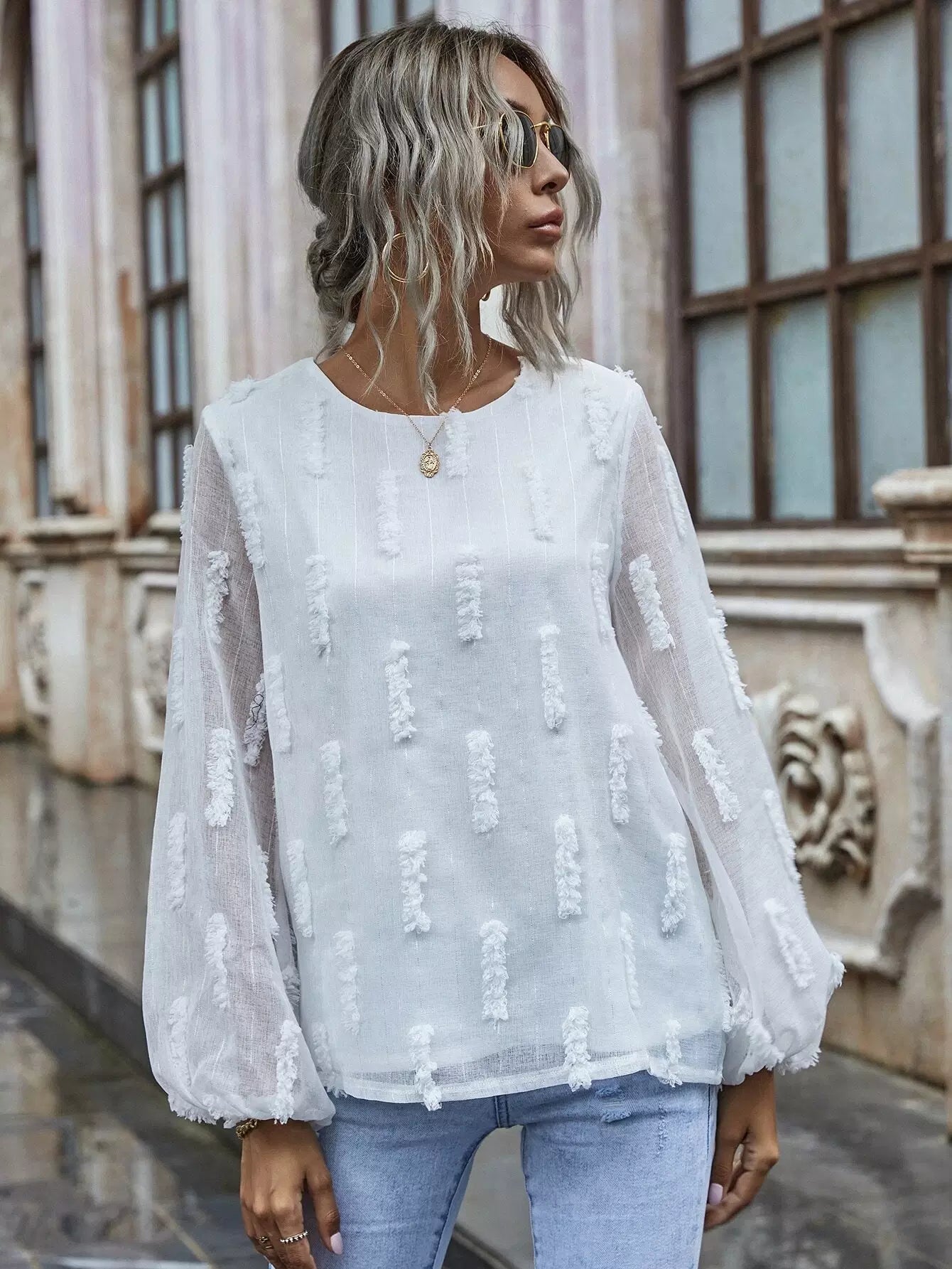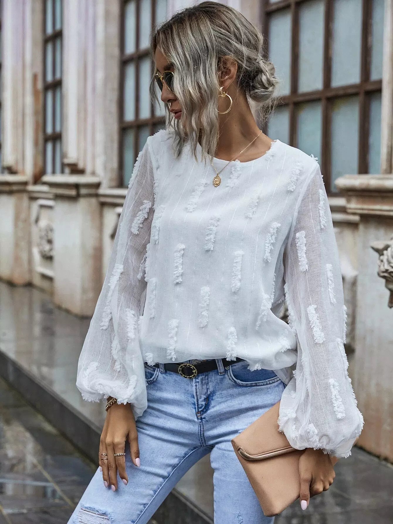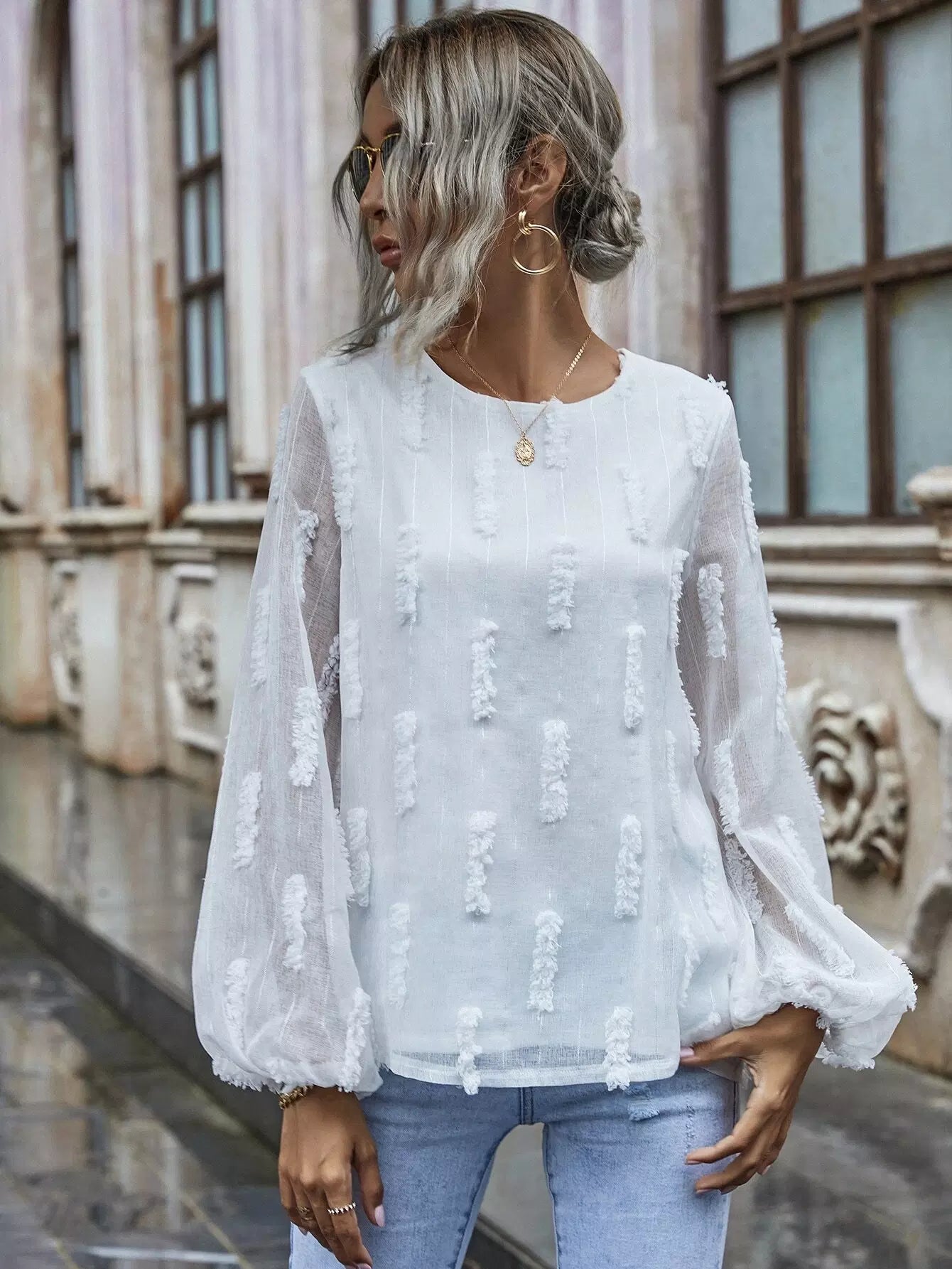 بلوزة ذات أكمام مزينة بتفاصيل ضبابية