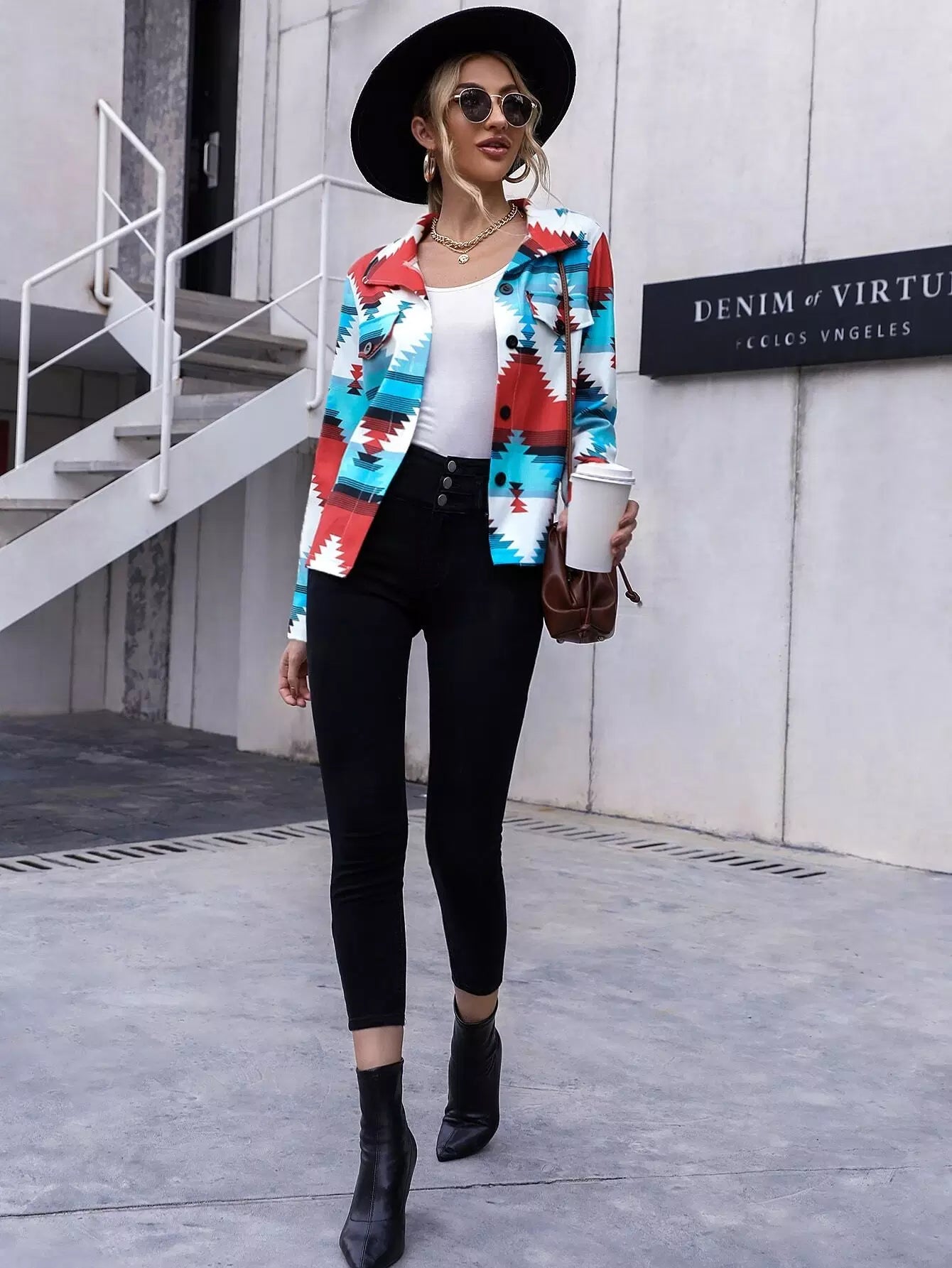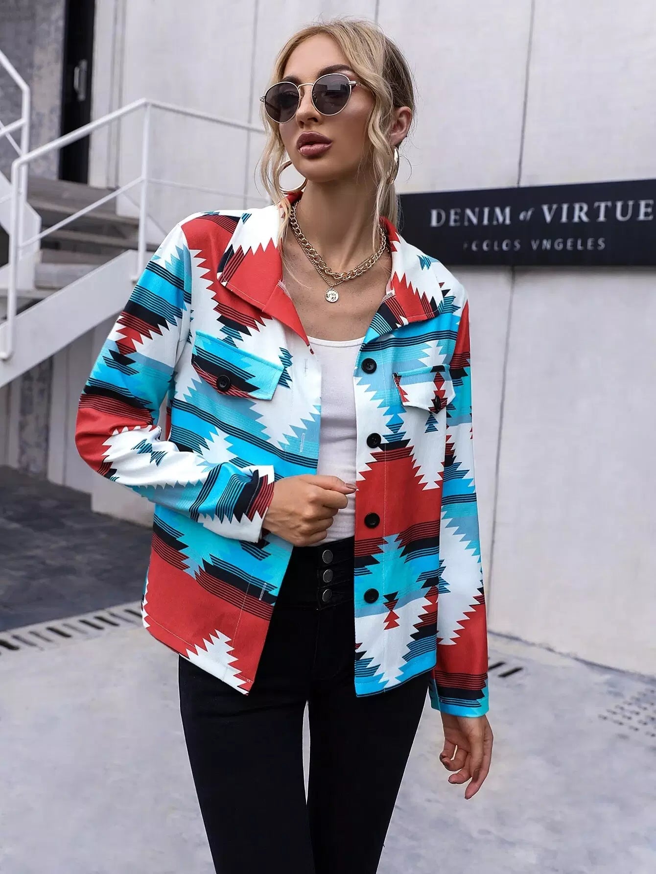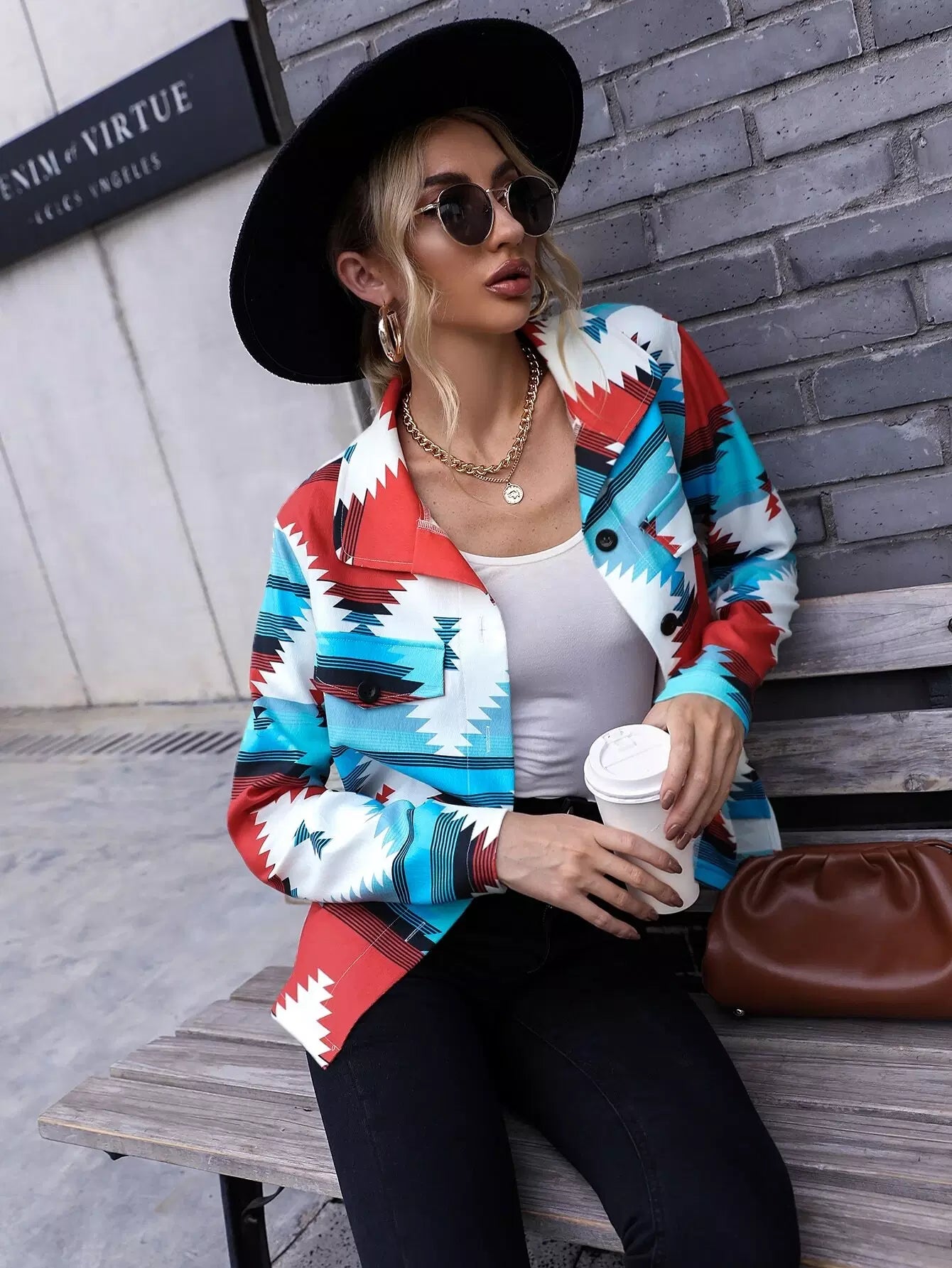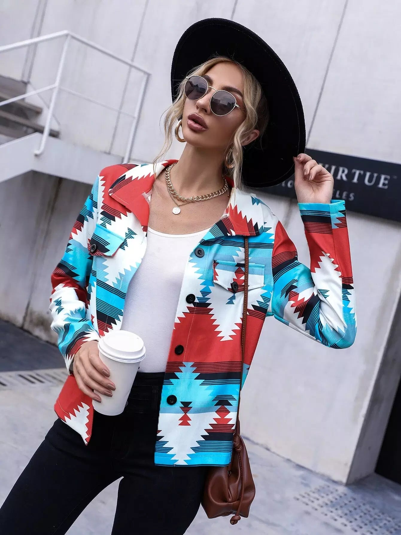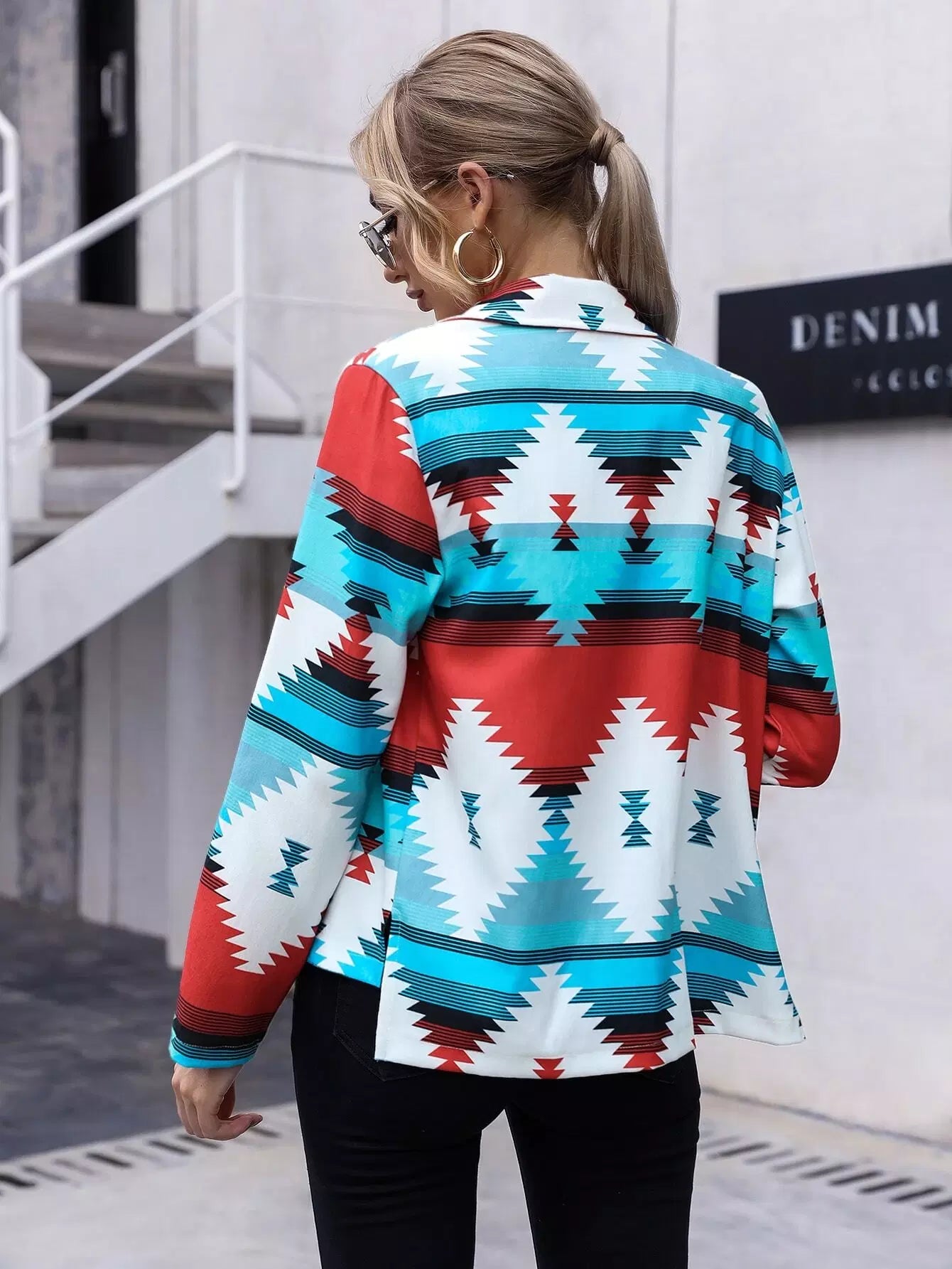 للنساء - سترة ذات صدر واحد بطباعة جغرافية