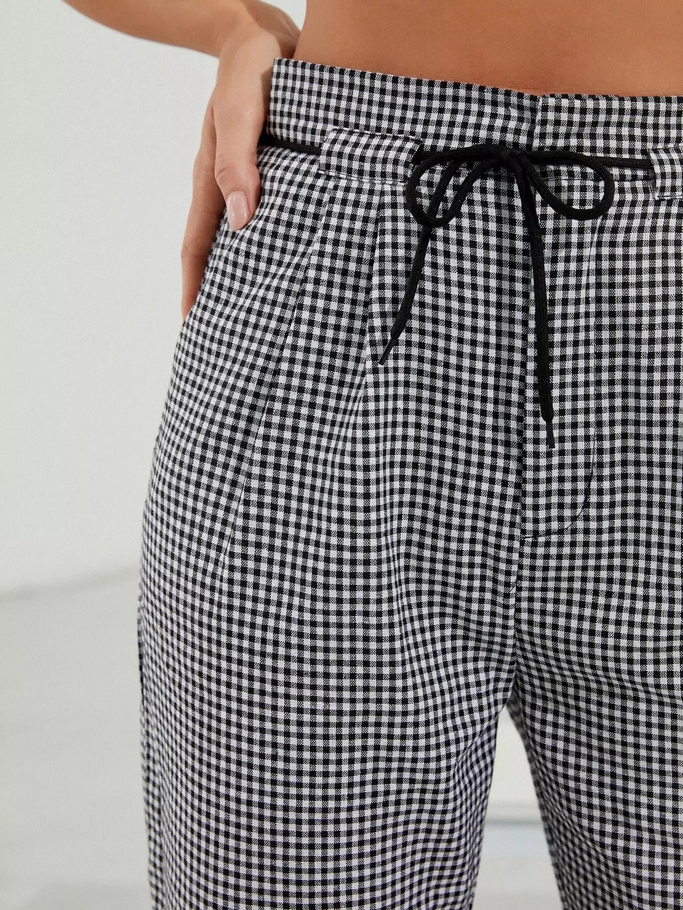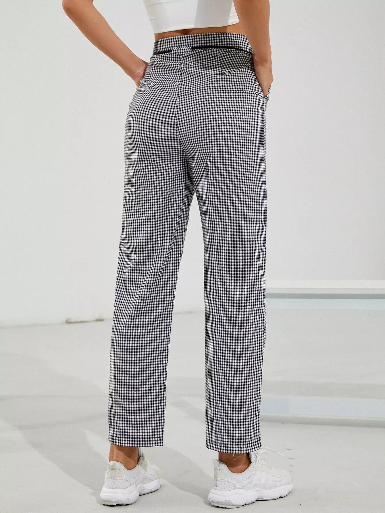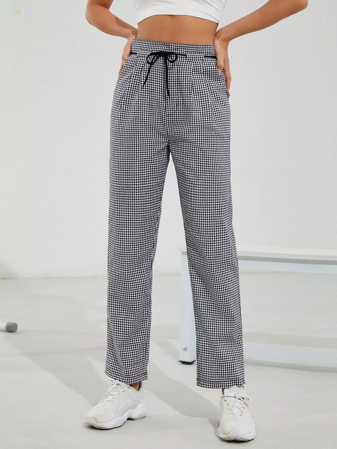 للنساء - بنطال مستقيم الأرجل بربطة أمامية من القماش القطني
