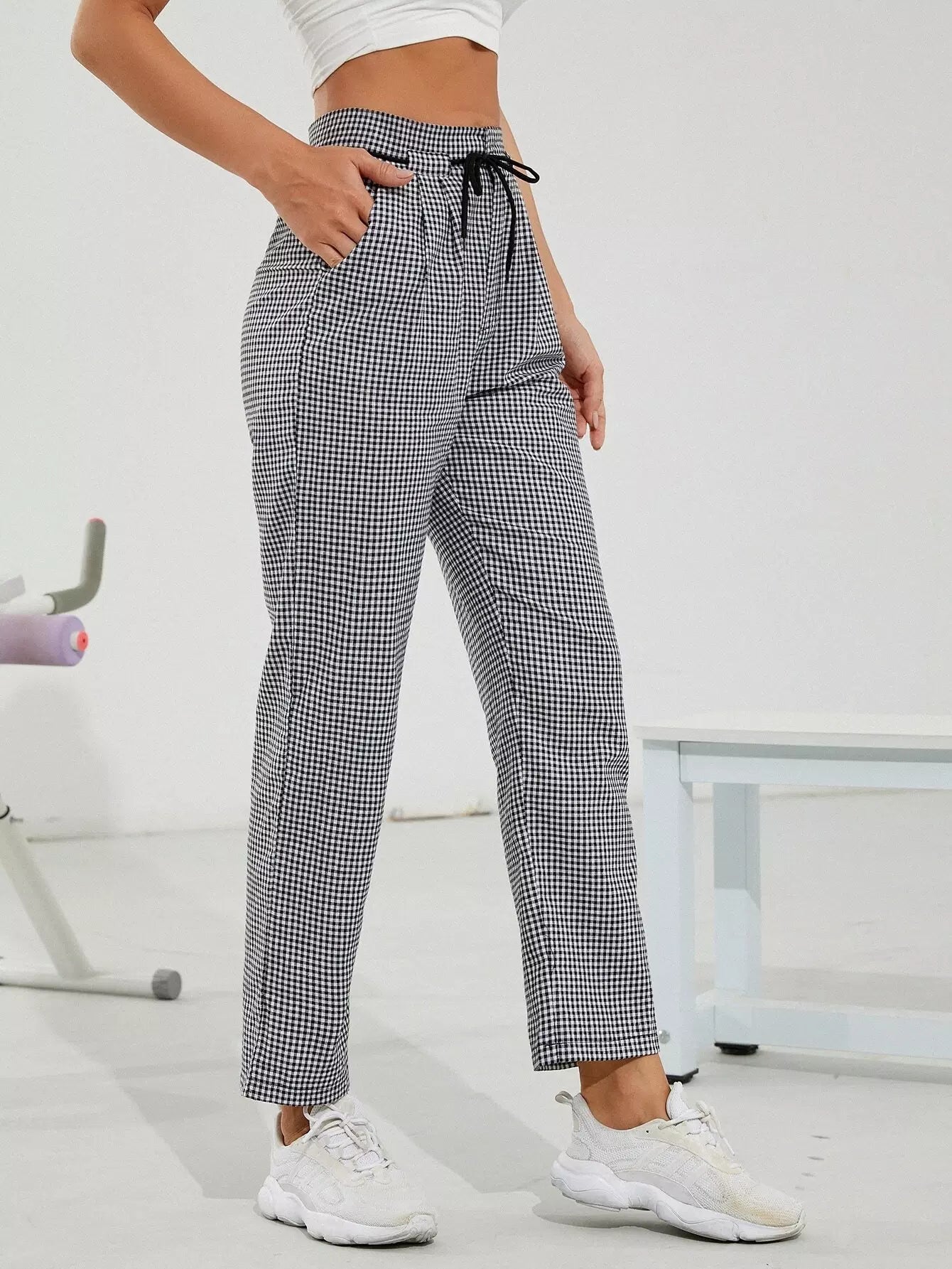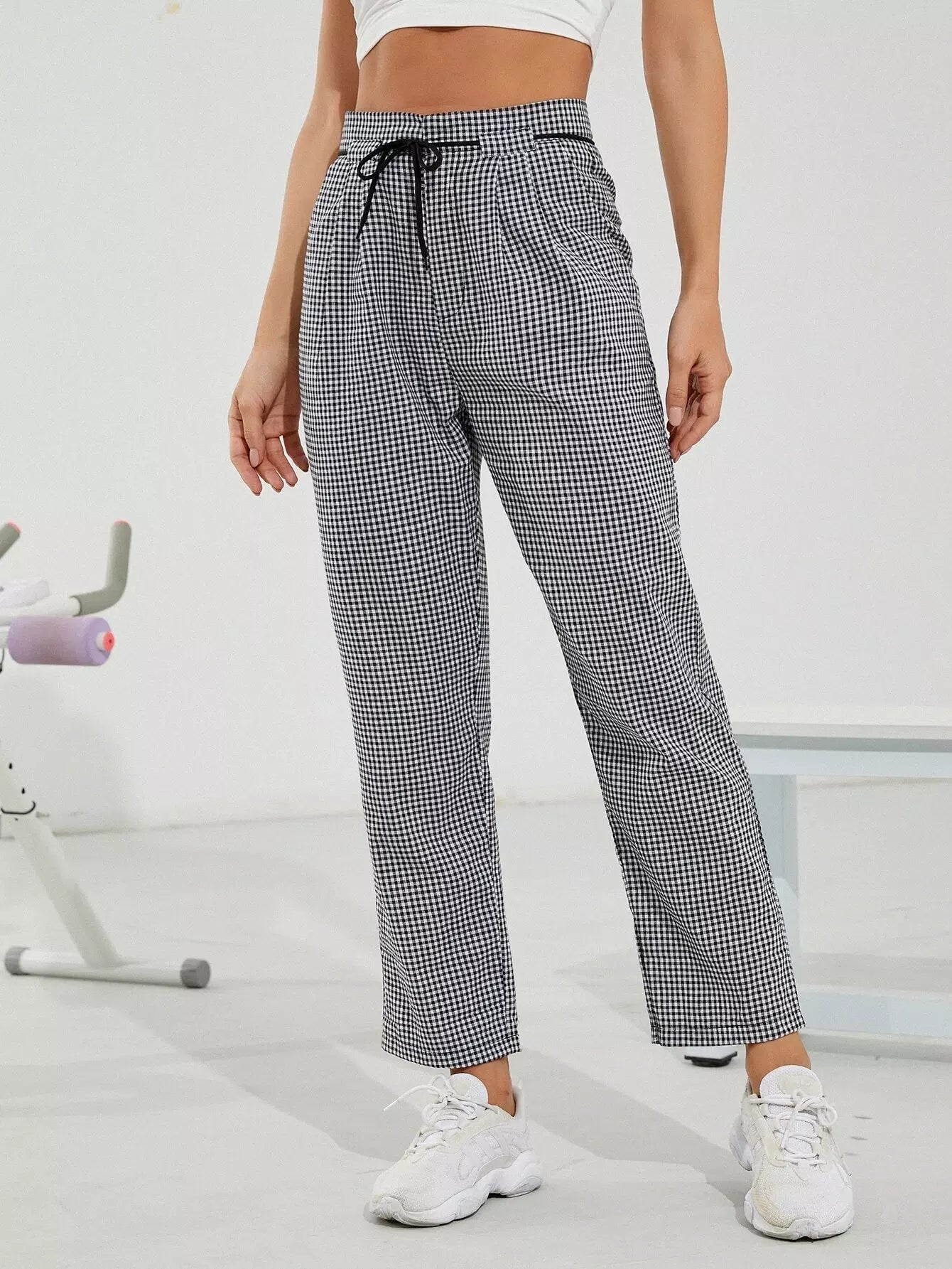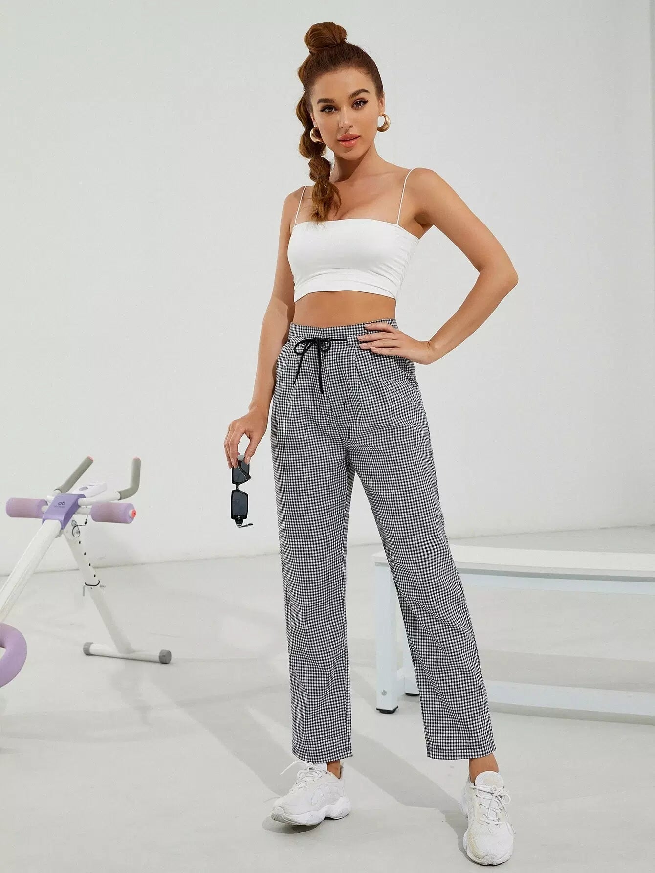 للنساء - بنطال مستقيم الأرجل بربطة أمامية من القماش القطني