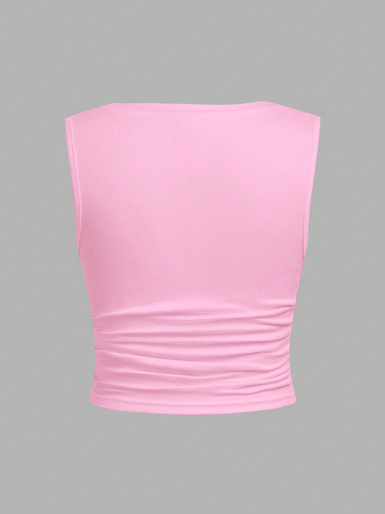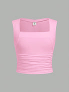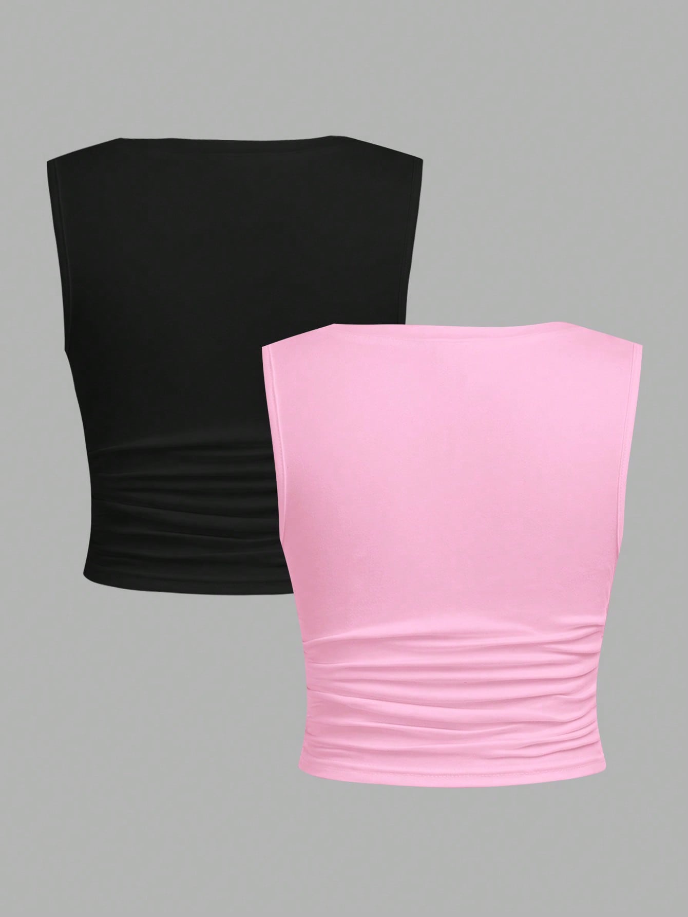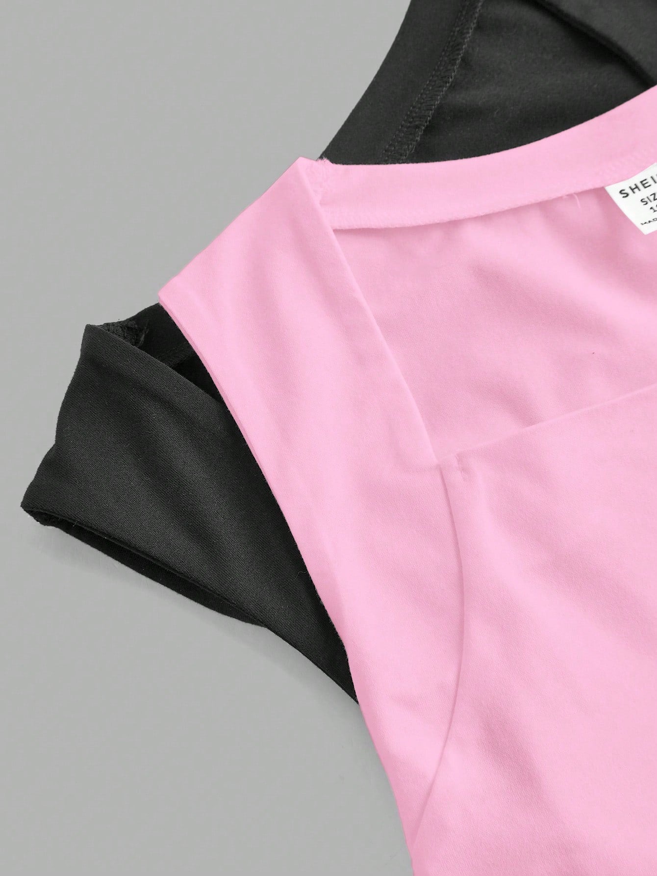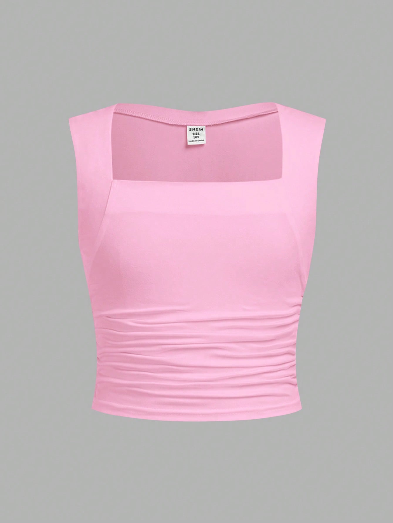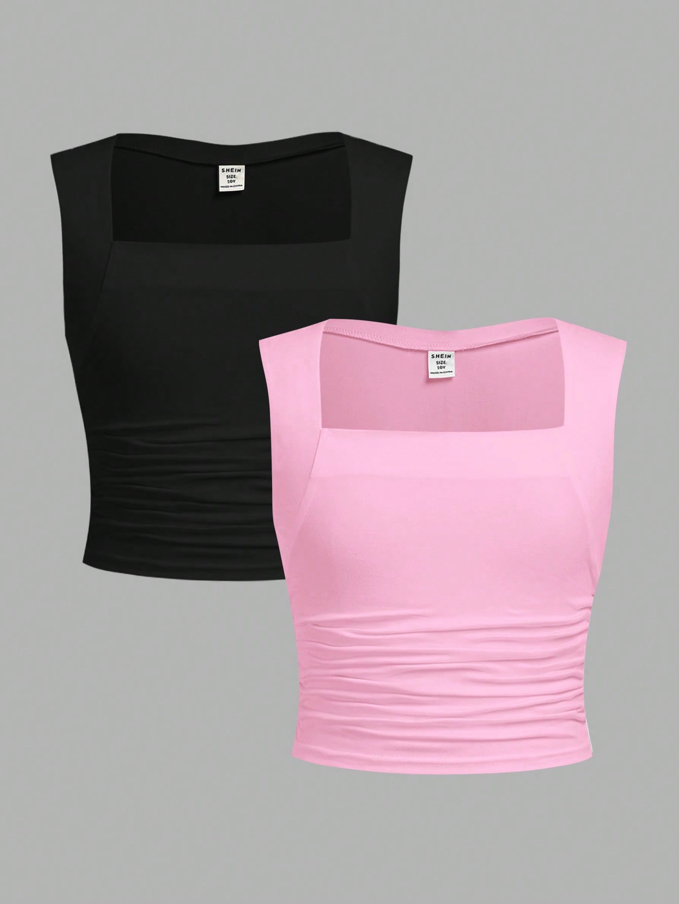 طقم قطعتين من جيرليزم للفتيات المراهقات، تصميم بسيط ومريح، قميص داخلي ضيق بياقة مربعة