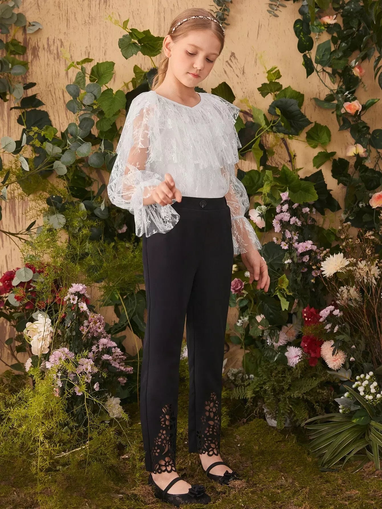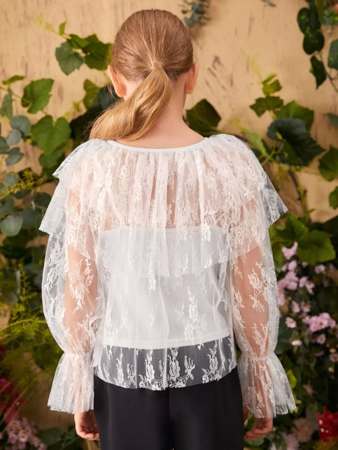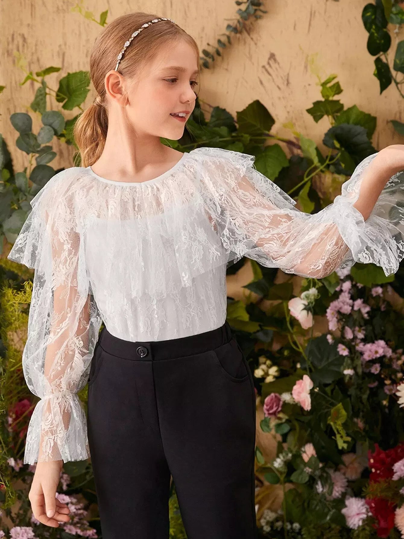 بلوزة للبنات مكونة من قطعة واحدة مكشكشة بأكمام منفوشة