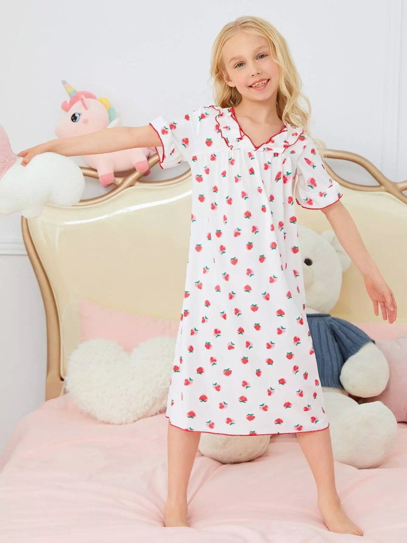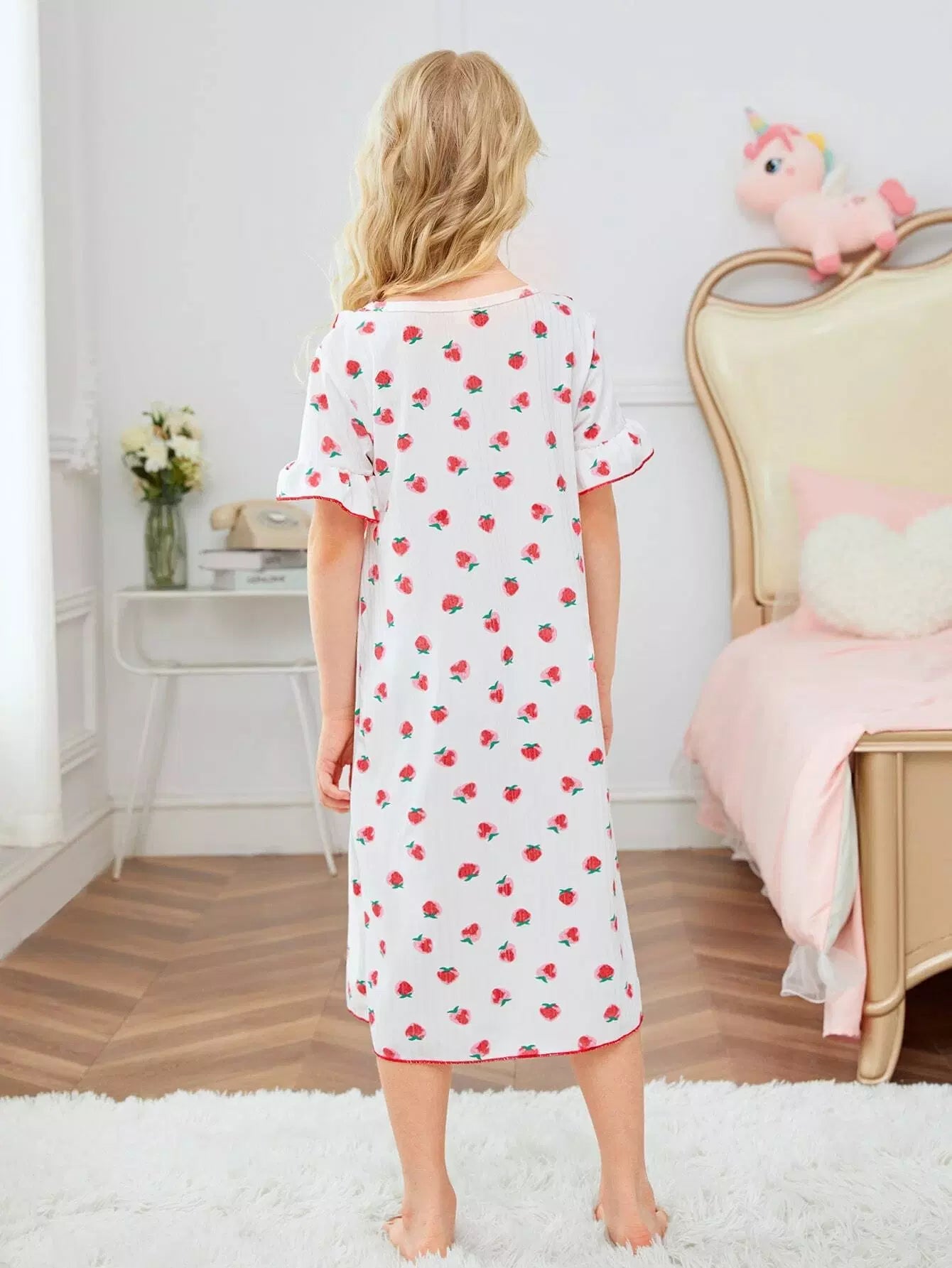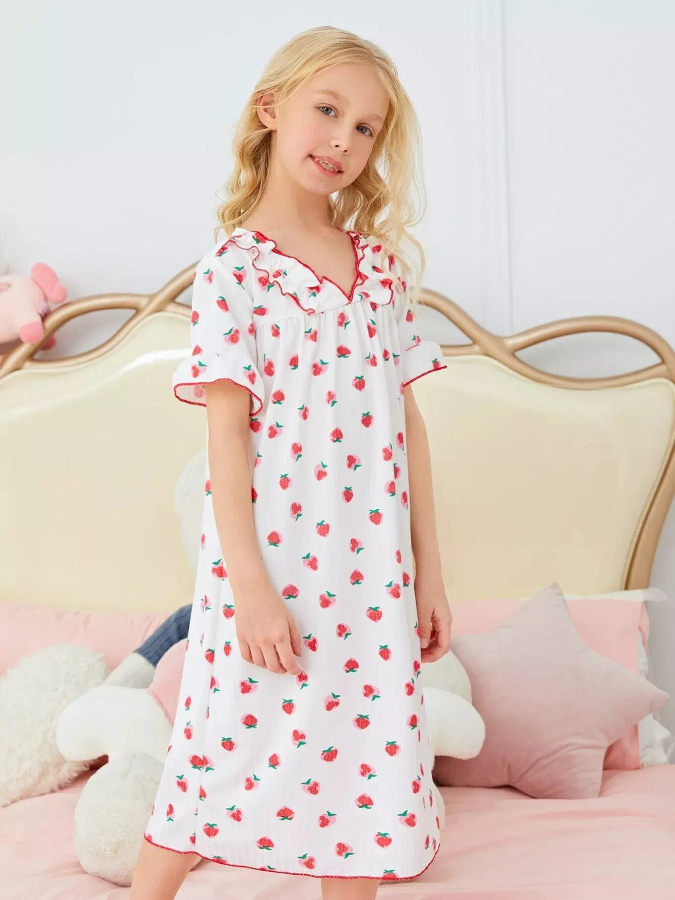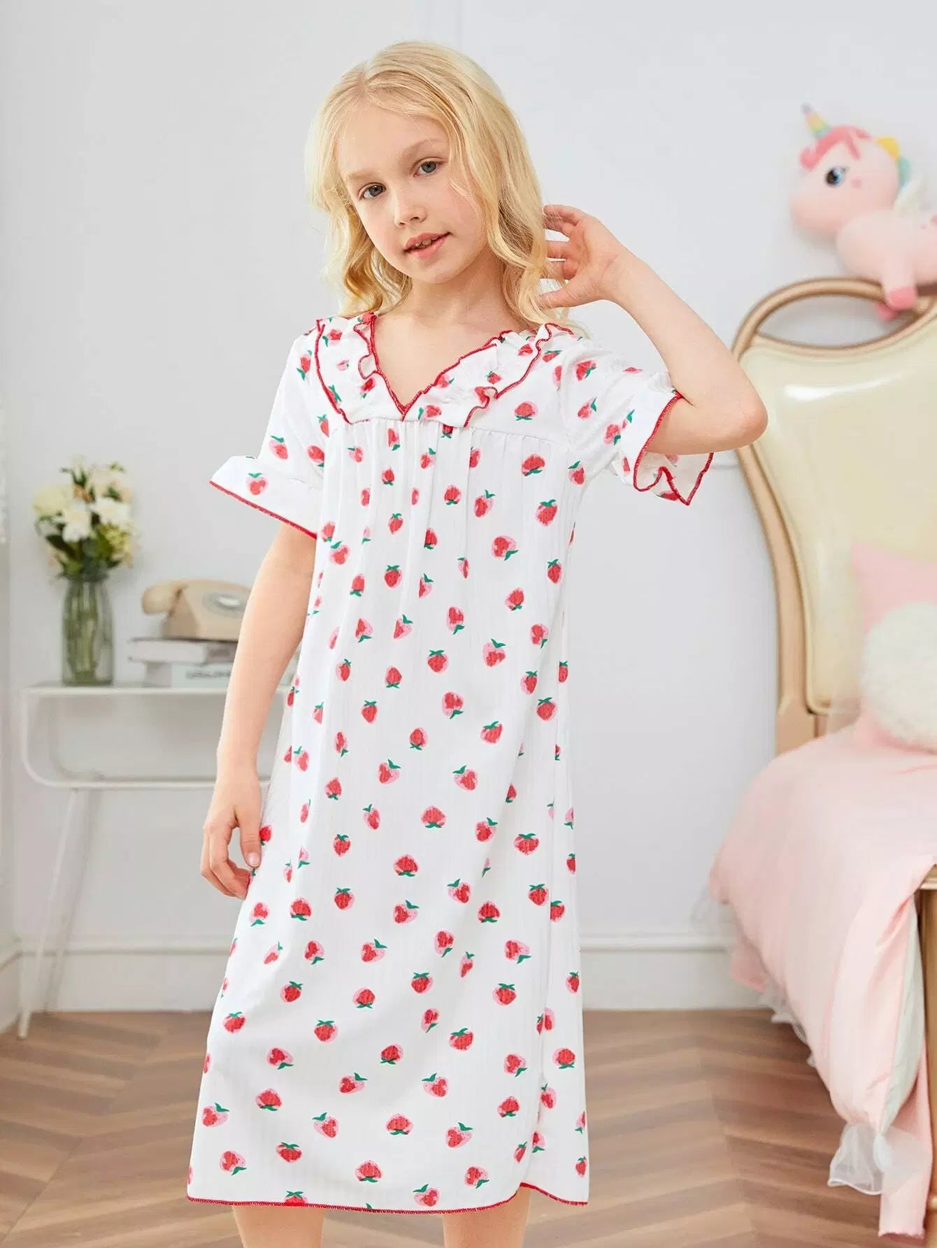 فستان استرخاء للبنات بطبعة فاكهة مطبوع عليه بالكامل بنقشة خس