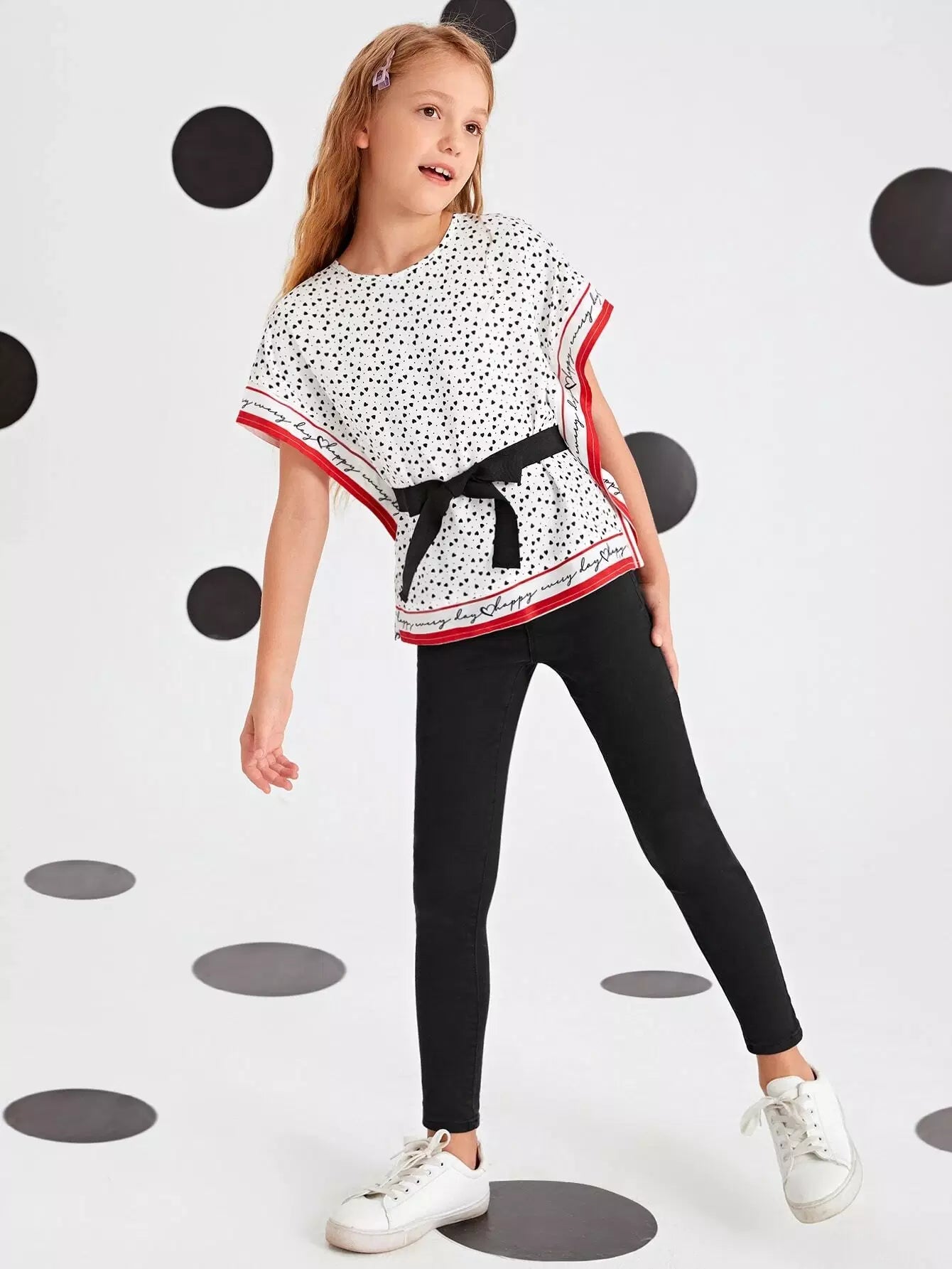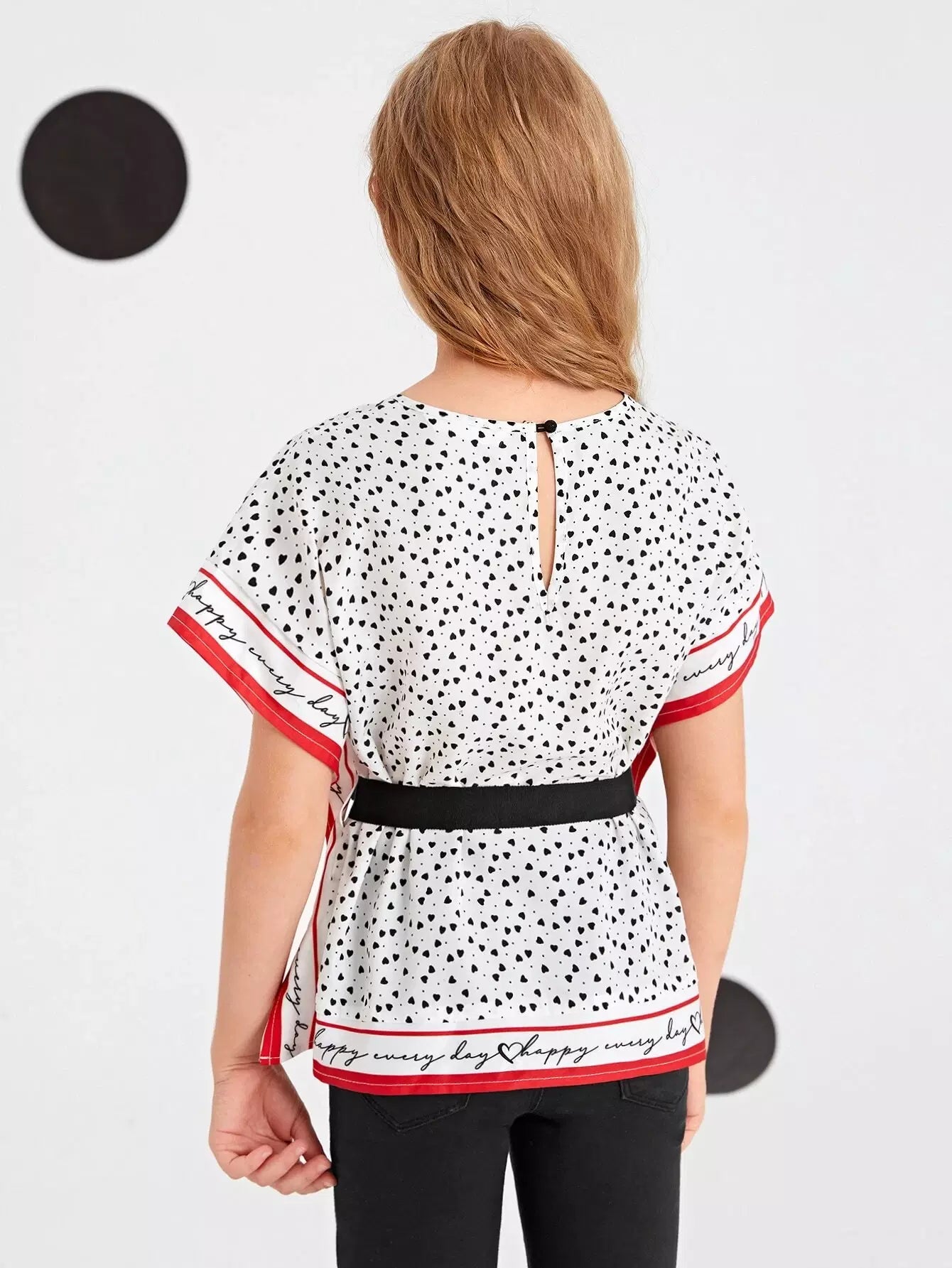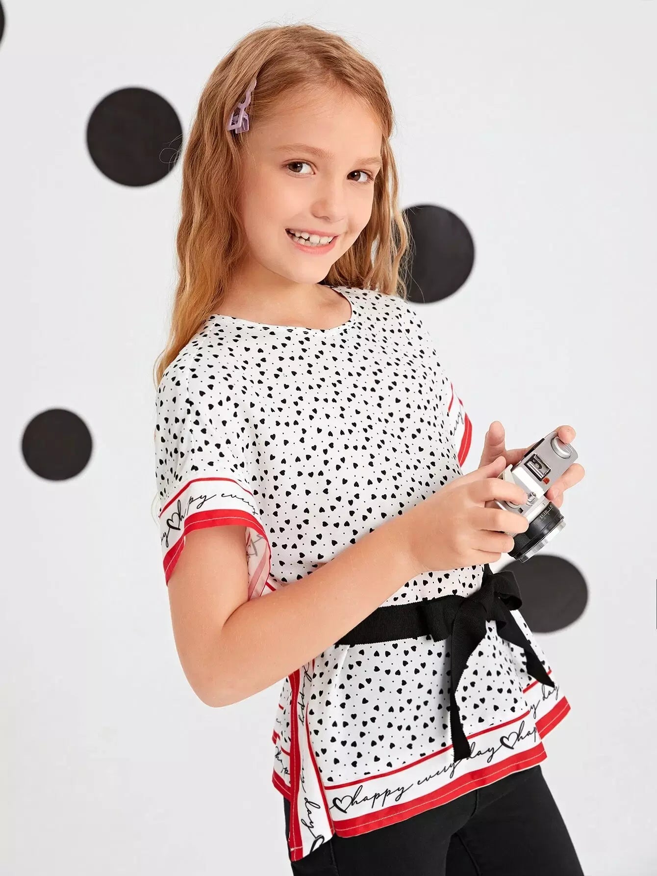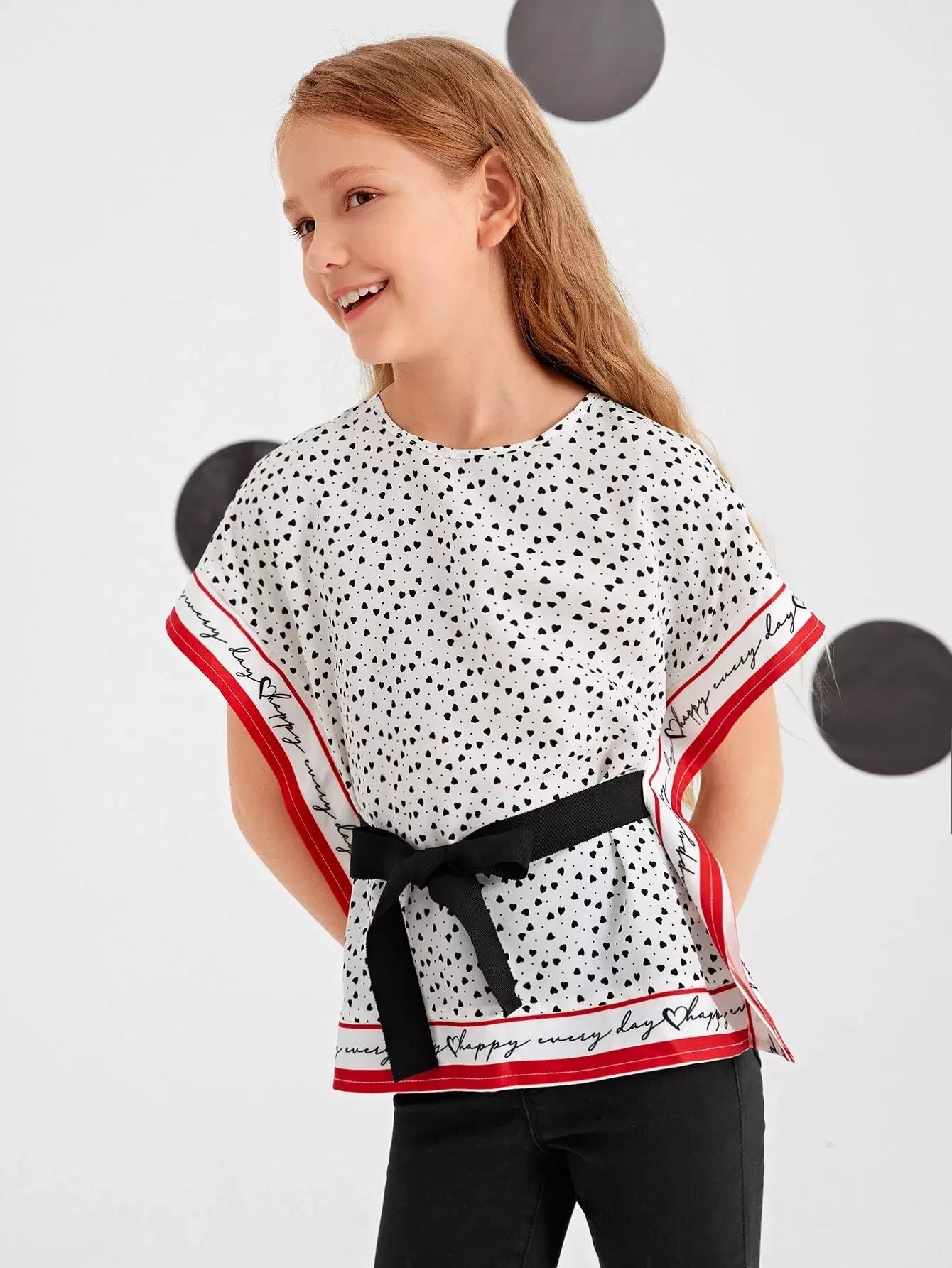 توب ذاتي بطبعة قلب وأحرف متباينة للفتيات بدون حزام