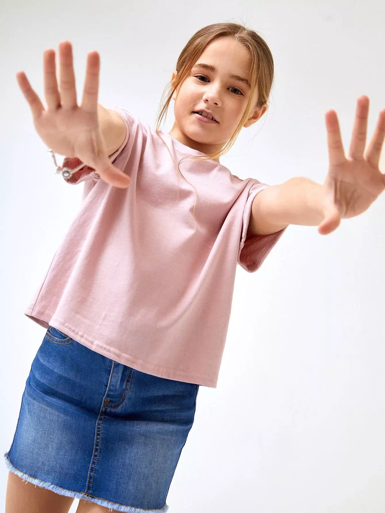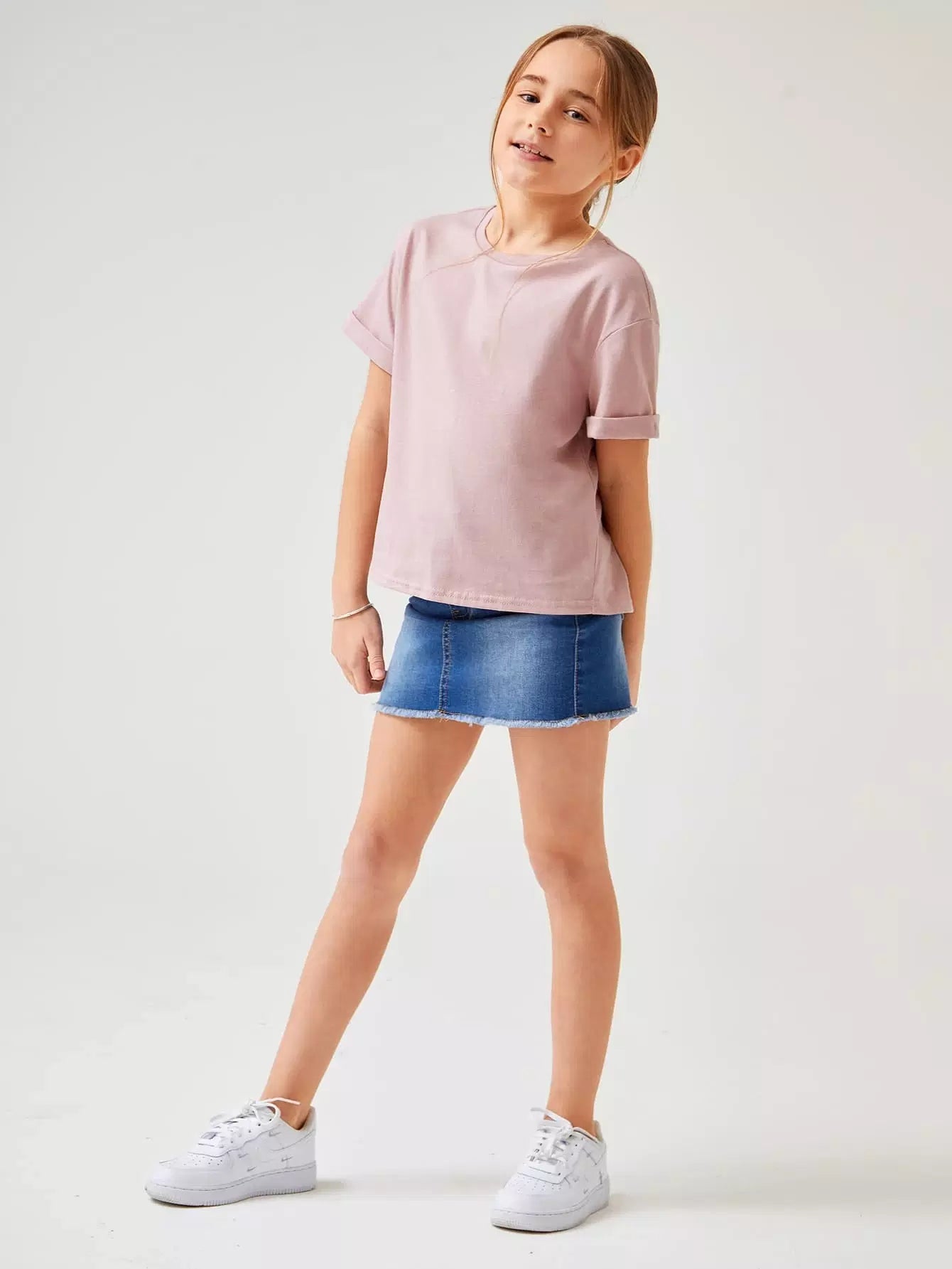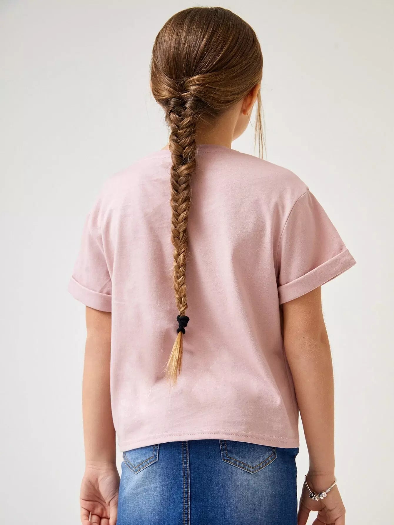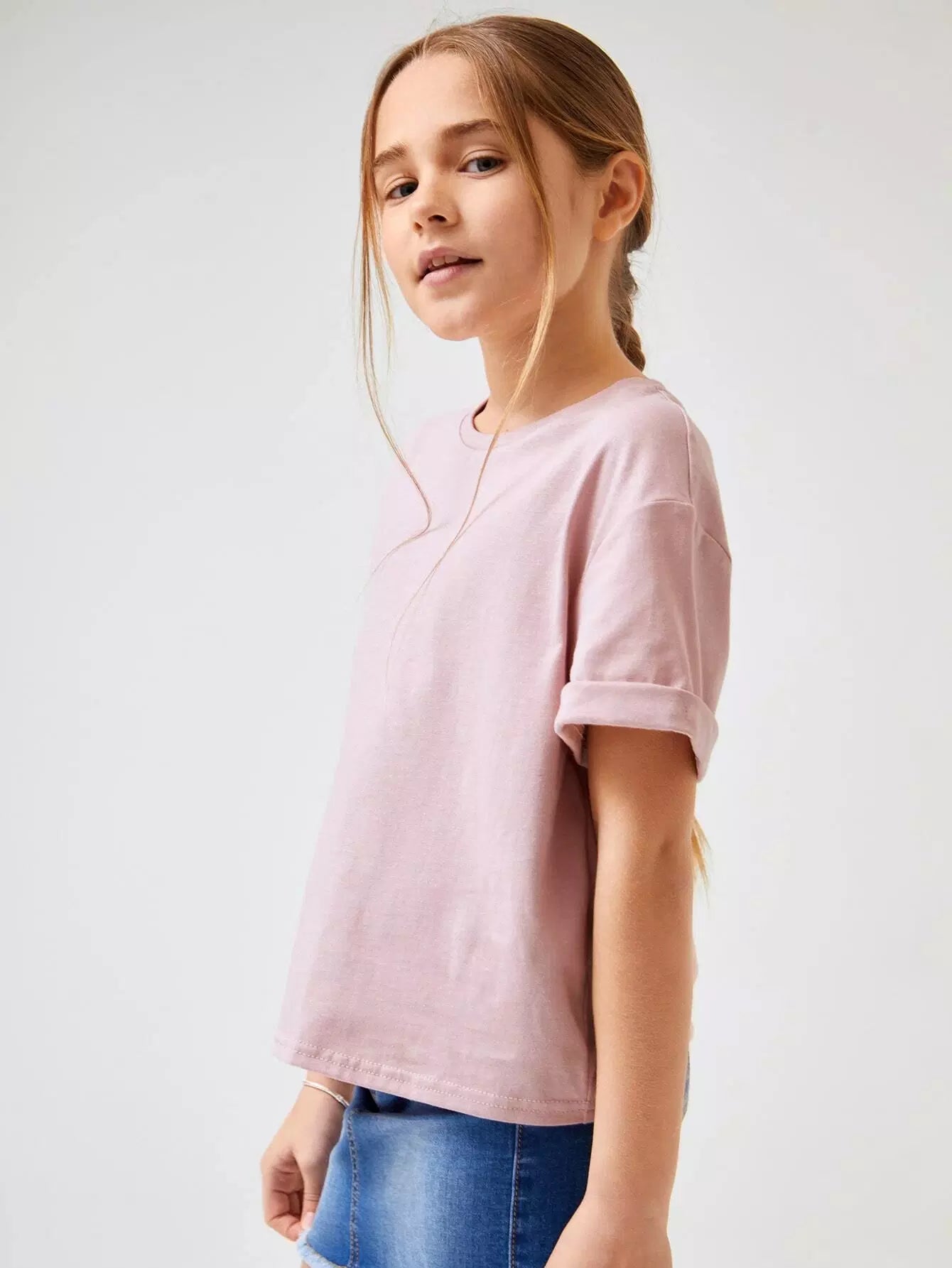 تي شيرت قطني بأكمام مطوية للبنات