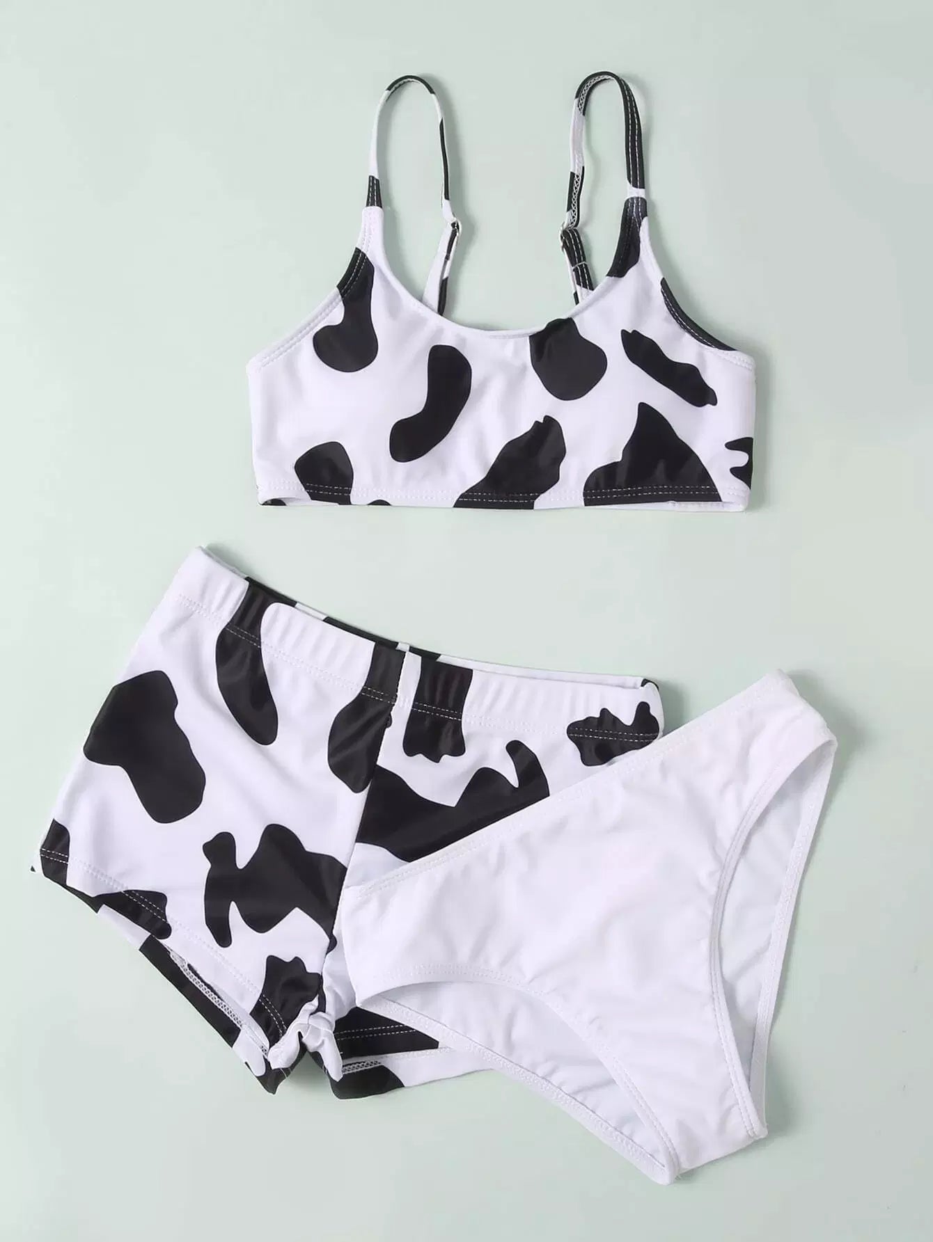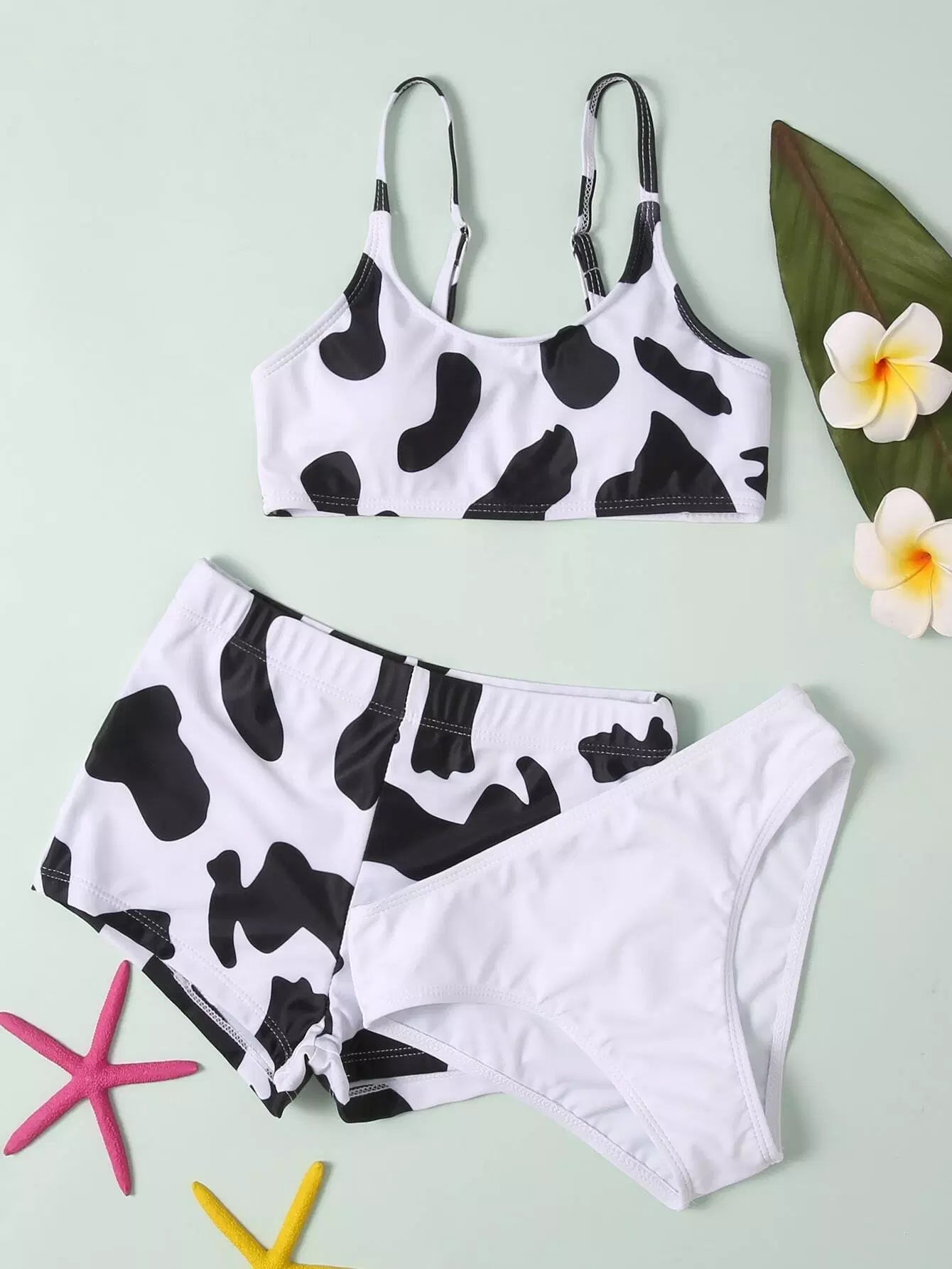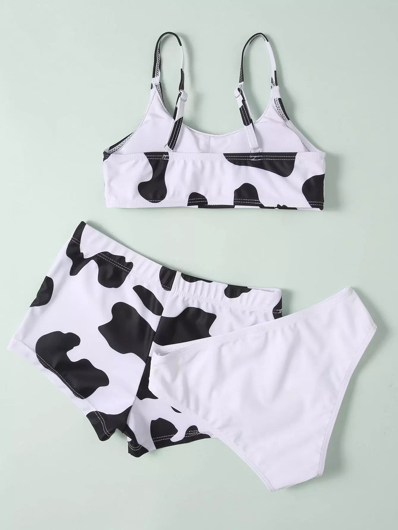 ملابس سباحة بيكيني قصير بنقشة بقرة للفتيات