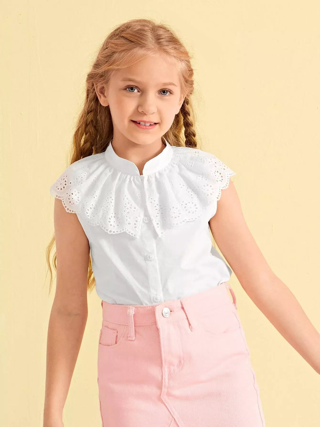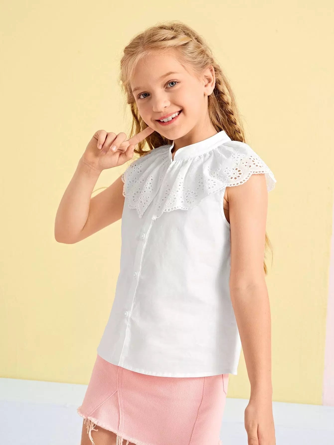 بلوزة بياقة مطرزة بياقة واحدة مطرزة للبنات