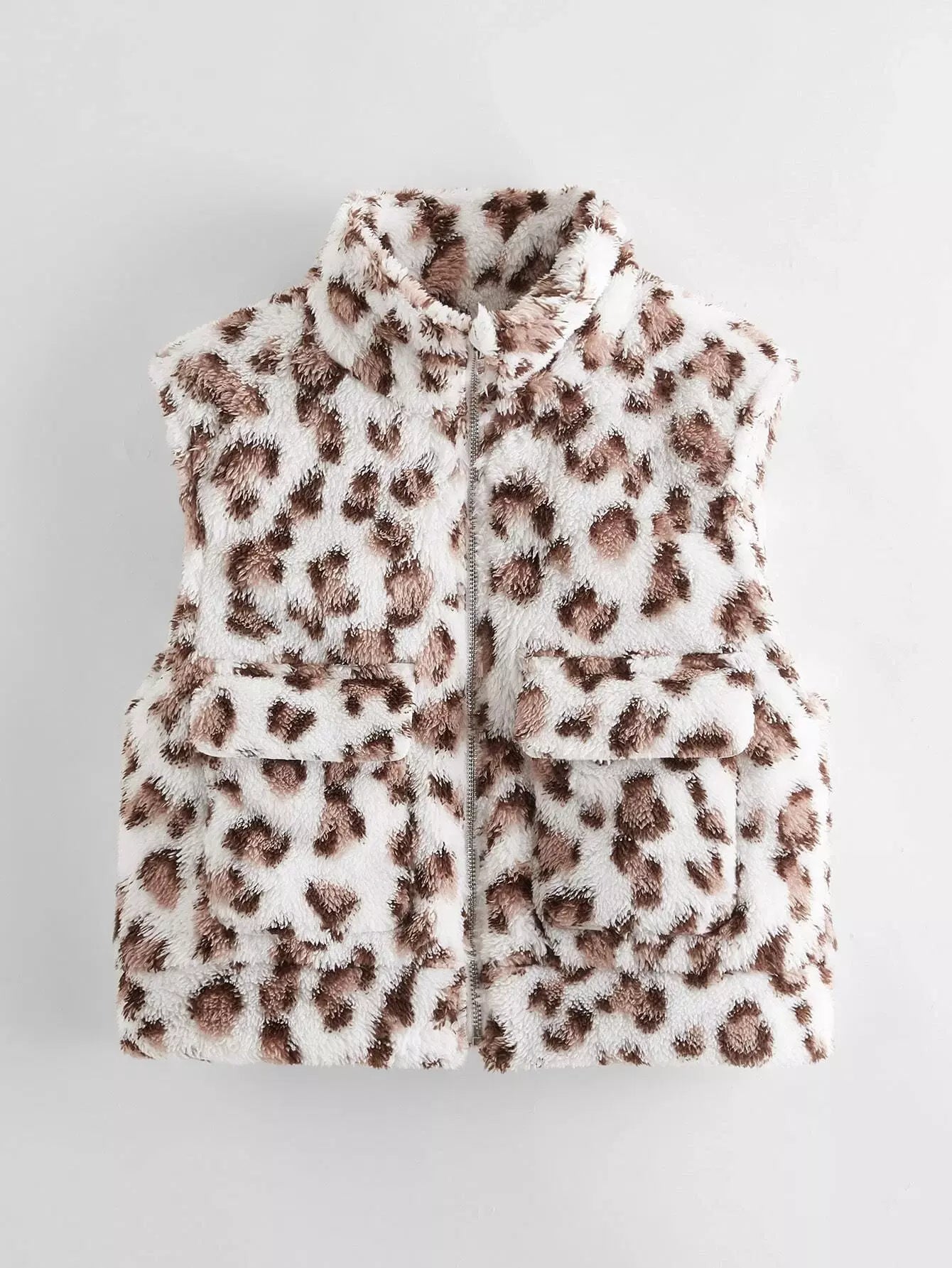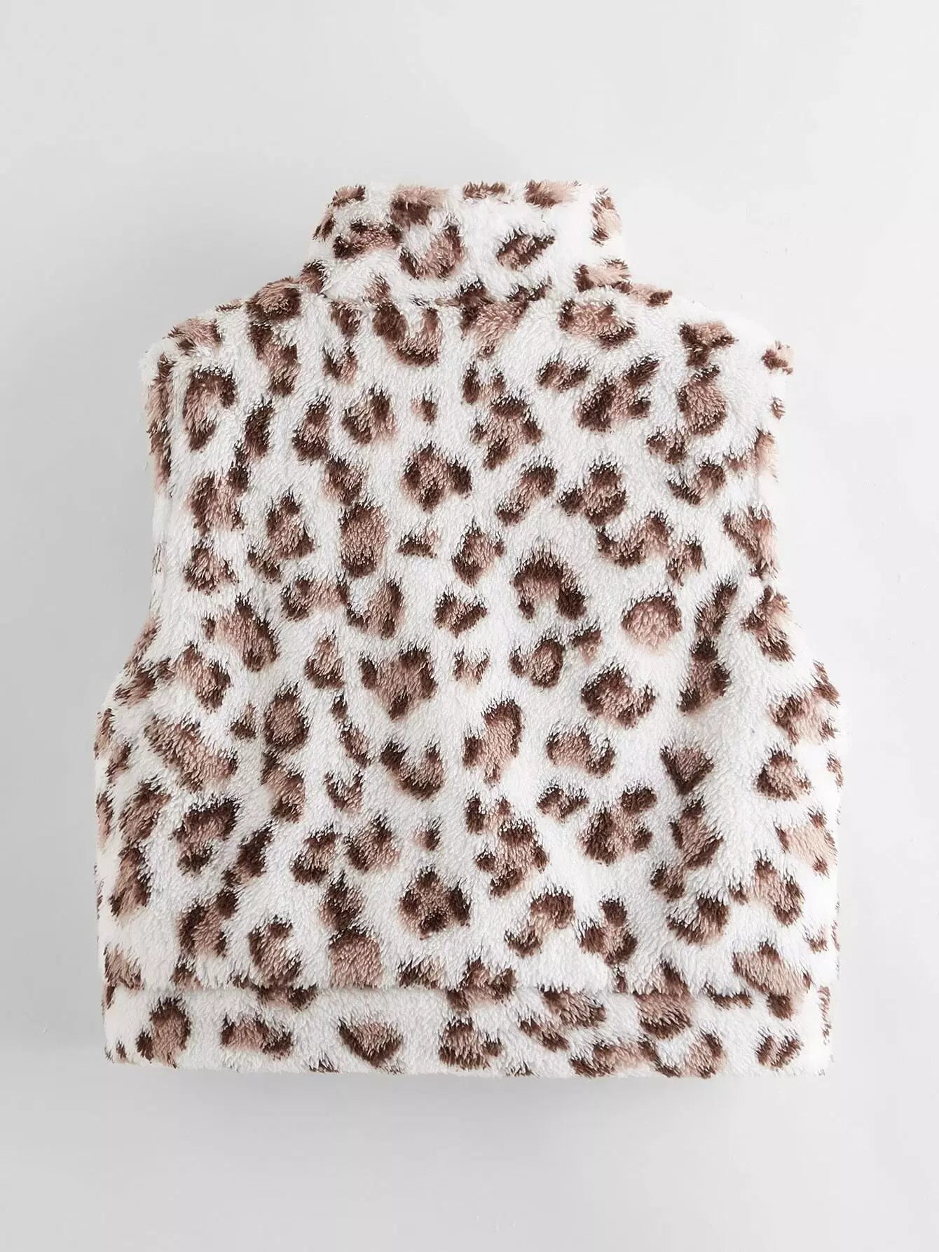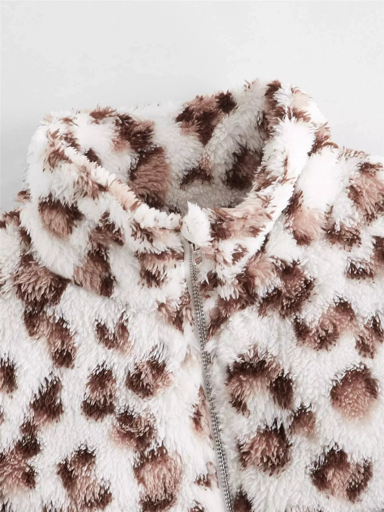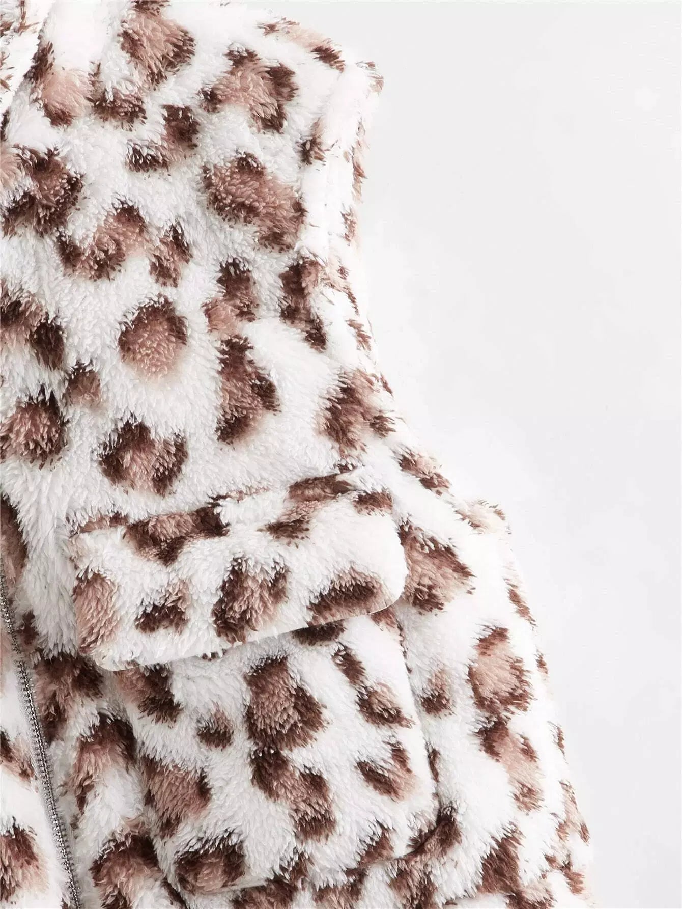 جاكيت فتيات بجيب أمامي بغطاء بغطاء من جلد النمر