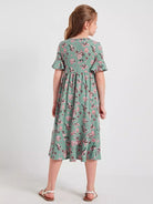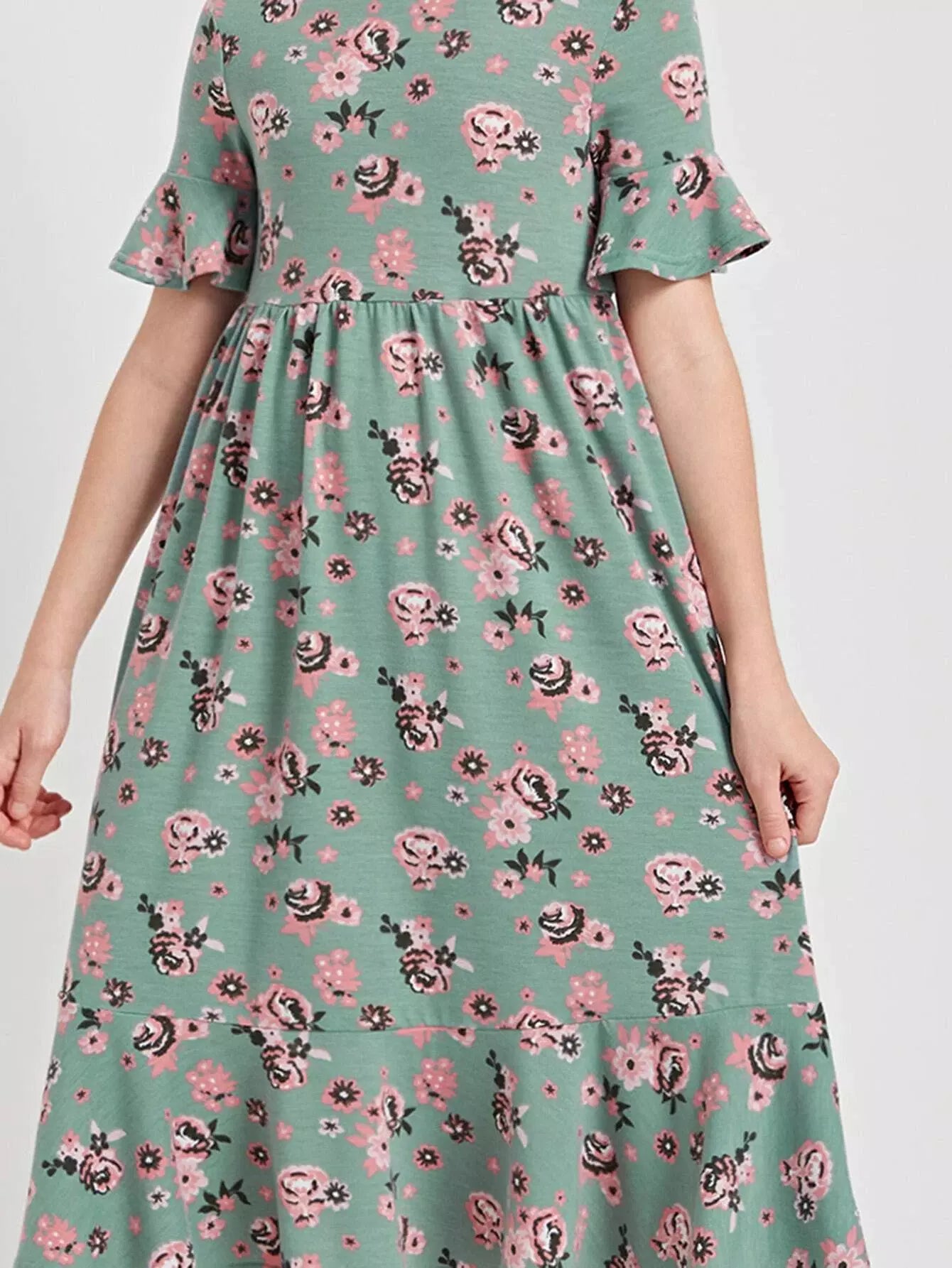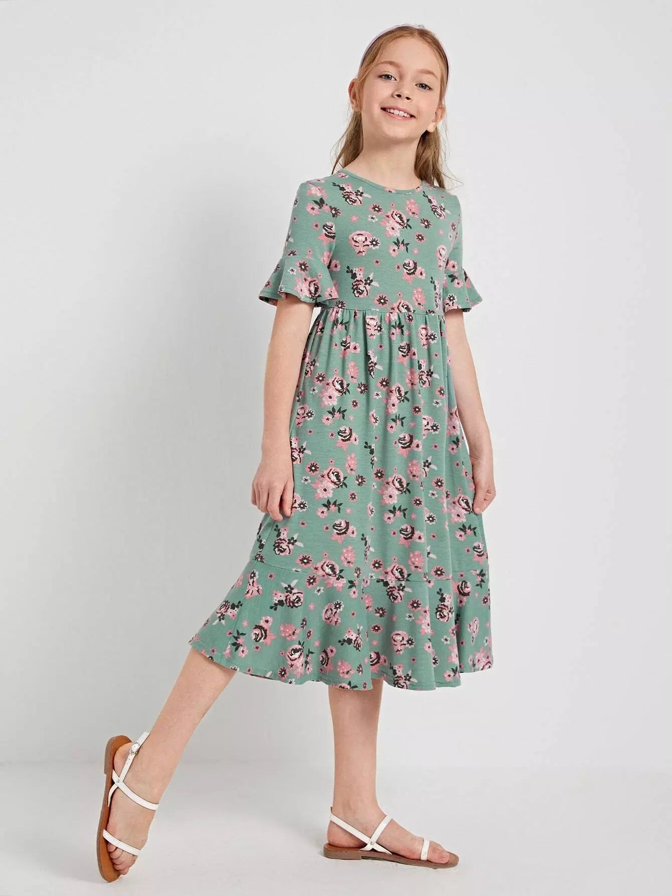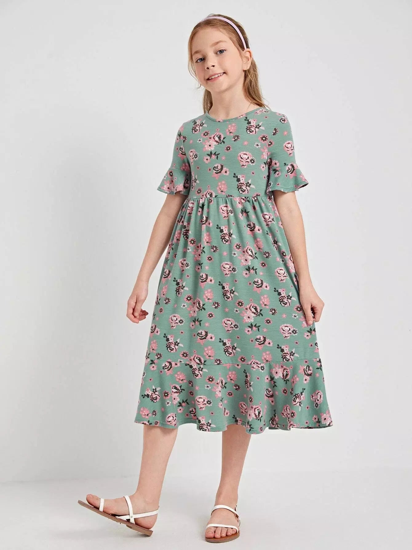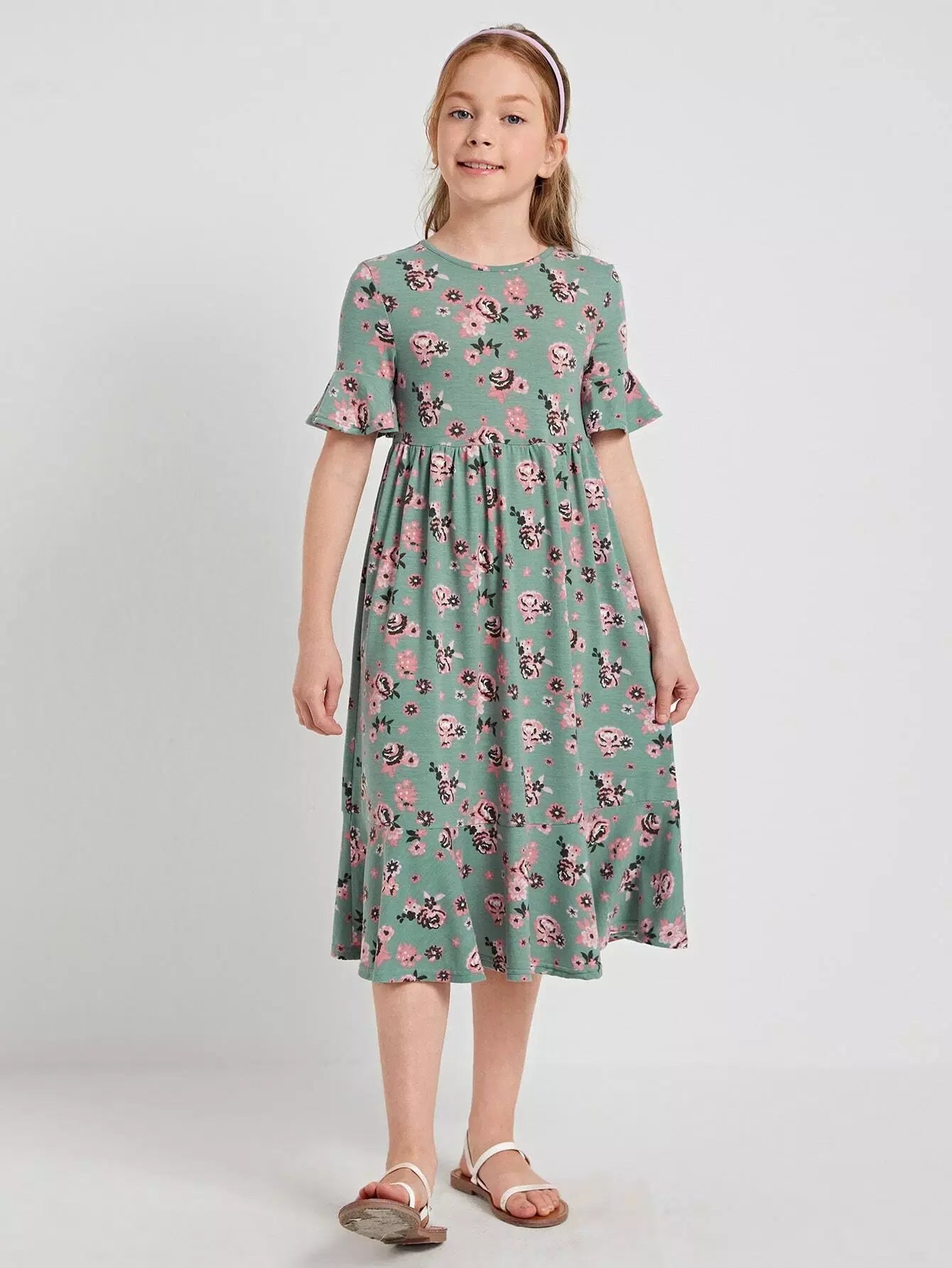 فستان بناتي بأكمام منفوشة ومزين بالزهور