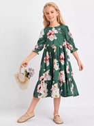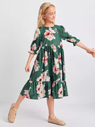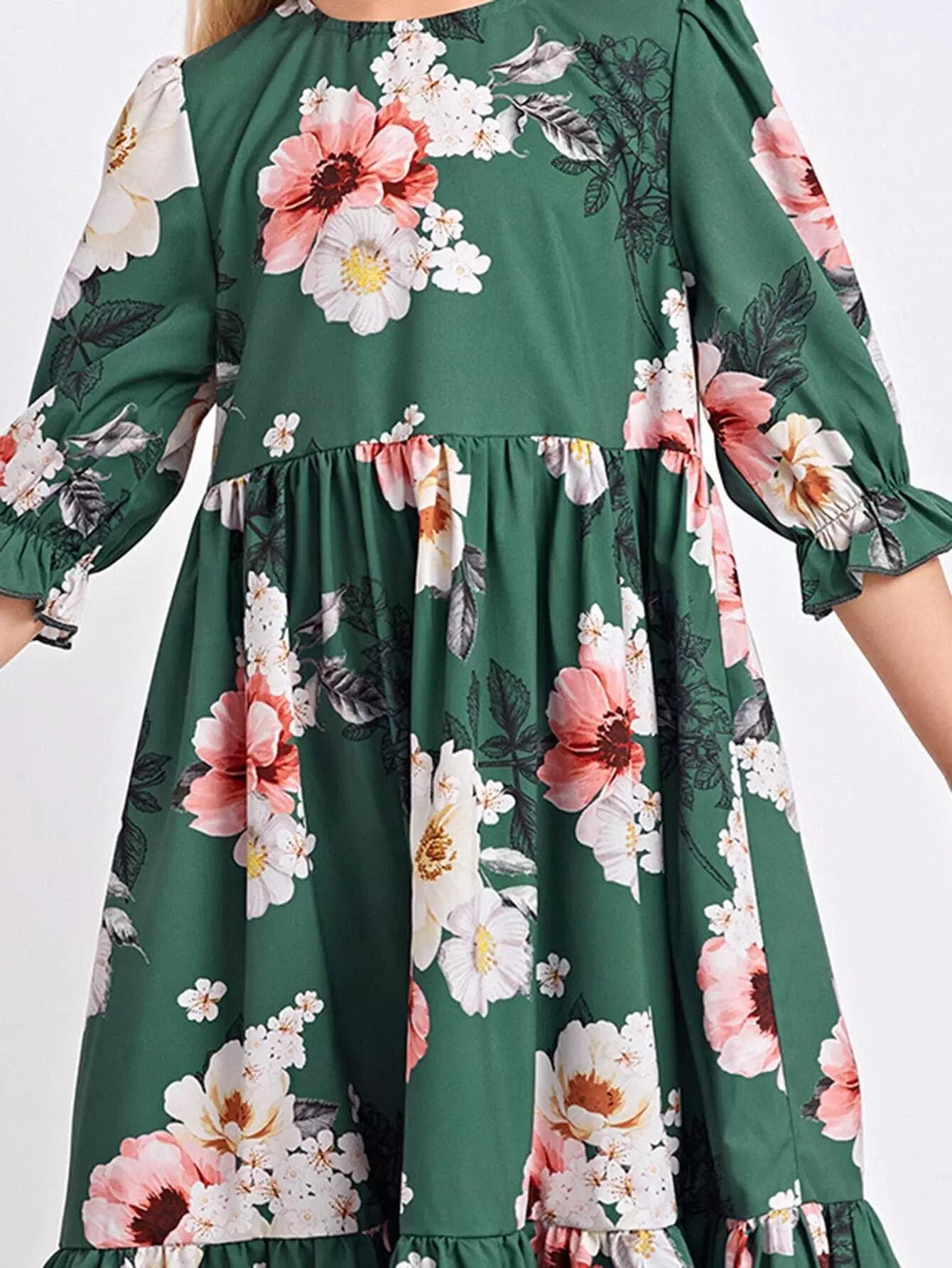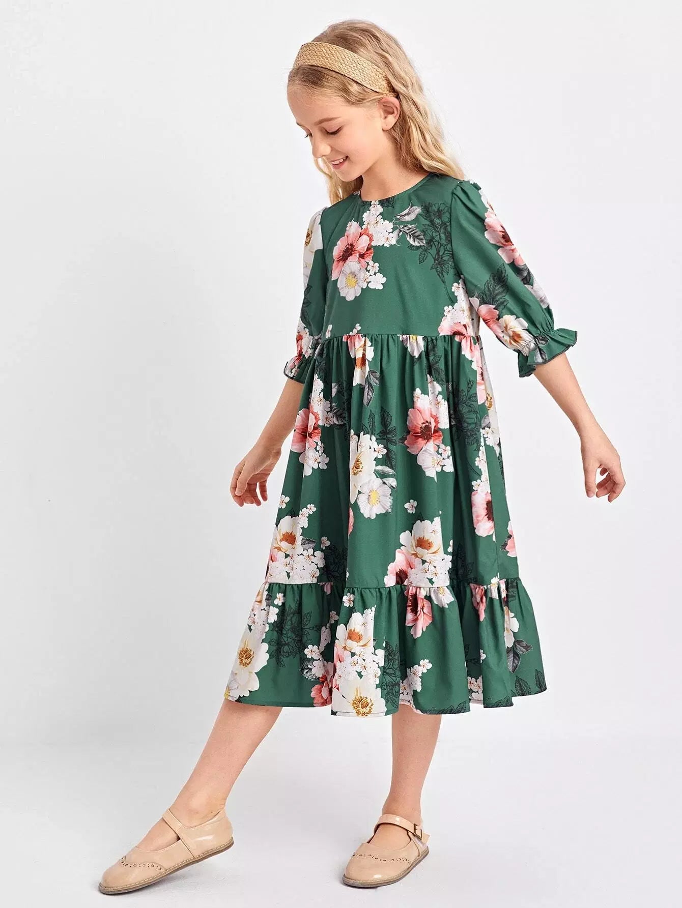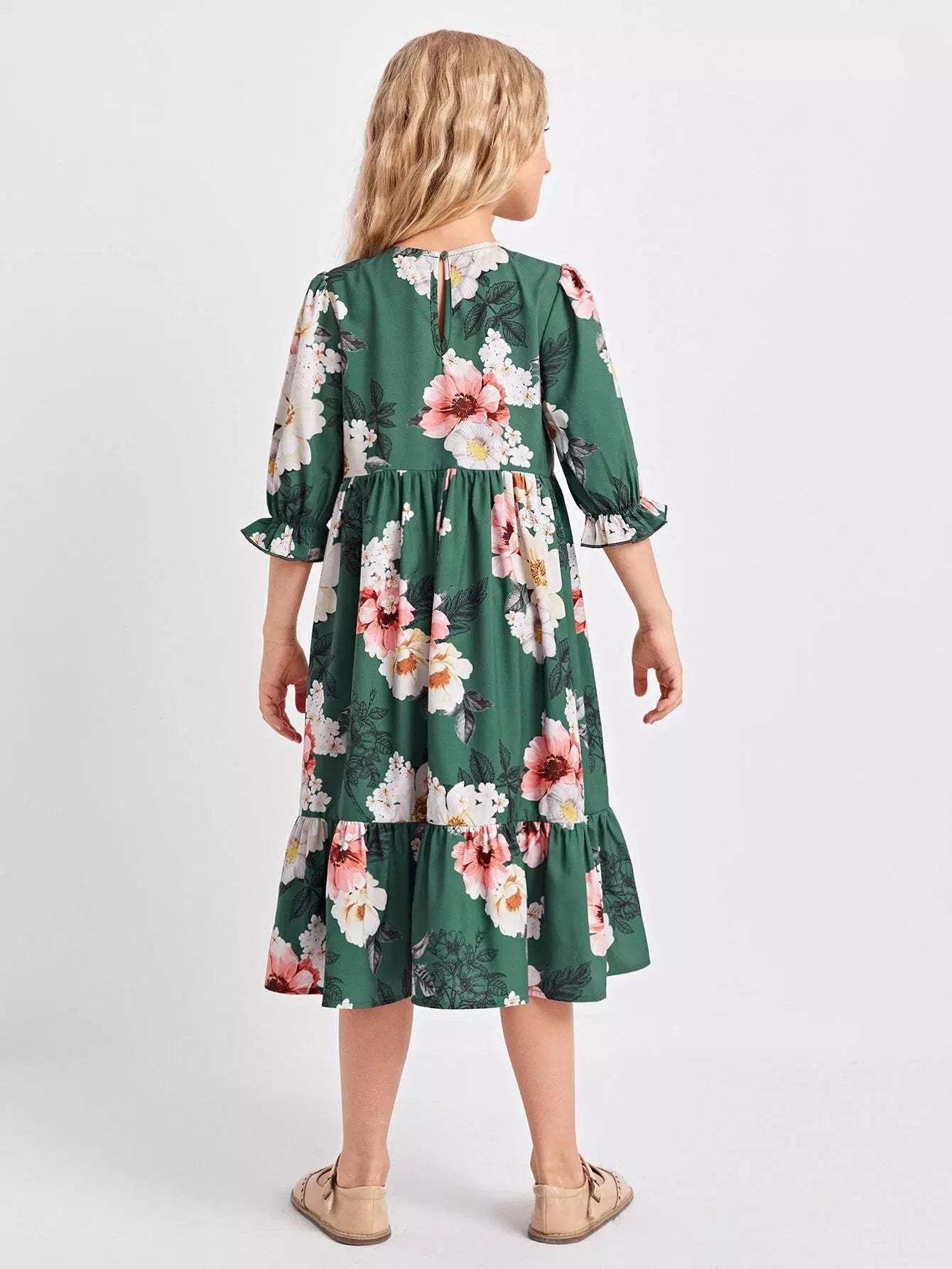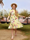 فستان زهري بأكمام منفوشة وحاشية مكشكشة للبنات