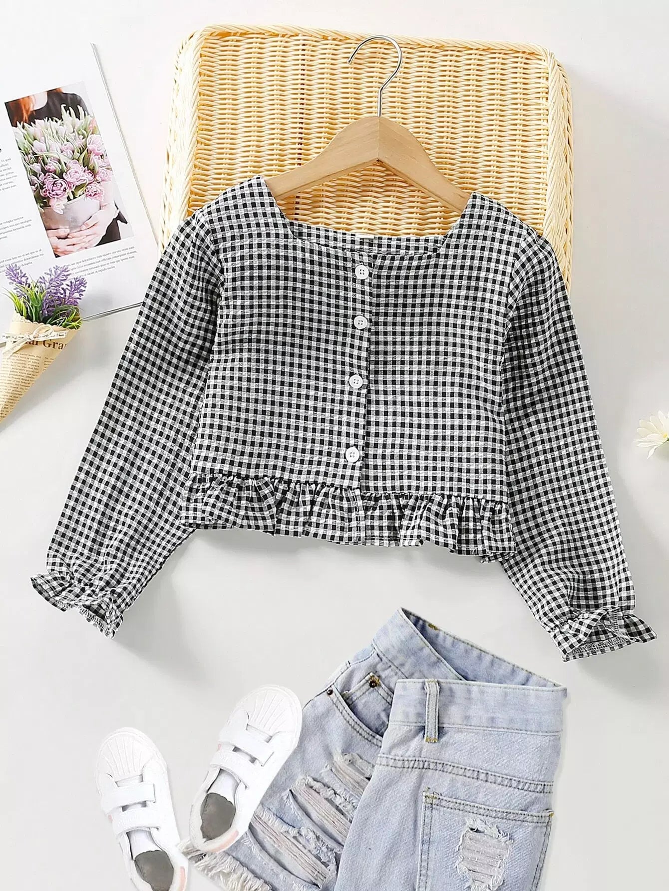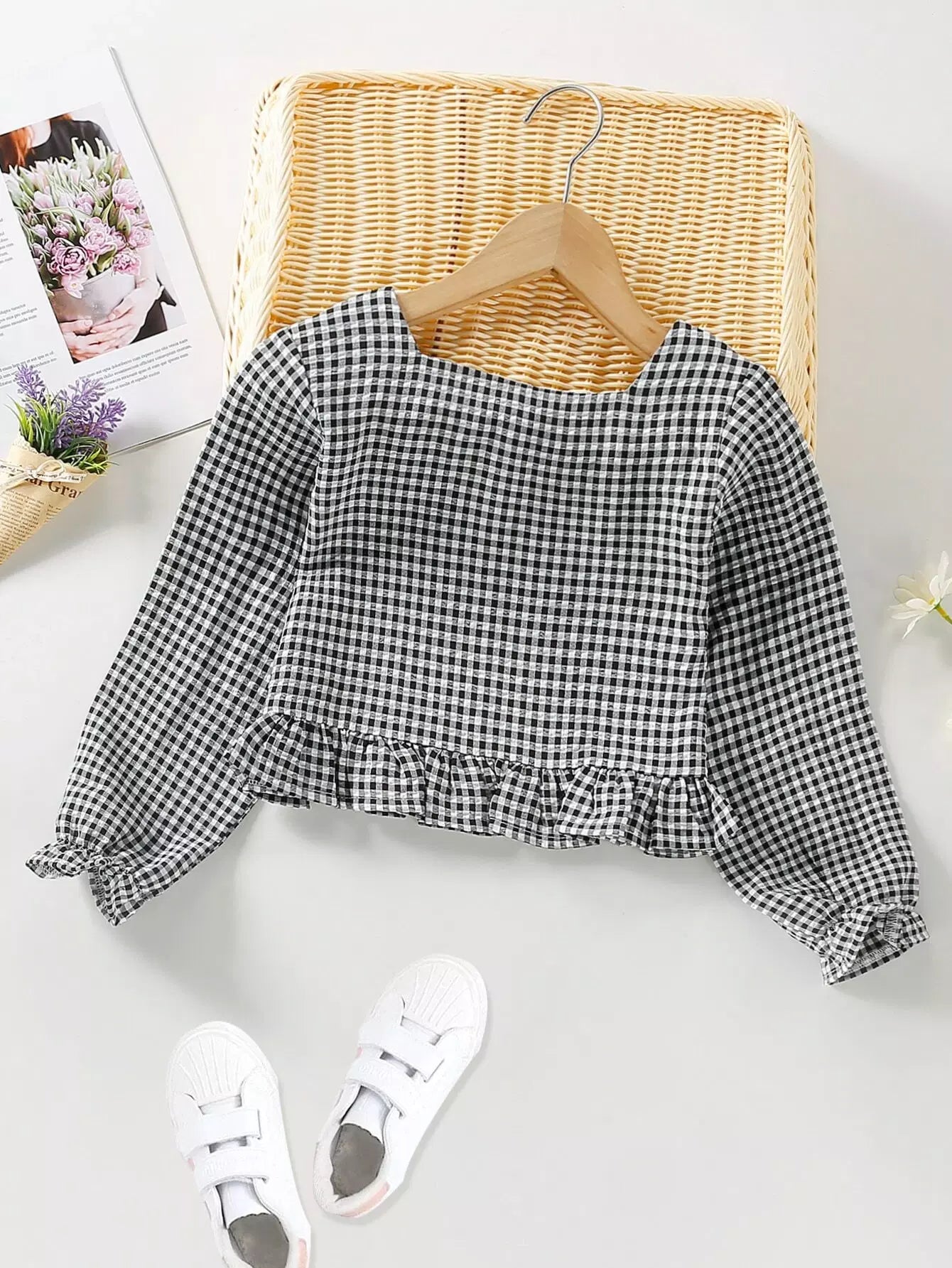 بلوزة بأكمام مكشكشة ذات حافة مكشكشة للبنات