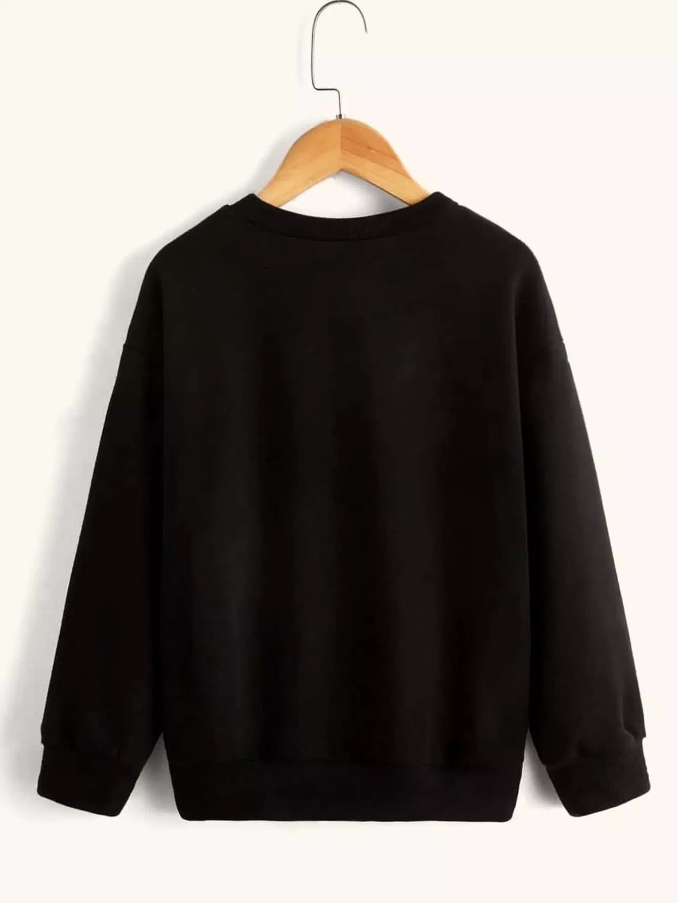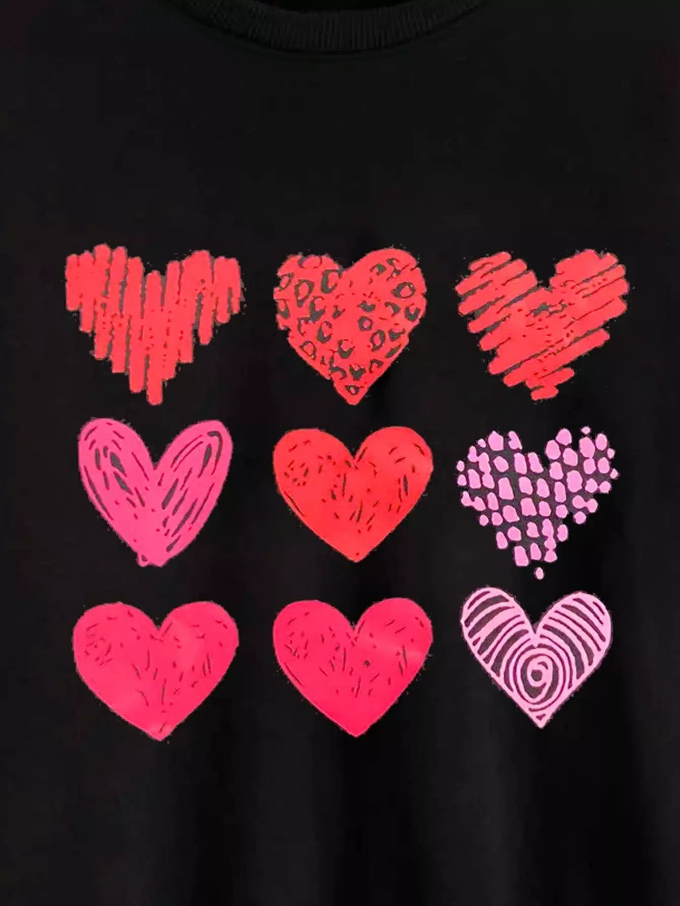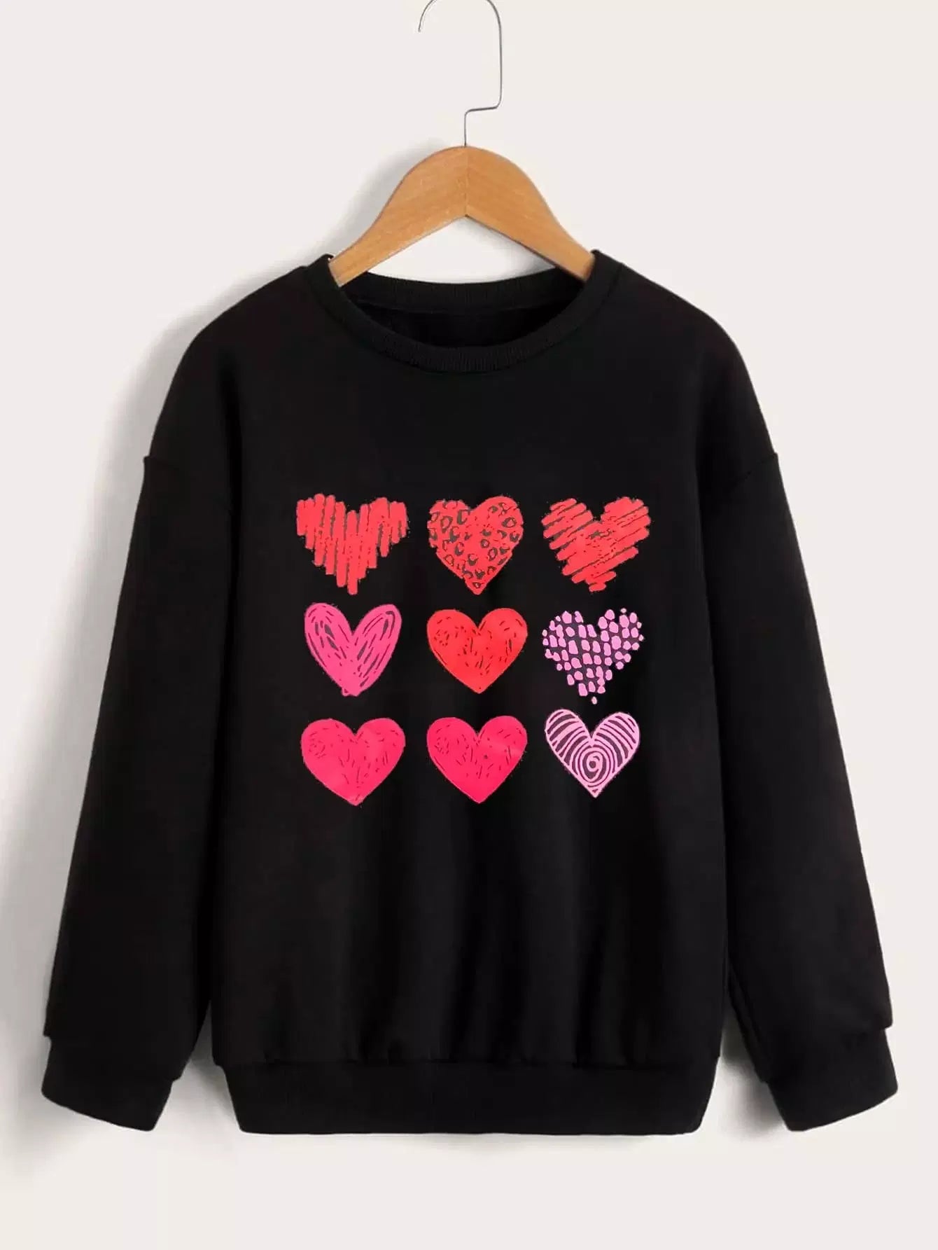 كنزة صوفية منسدلة الكتف بطبعة قلب للبنات