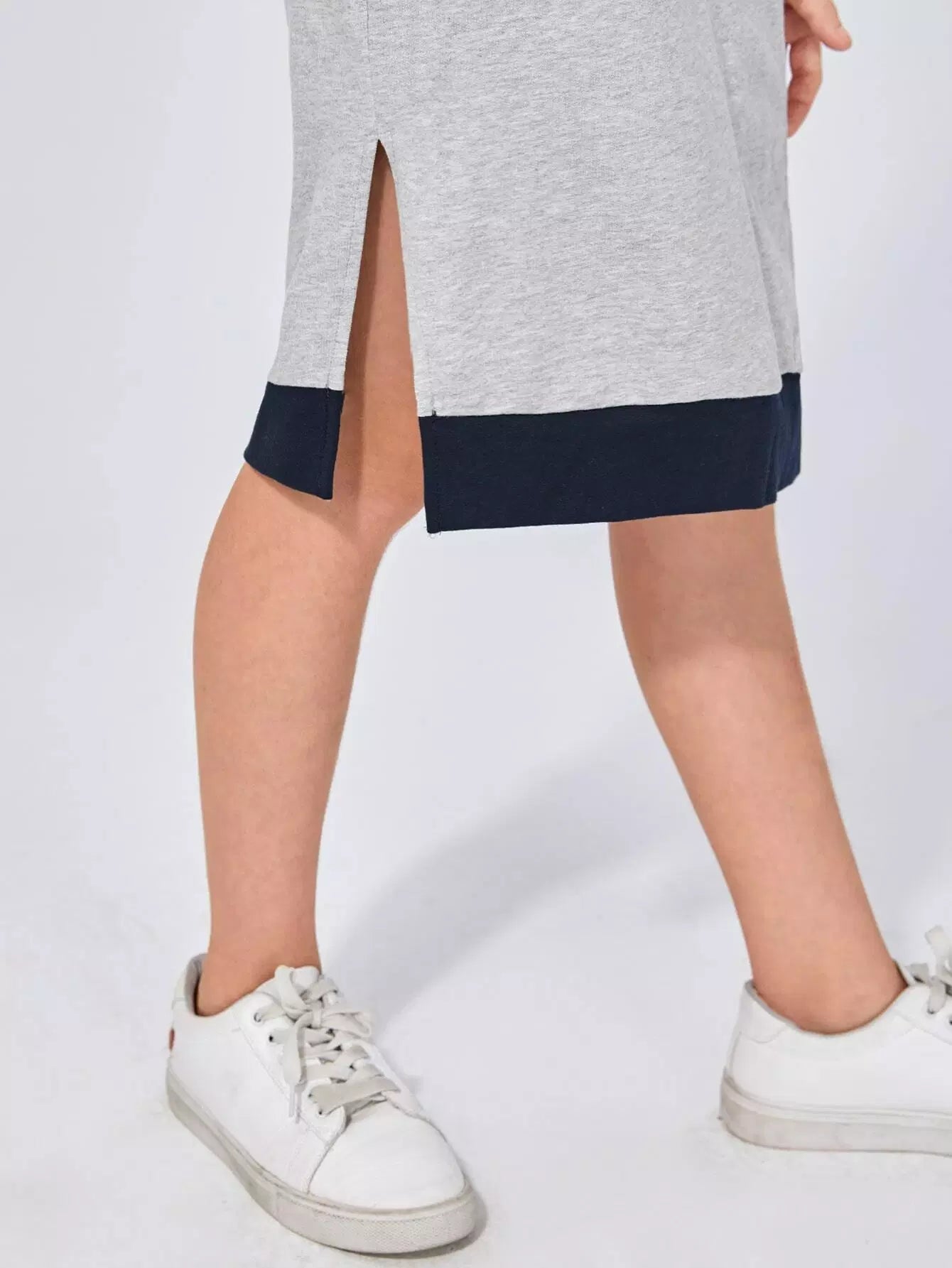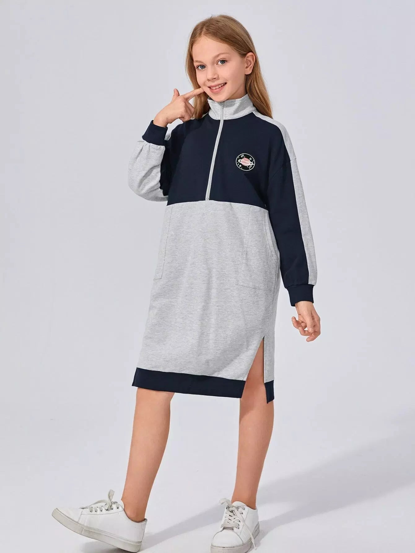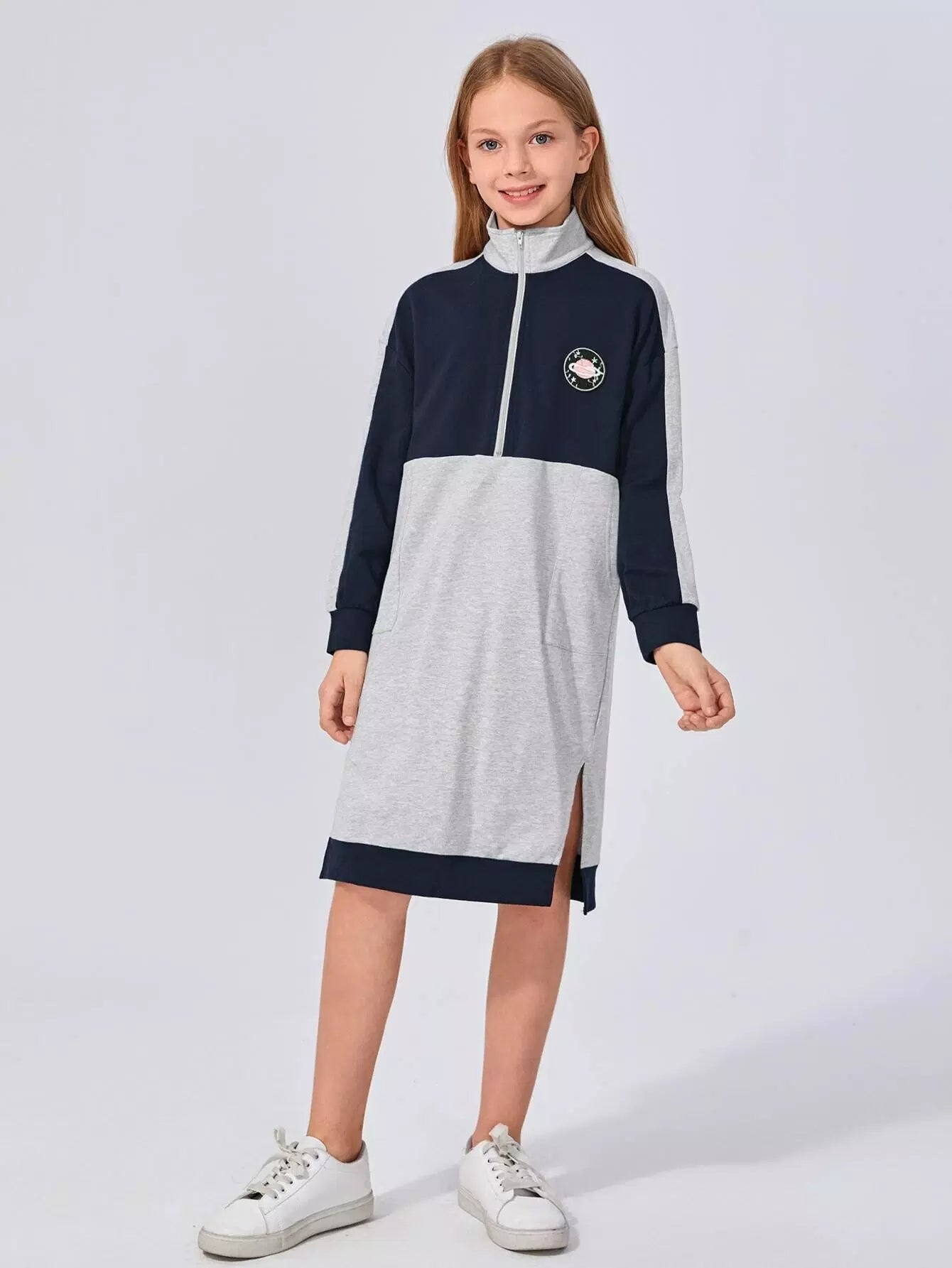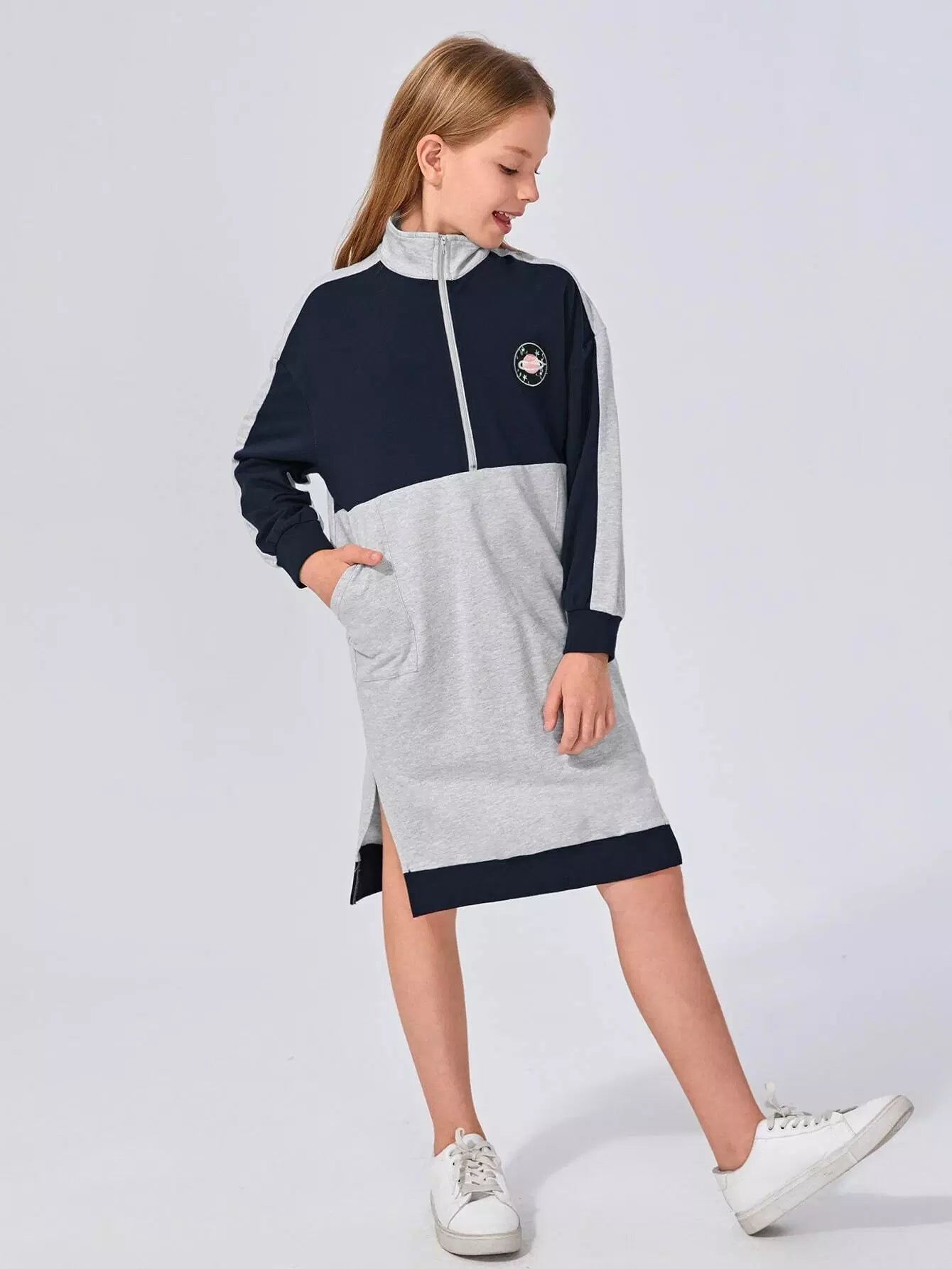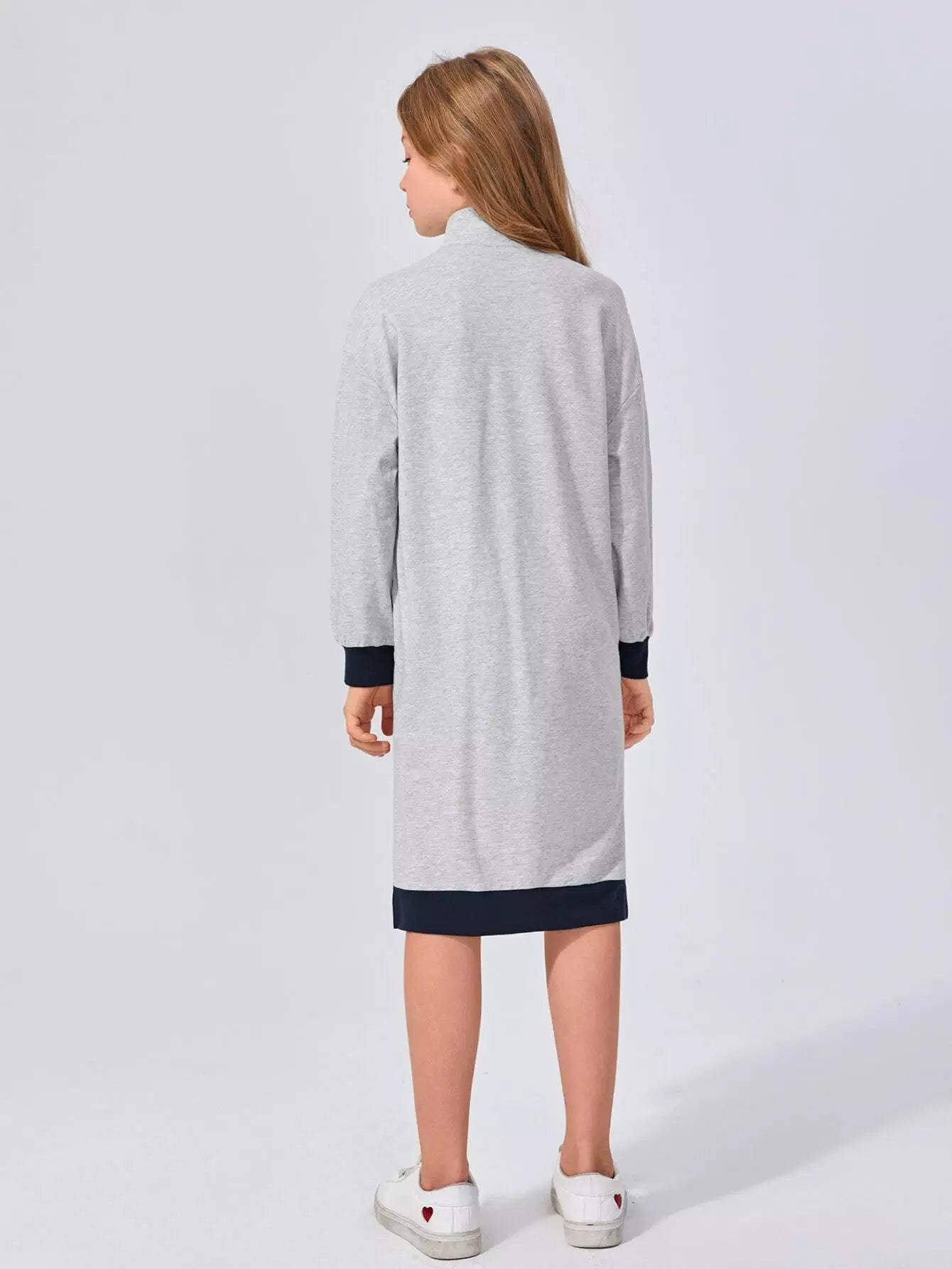فستان سويت شيرت بياقة عالية برقبة عالية ومزخرف بتفاصيل ملونة بنصف سحاب