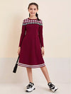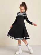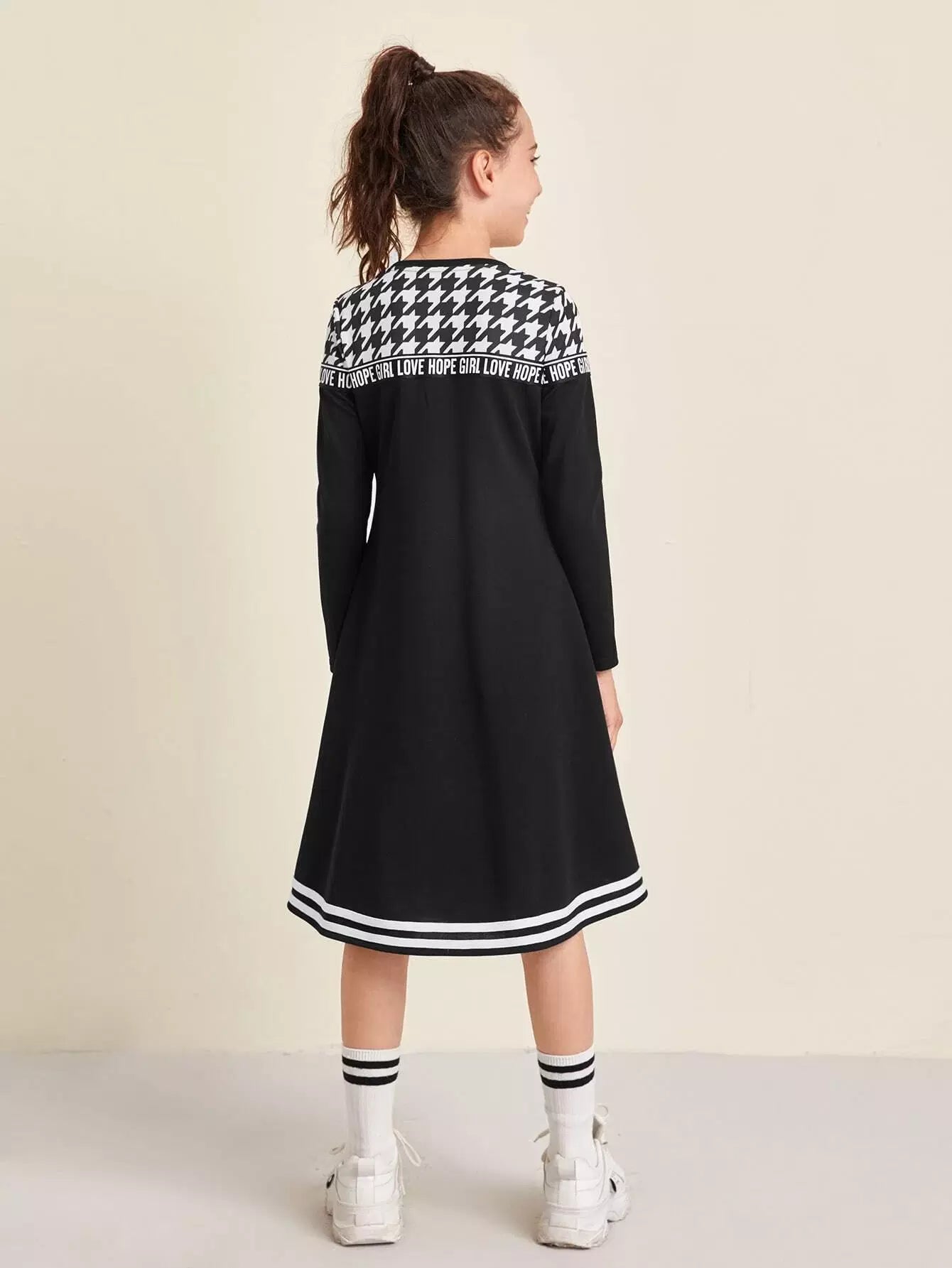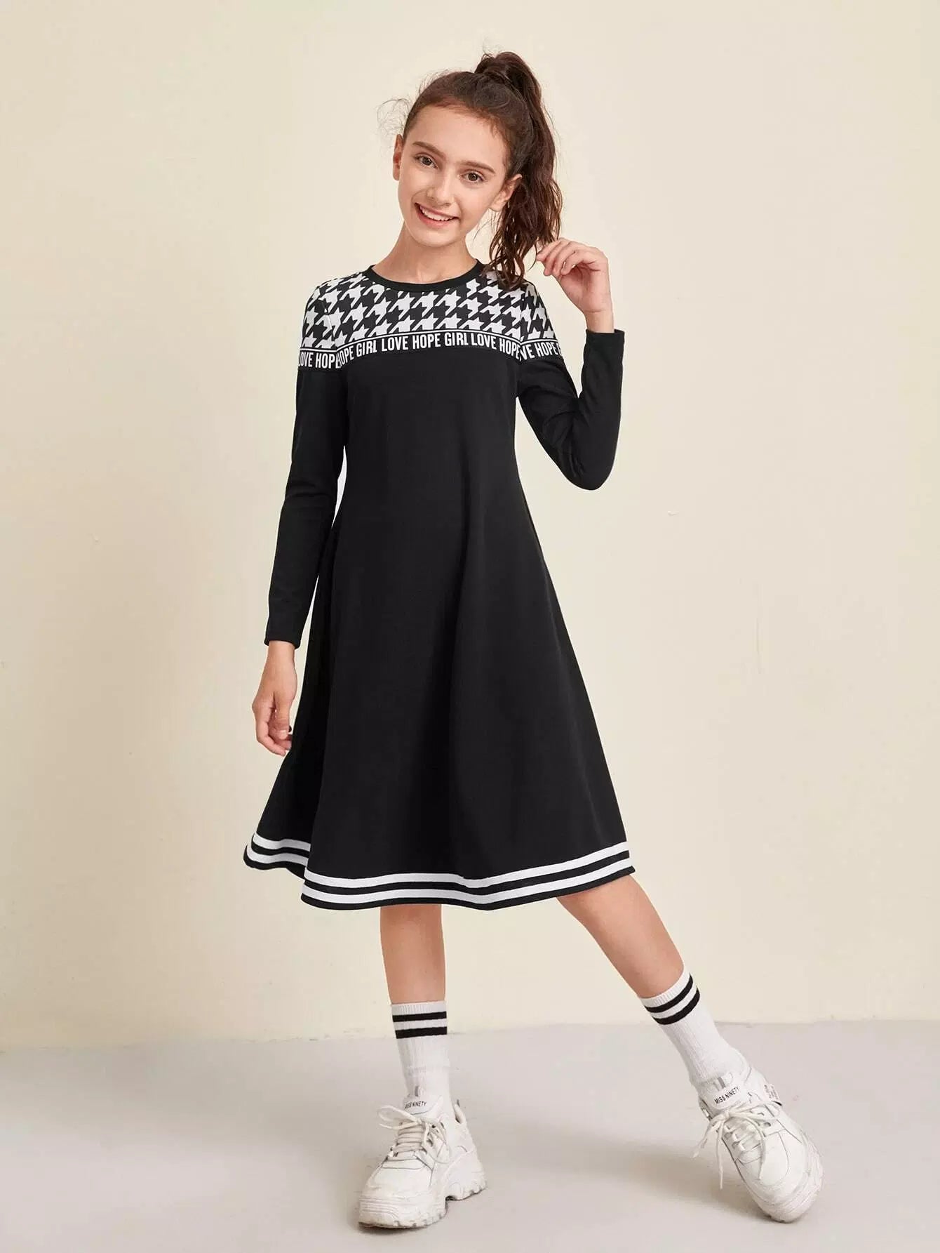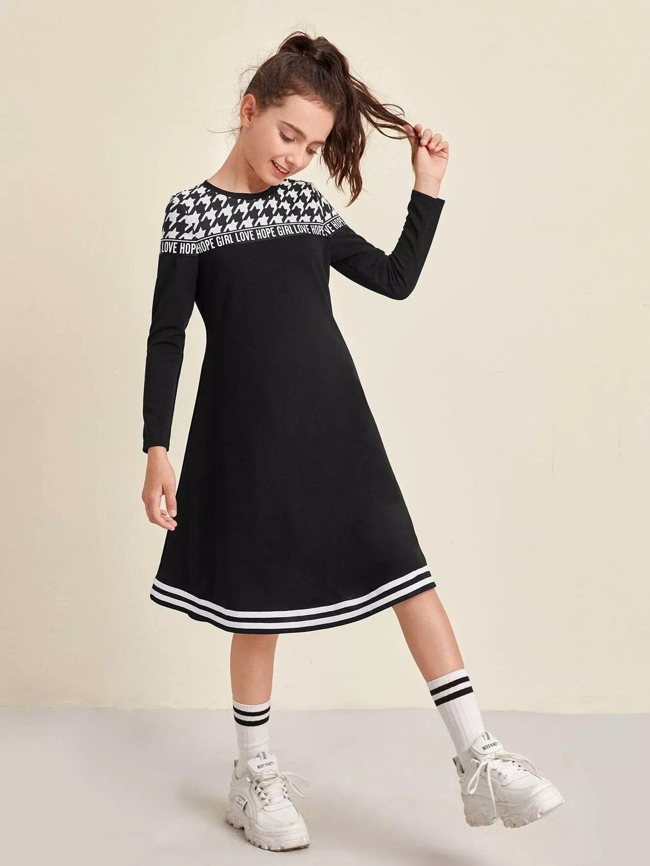 فستان بناتي بتفاصيل شريط مخطط بنقشة هاوندستوث