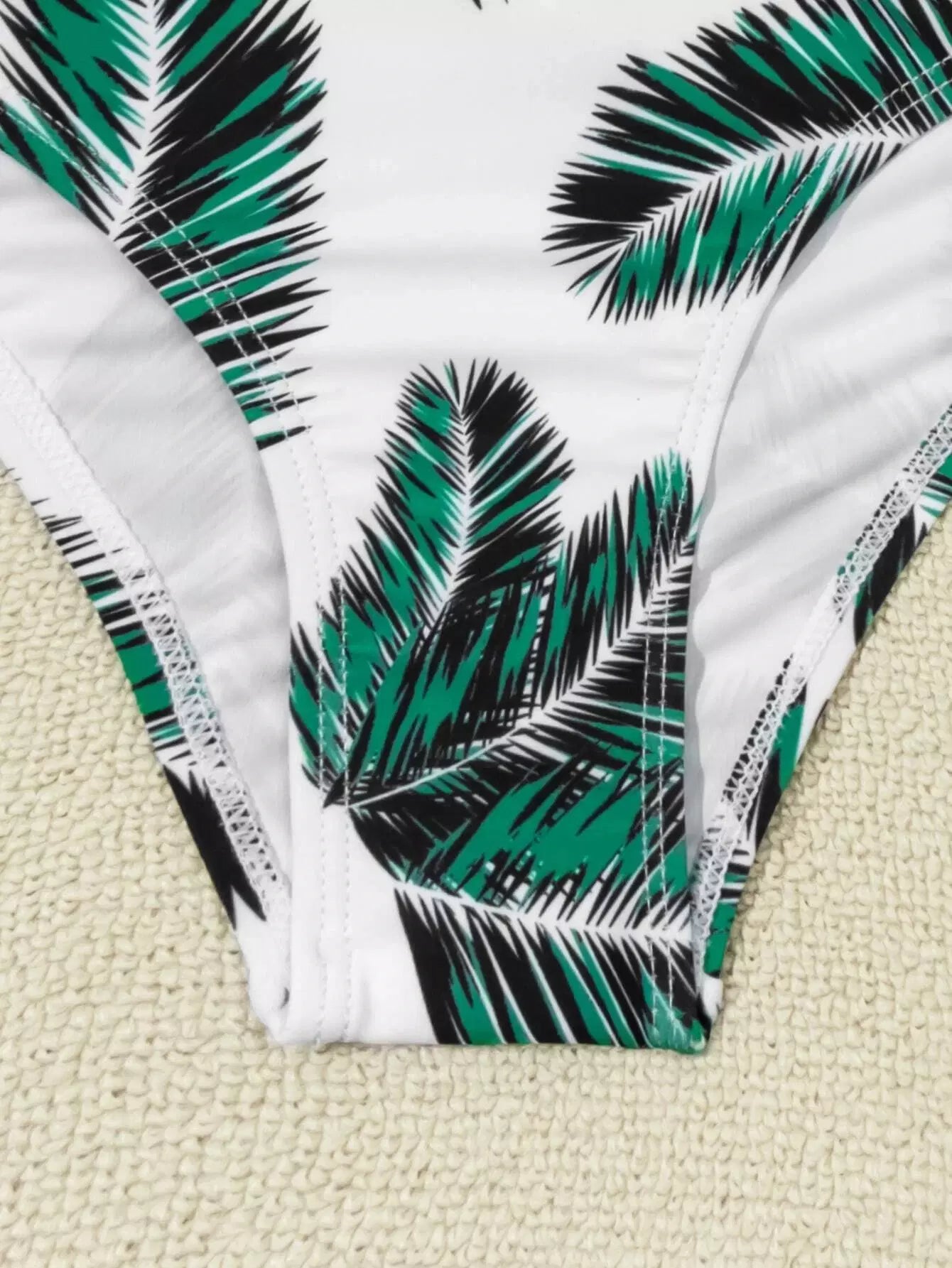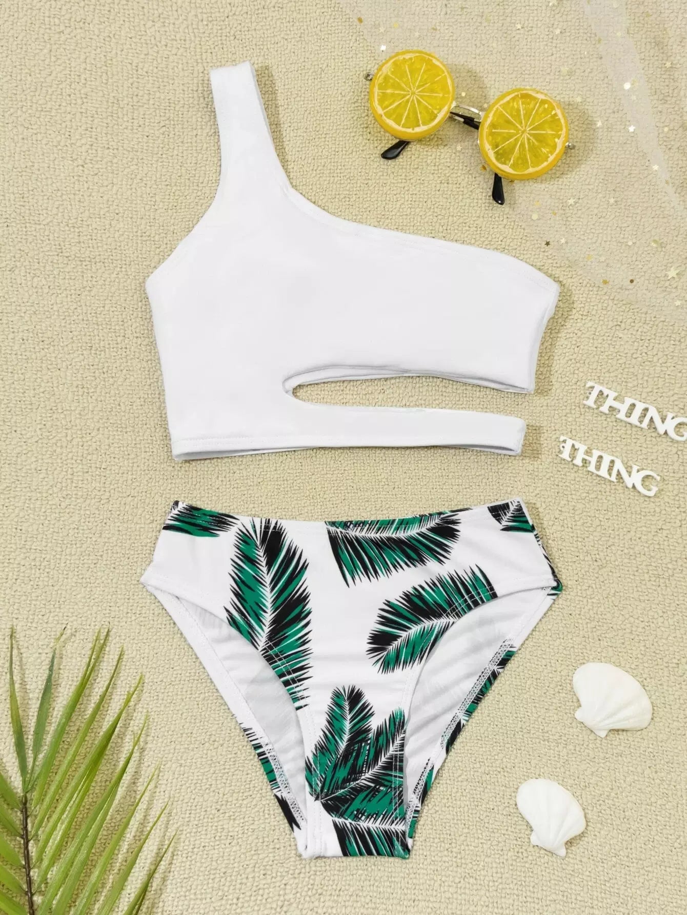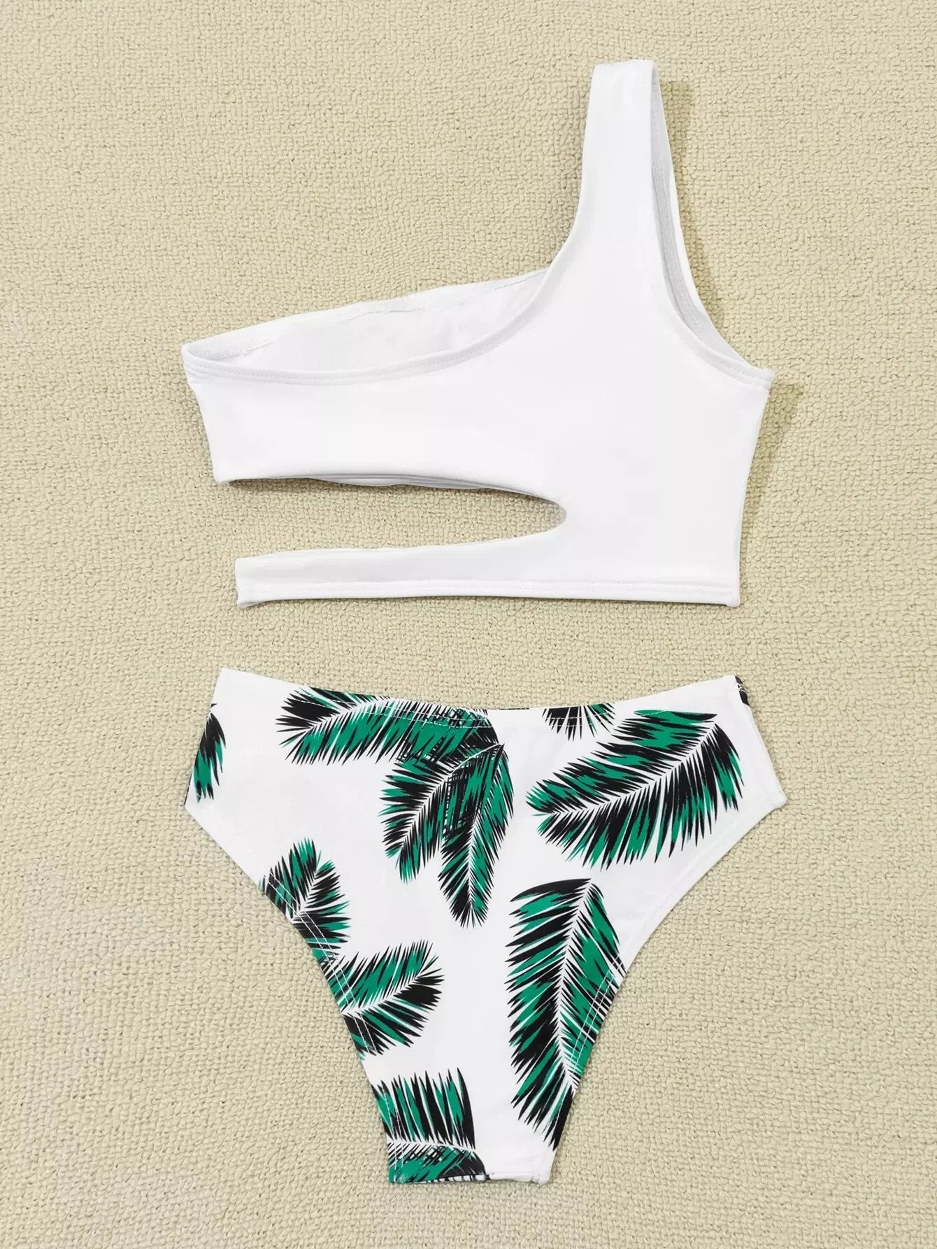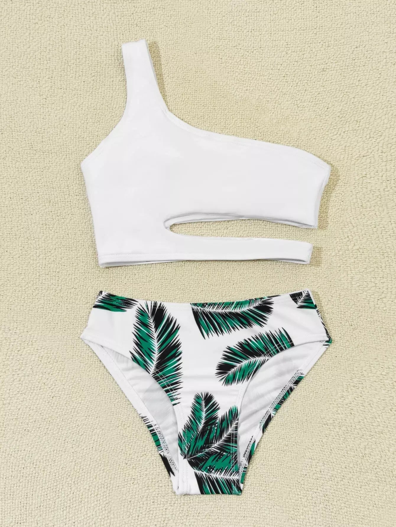 ملابس سباحة بيكيني بكتف واحد مطبوع عليها أوراق الشجر للبنات